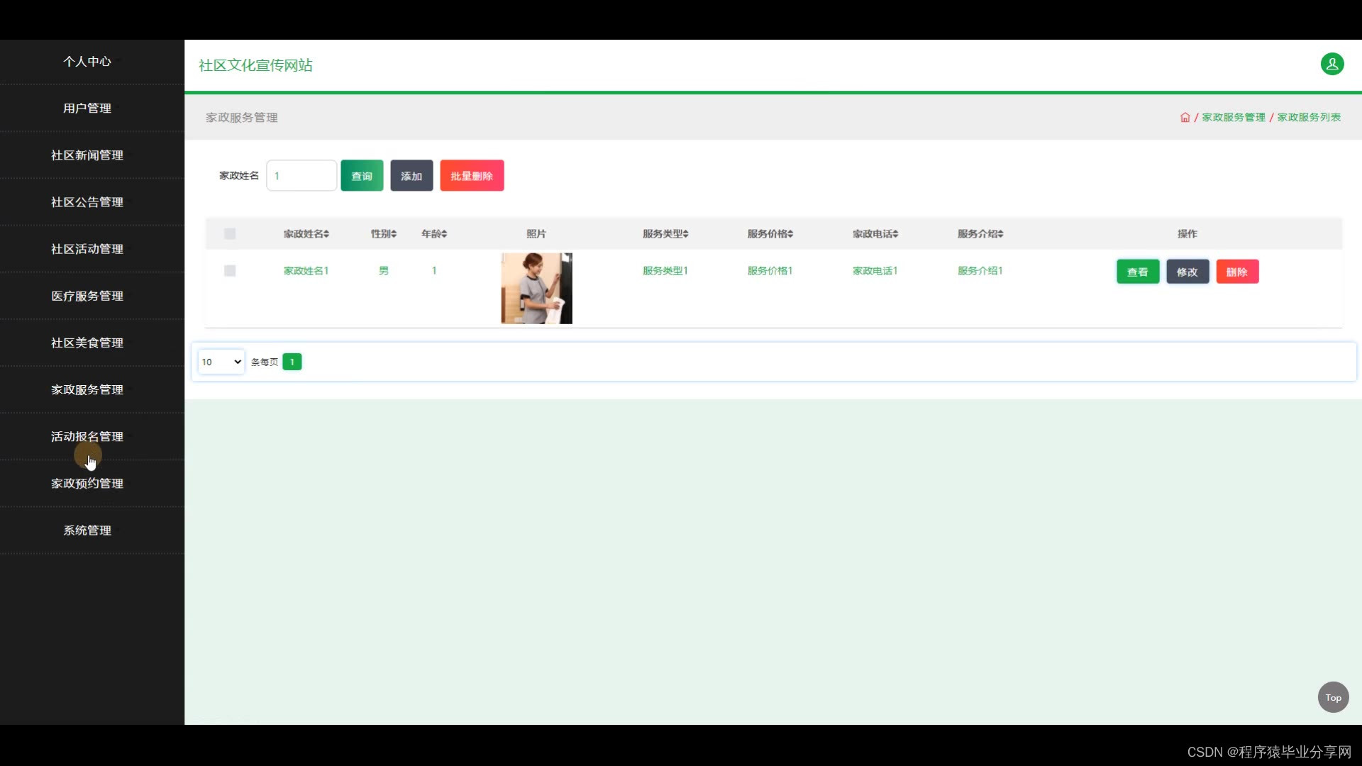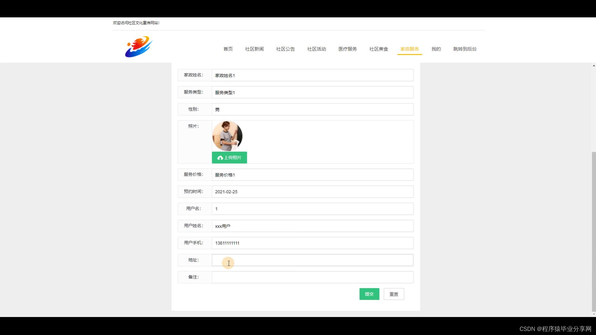 社区家政服务:发布可以提供家政服务的个人或者门店信息,主要包含 服务类型,服务价格,服务介绍,联系电话等