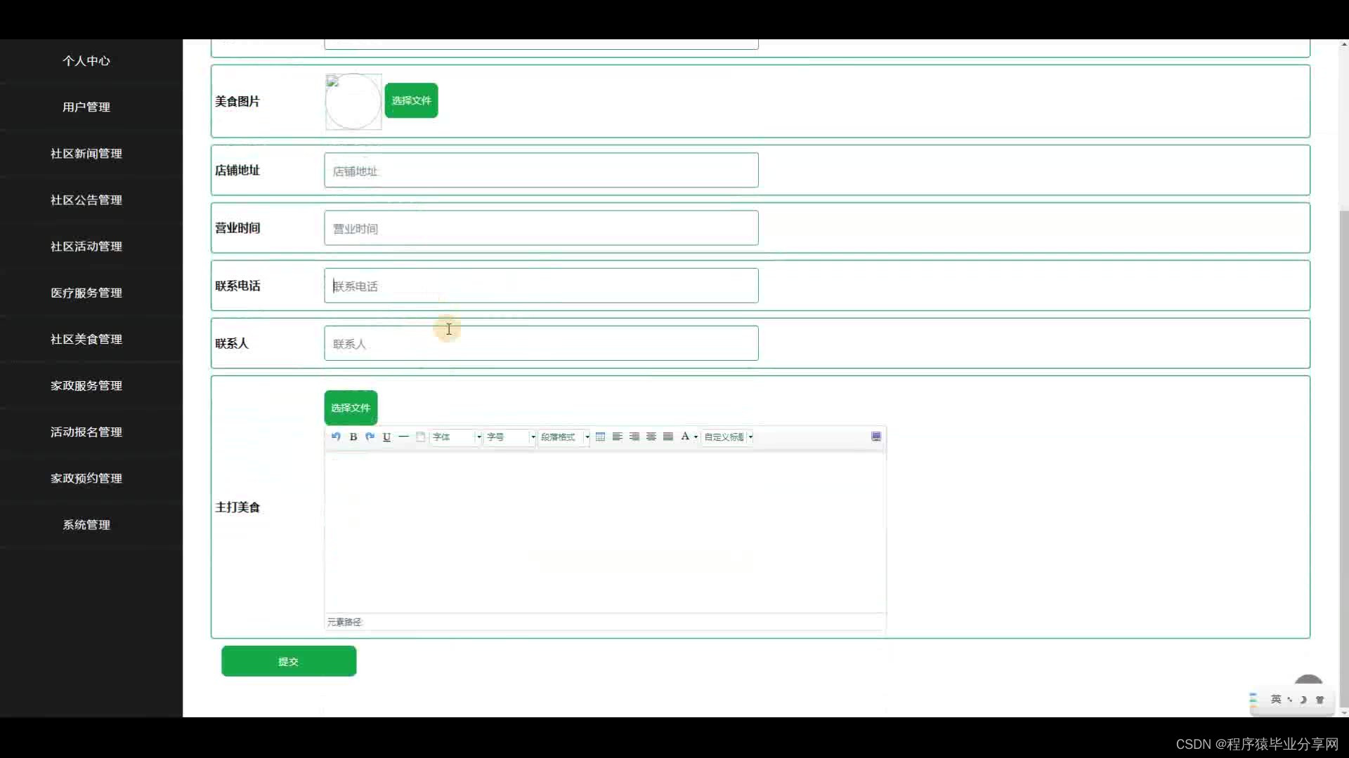 社区美食:发布社区周边的美食店面 主打的美食,小吃等