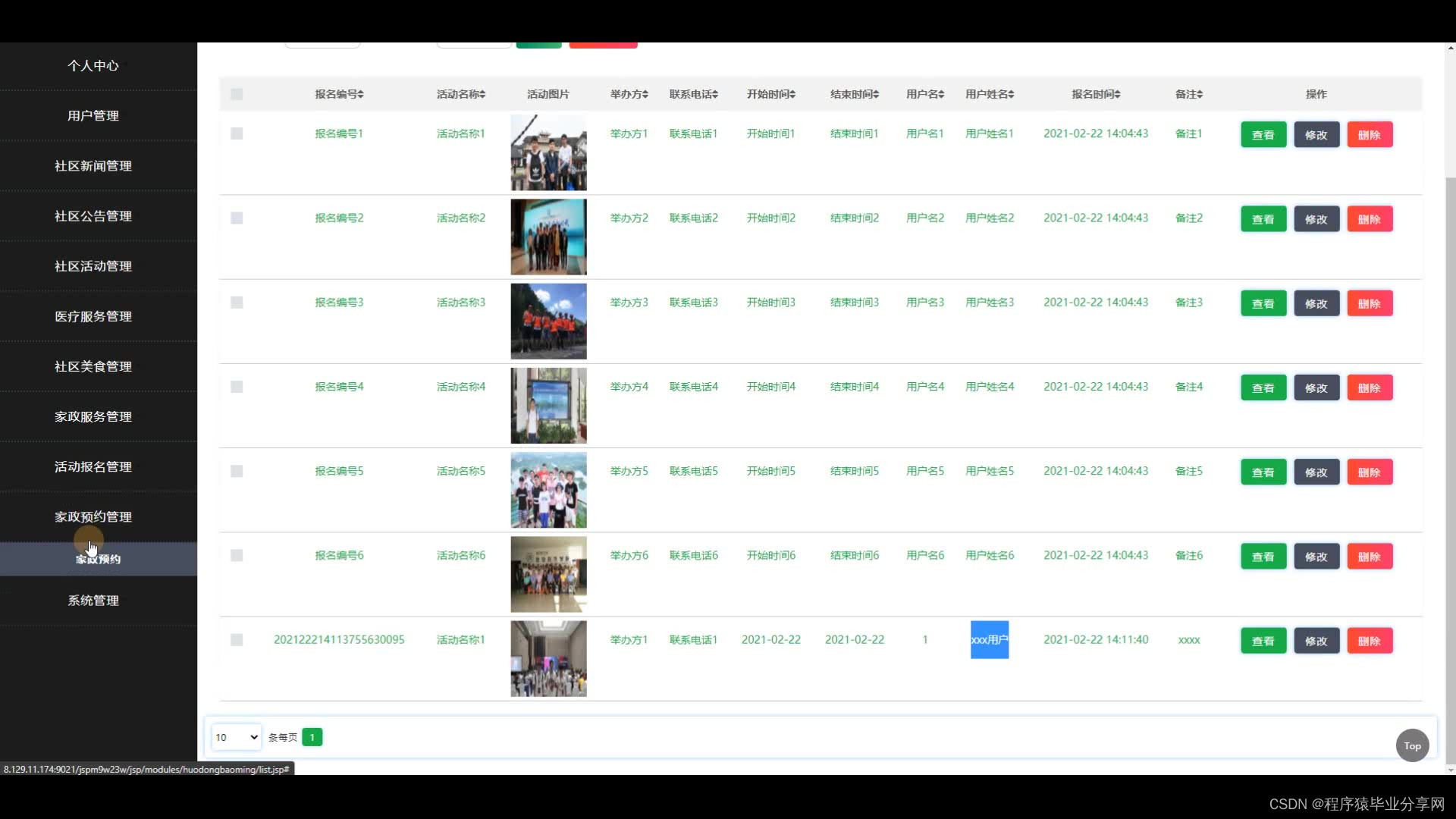 社区活动:发布最新的社团,广场舞,或者其他活动内容,用户可以在线报名参加