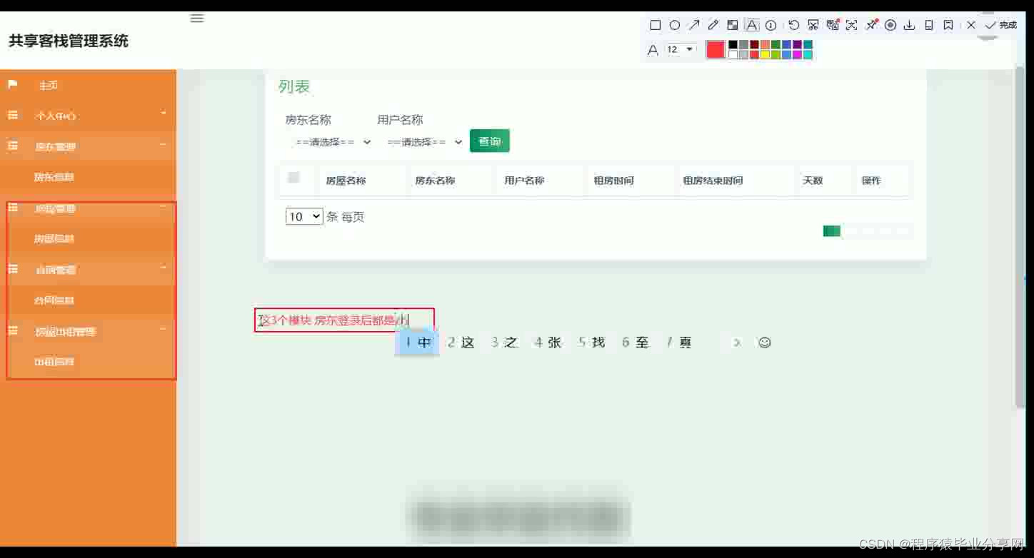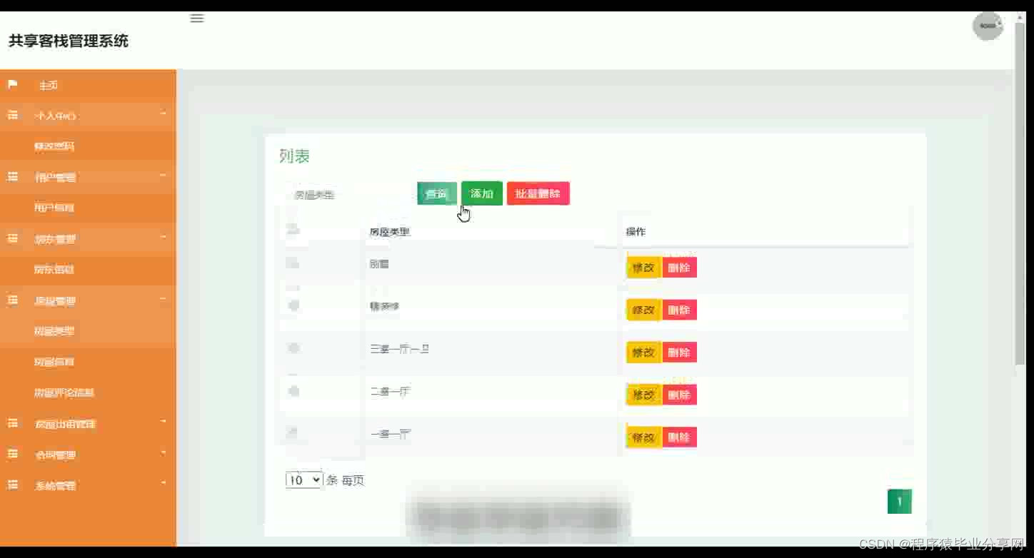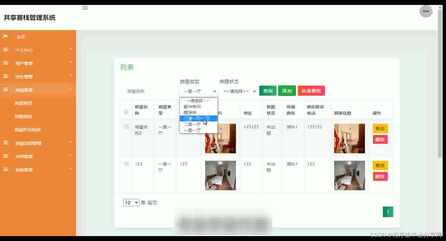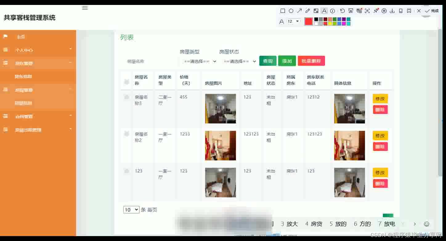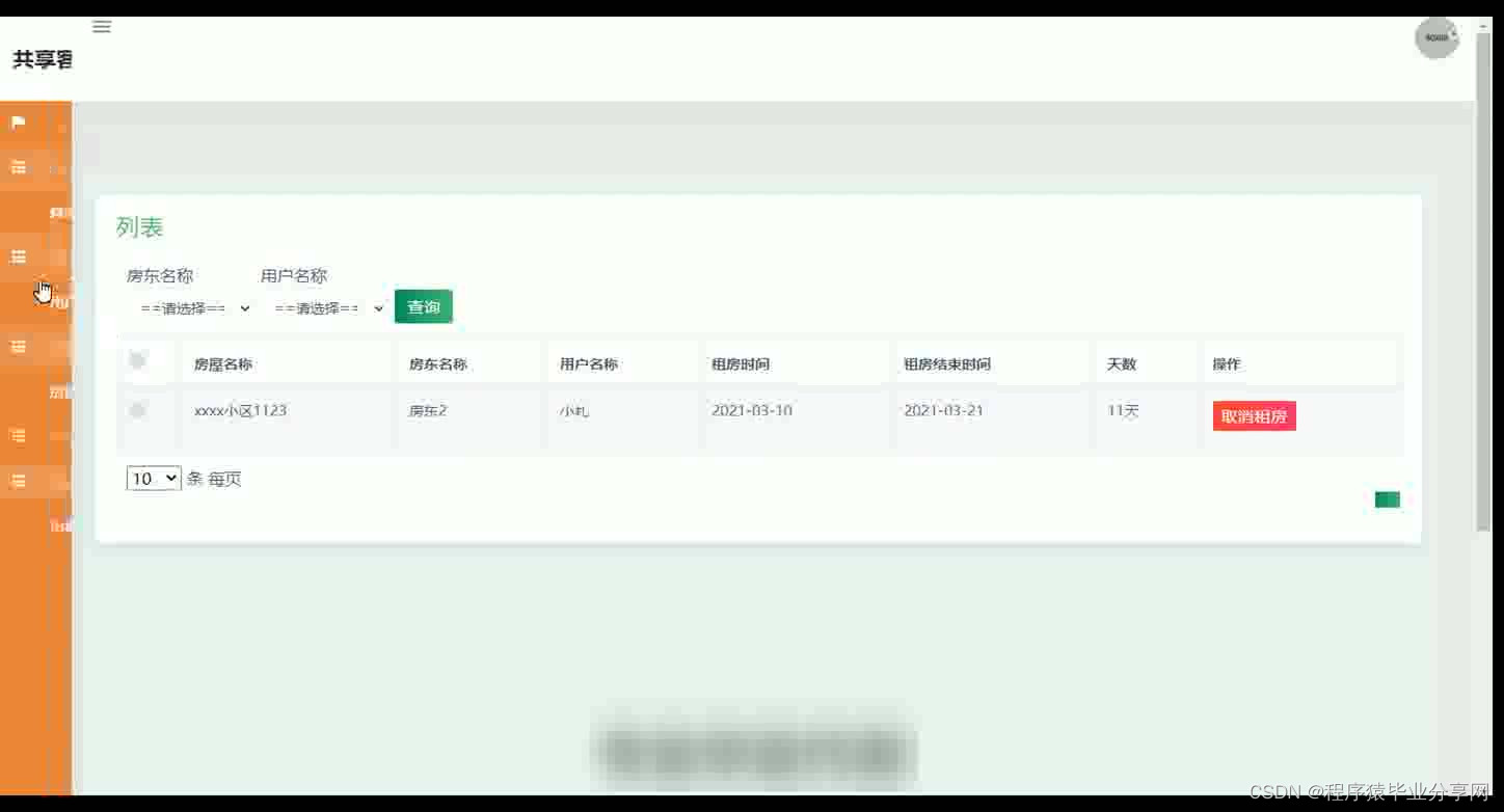 共享客栈管理系统在Eclipse环境中,使用Java语言进行编码,使用Mysql创建数据表保存本系统产生的数据。系统可以提供信息显示和相应服务,本系统实现房屋管理,合同文件上传与下载,房屋租房与续租,房屋出租管理等功能。