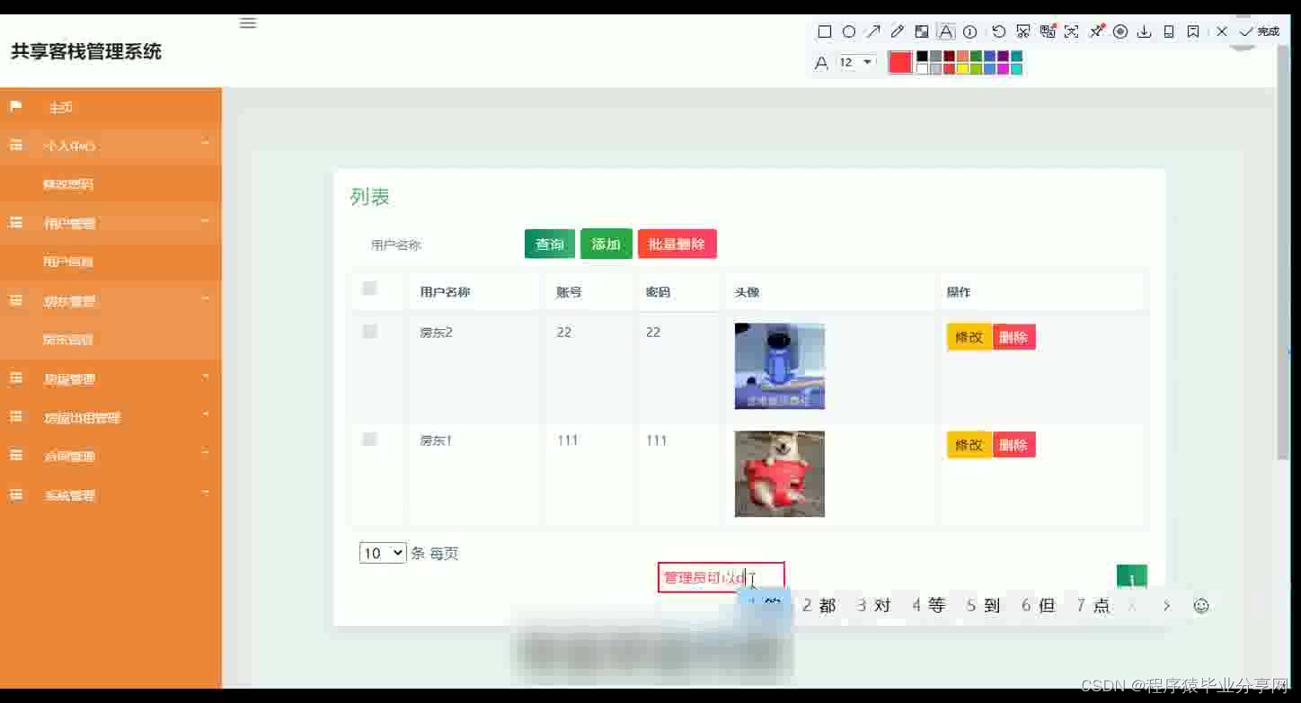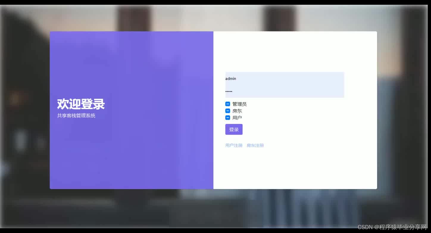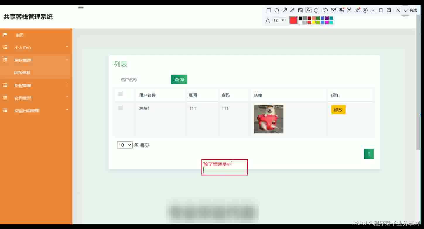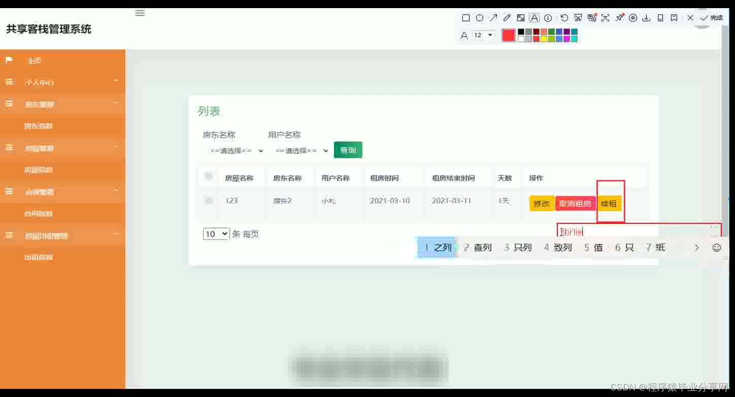 共享客栈管理系统在Eclipse环境中,使用Java语言进行编码,使用Mysql创建数据表保存本系统产生的数据。系统可以提供信息显示和相应服务,本系统实现房屋管理,合同文件上传与下载,房屋租房与续租,房屋出租管理等功能。