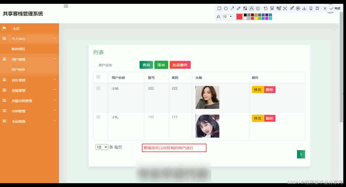 互联网发展至今,无论是其理论还是技术都已经成熟,而且它广泛参与在社会中的方方面面。它让信息都可以通过网络传播,搭配信息管理工具可以很好地为人们提供服务。针对房屋出租信息管理混乱,出错率高,信息安全性差,劳动强度大,费时费力等问题,采用共享客栈管理系统可以有效管理,使信息管理能够更加科学和规范。