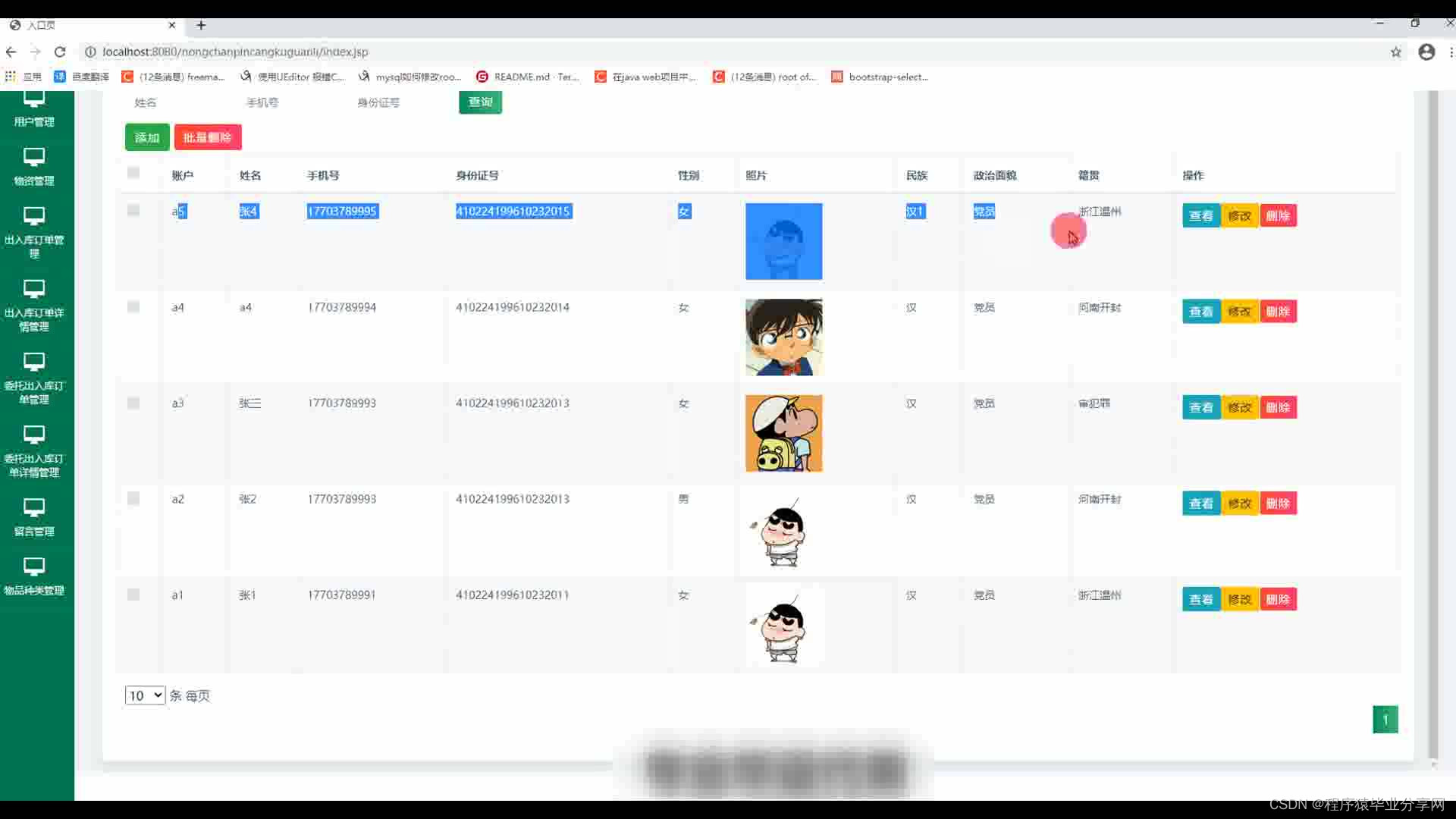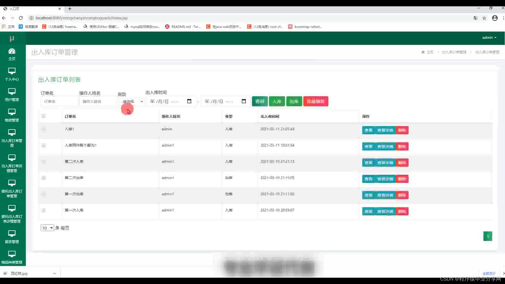 针对所调查的情况,进行页面设计过程各个模块所需技术支持的研究。批量入库、批量出库、入库搜索、出库搜索、物品管理、用户注册、用户登录、用户留言、用户入库、用户出库等等。