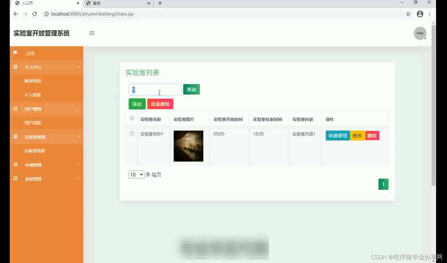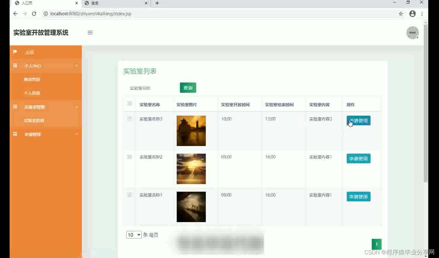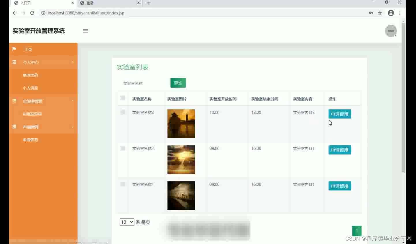 现代经济快节奏发展以及不断完善升级的信息化技术,让传统数据信息的管理升级为软件存储,归纳,集中处理数据信息的管理方式。本实验室开放管理系统就是在这样的大环境下诞生,其可以帮助管理者在短时间内处理完毕庞大的数据信息,使用这种软件工具可以帮助管理人员提高事务处理效率,达到事半功倍的效果。此实验室开放管理系统利用当下成熟完善的SSM框架,使用跨平台的可开发大型商业网站的Java语言,以及最受欢迎的RDBMS应用软件之一的Mysql数据库进行程序开发.实验室开放管理系统的开发根据操作人员需要设计的界面简洁美观,在功能模块布局上跟同类型网站保持一致,程序在实现基本要求功能时,也为数据信息面临的安全问题提供了一些实用的解决方案。可以说该程序在帮助管理者高效率地处理工作事务的同时,也实现了数据信息的整体化,规范化与自动化。