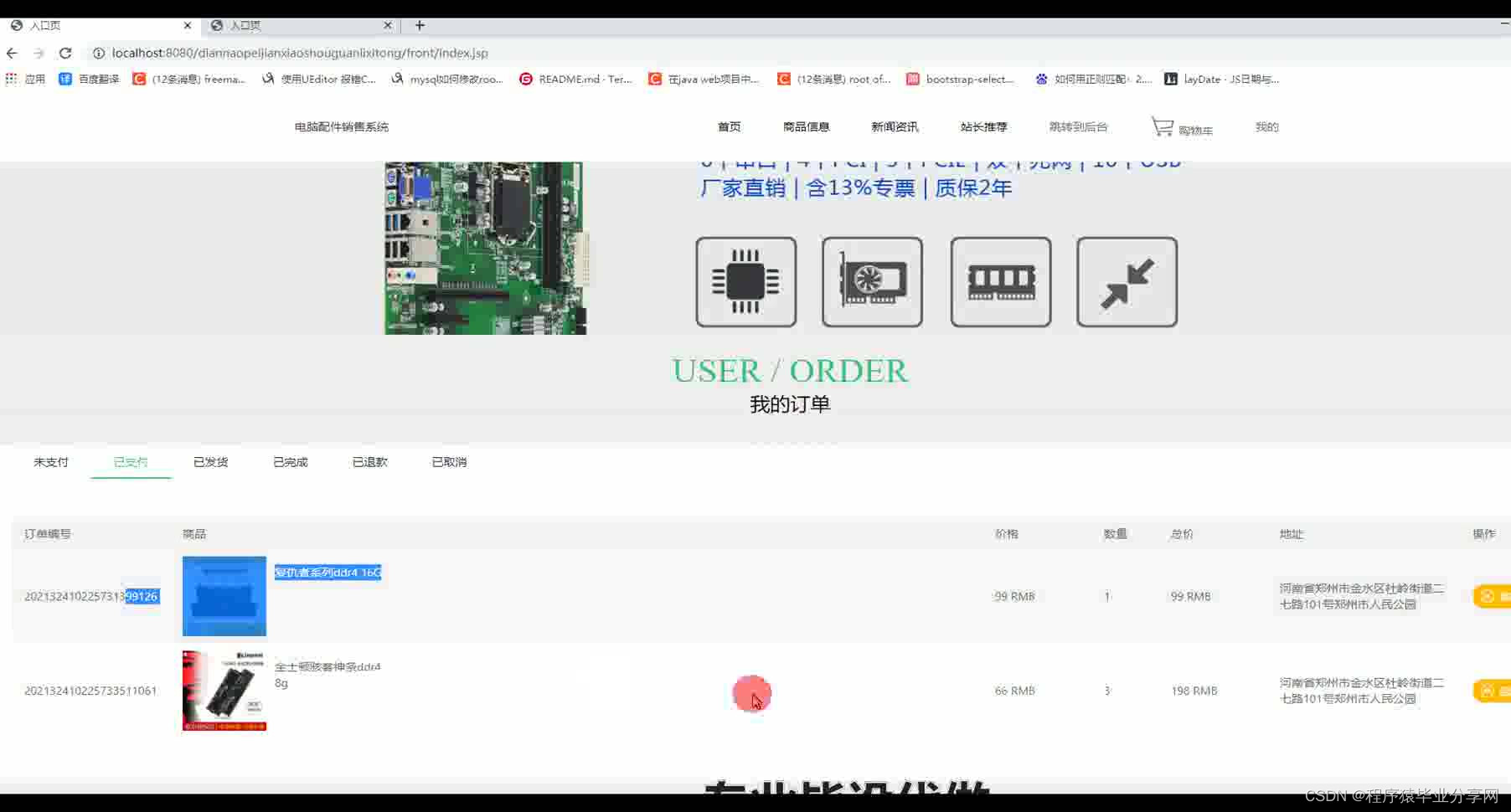 关键字:电脑配件销售系统 Mysql数据库 JSP技术