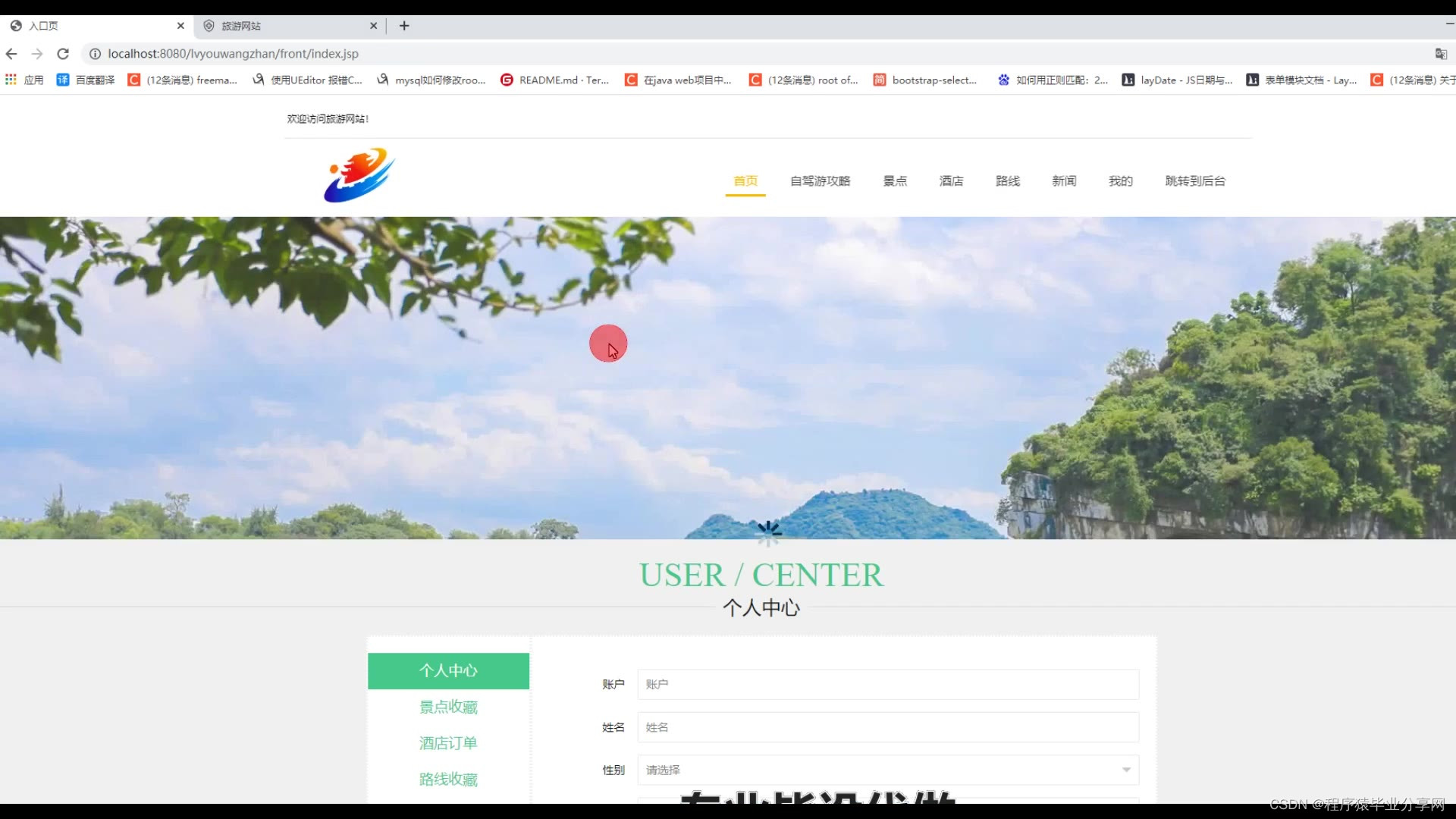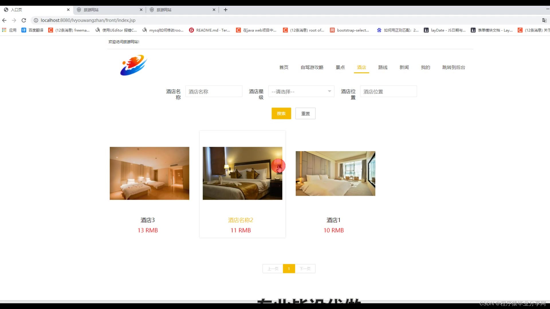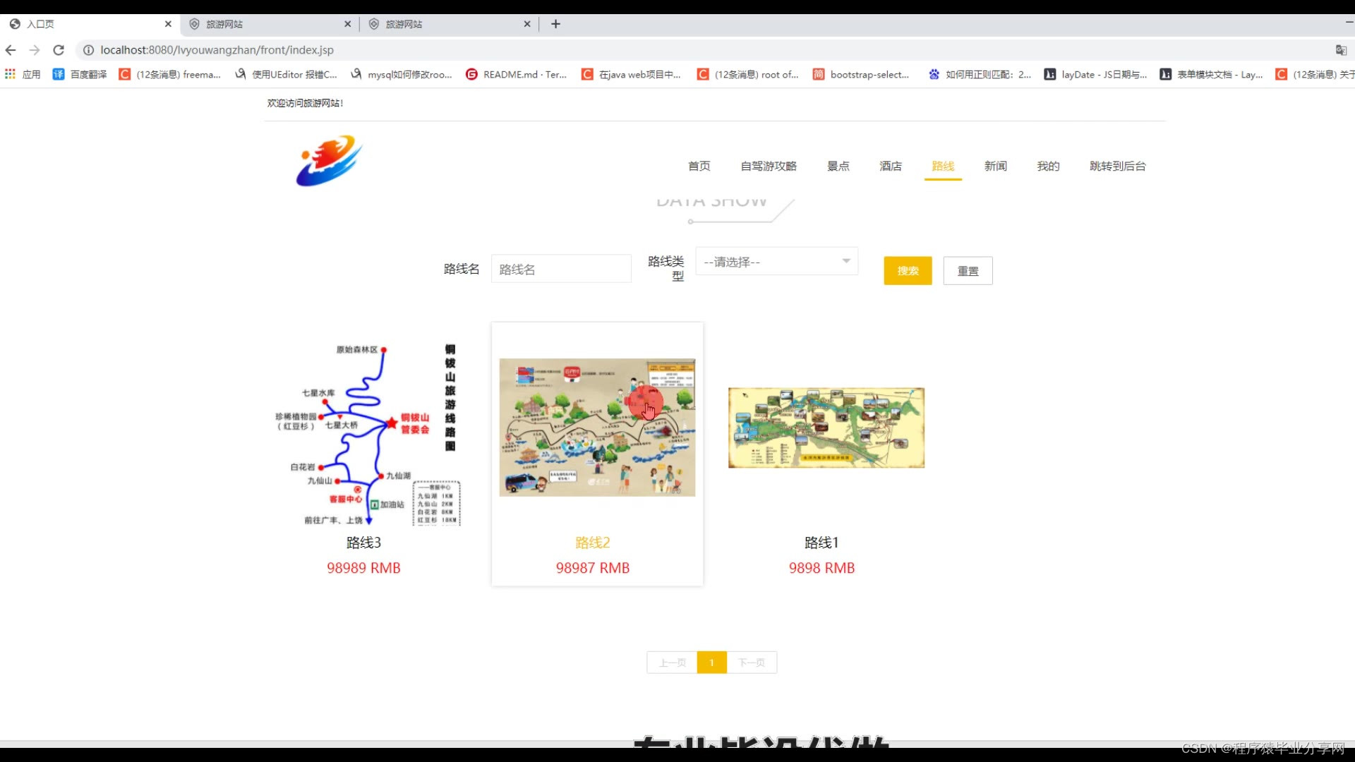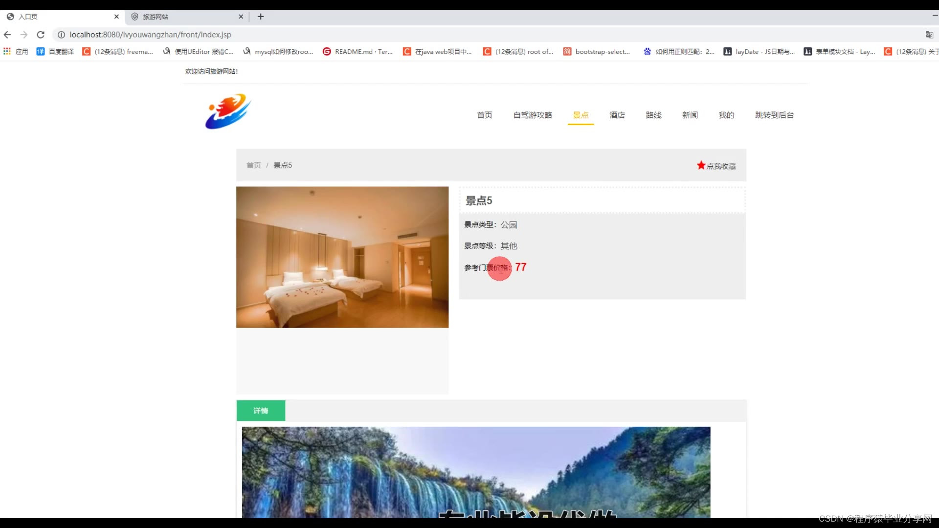 随着计算机与互联网的普及,人们的网上生活日益丰富,消费方式也在改变。电商成为人们日常消费的一个重要组成部分,所占的比重也越来越高。与此同时越来越多的人喜爱上了在网络提前浏览查询,设计外出旅行的路线,沿途所要居住的酒店等,但是旅游行业在国内出现的还比较晚,目前国内还没有一些成功的旅游攻略网站,鉴于此,我开发了本网站。