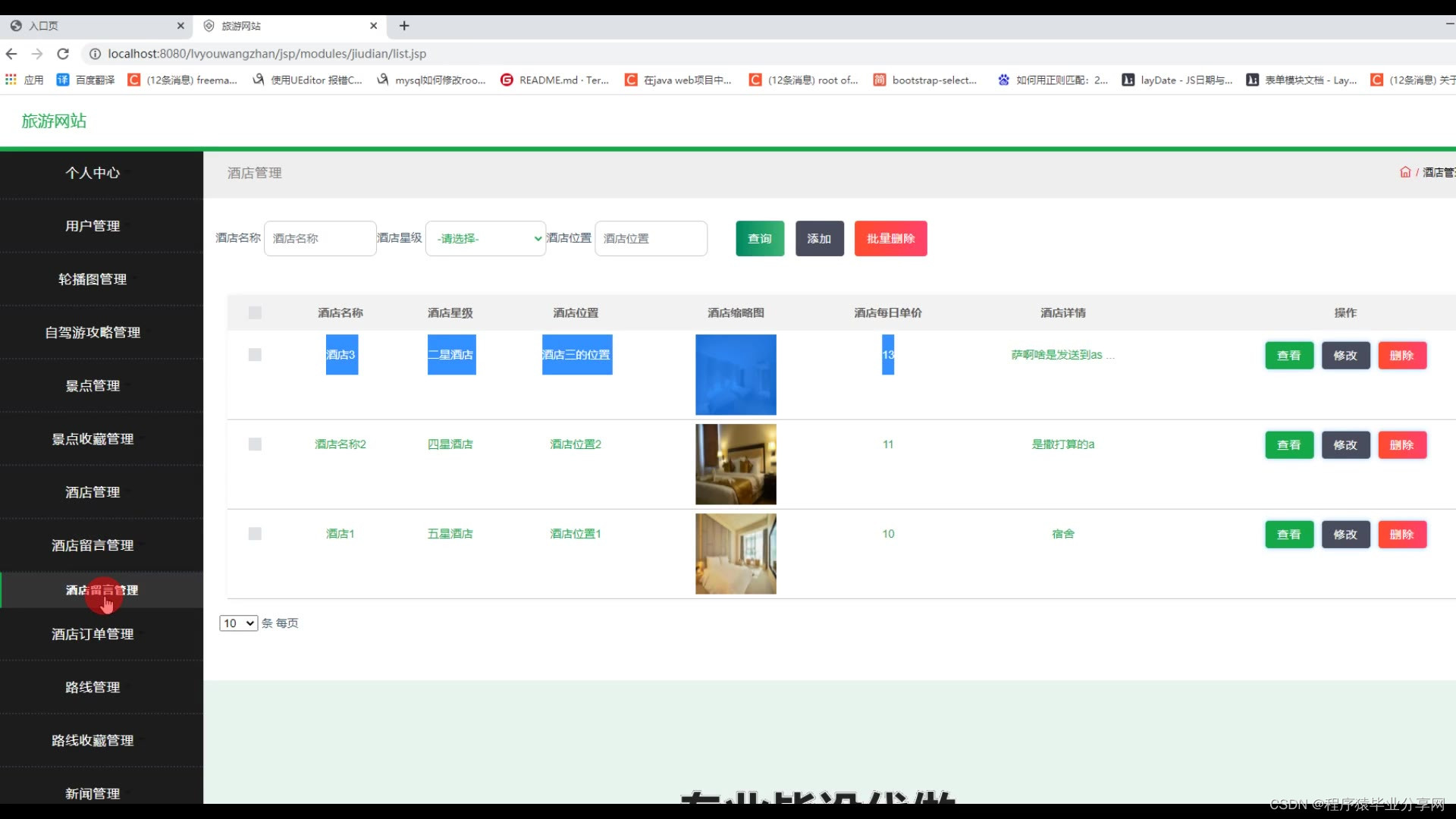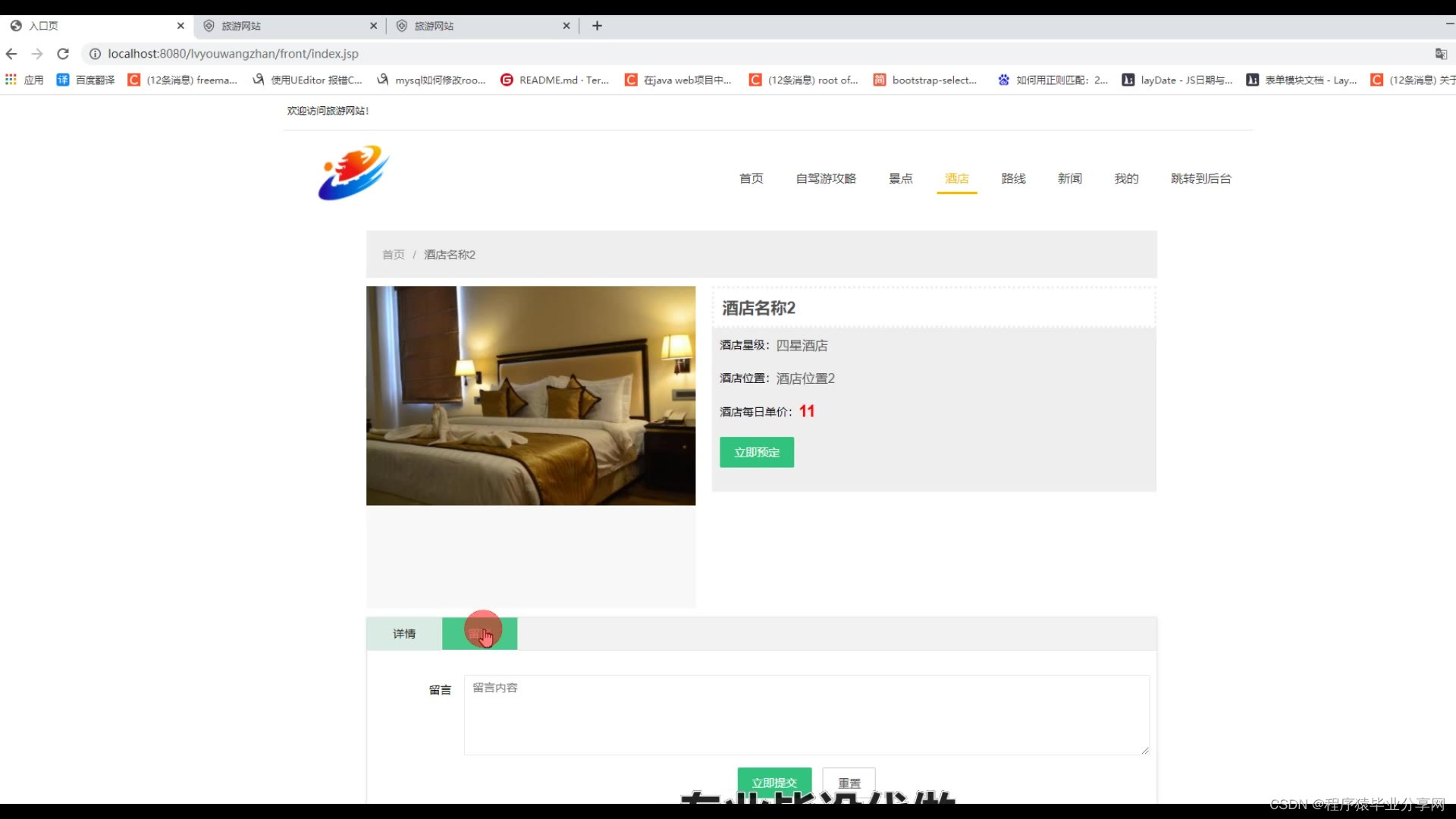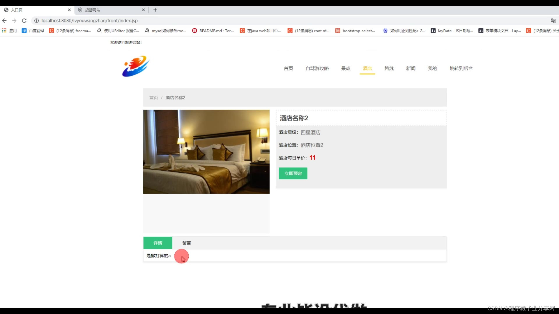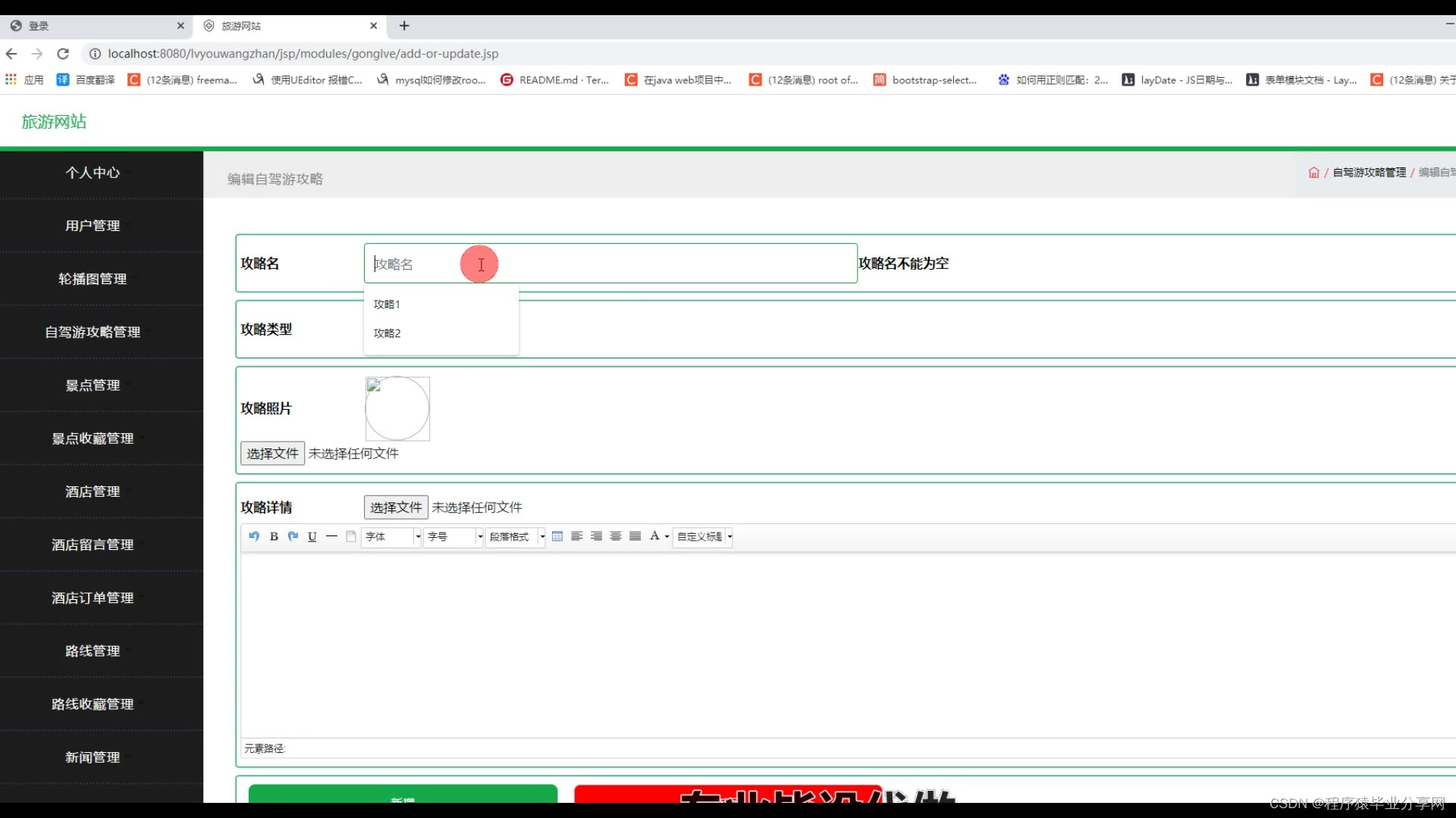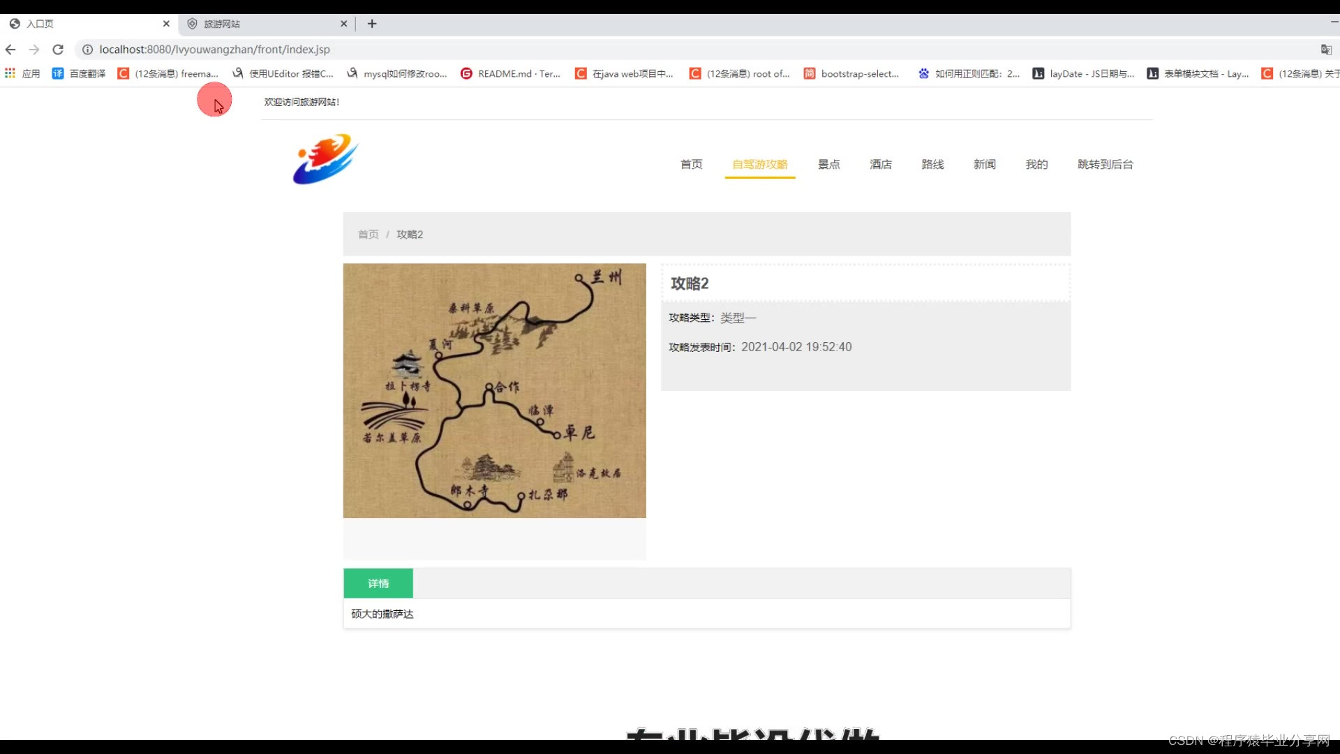 随着计算机与互联网的普及,人们的网上生活日益丰富,消费方式也在改变。电商成为人们日常消费的一个重要组成部分,所占的比重也越来越高。与此同时越来越多的人喜爱上了在网络提前浏览查询,设计外出旅行的路线,沿途所要居住的酒店等,但是旅游行业在国内出现的还比较晚,目前国内还没有一些成功的旅游攻略网站,鉴于此,我开发了本网站。