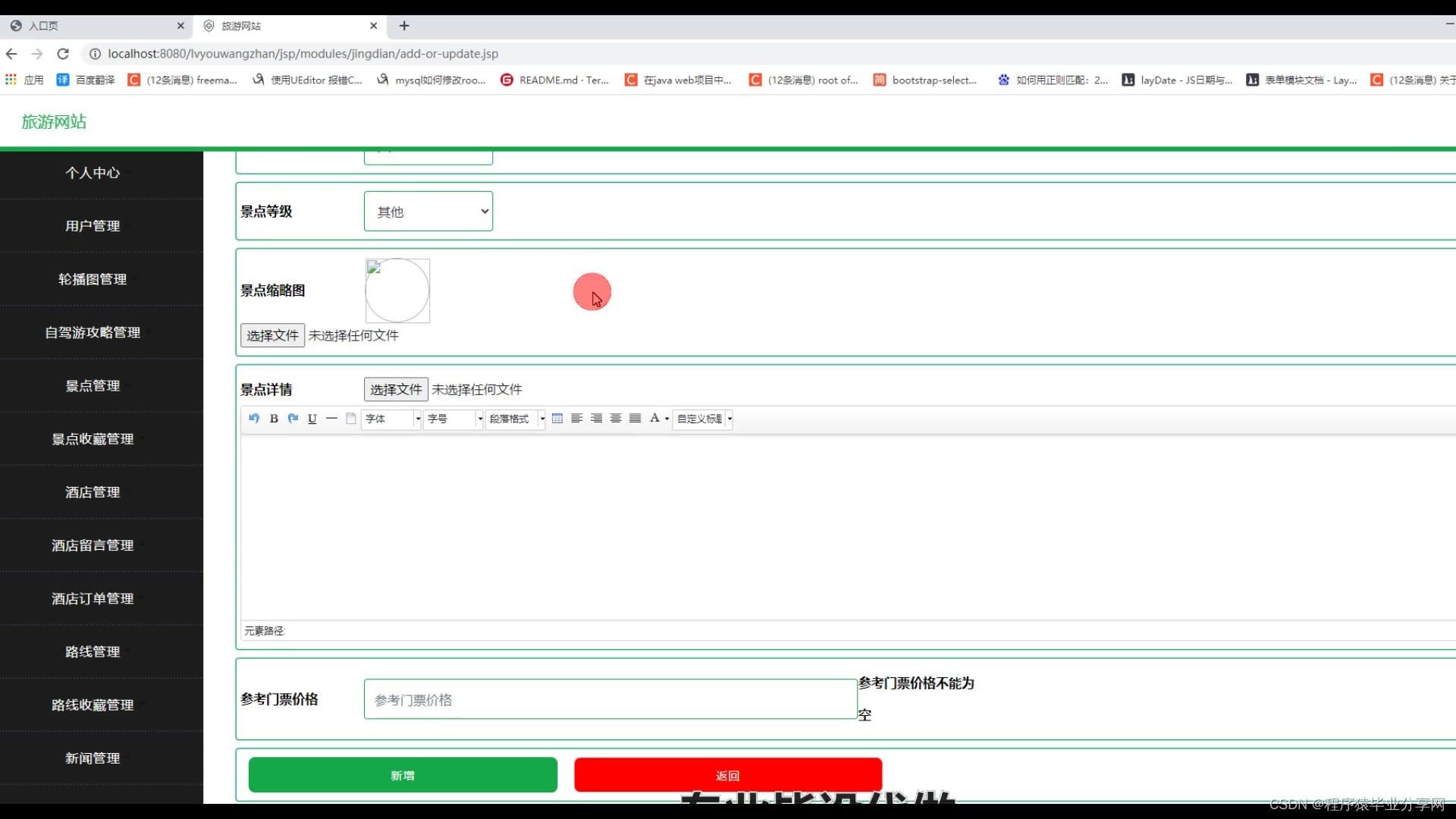 身处于这样的环境,我们的生活开始变得便捷,工作变得简单化。很显然,科技的发展使得处理信息的效率大大提升,人们每天的时间大部分都耗费在对于网络信息的处理。传统的手工操作、记录旅游路线信息的方式已经明显落后,传统的通过纸质文档记录旅游路线以及定住酒店信息的方式也已经落后,景区信息的增多,需要查询相应信息内容也增多,依靠人工操作管理这些信息,效率低而且会造成重复查询的问题。