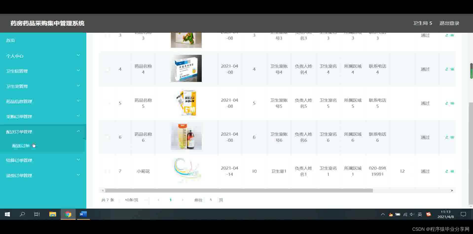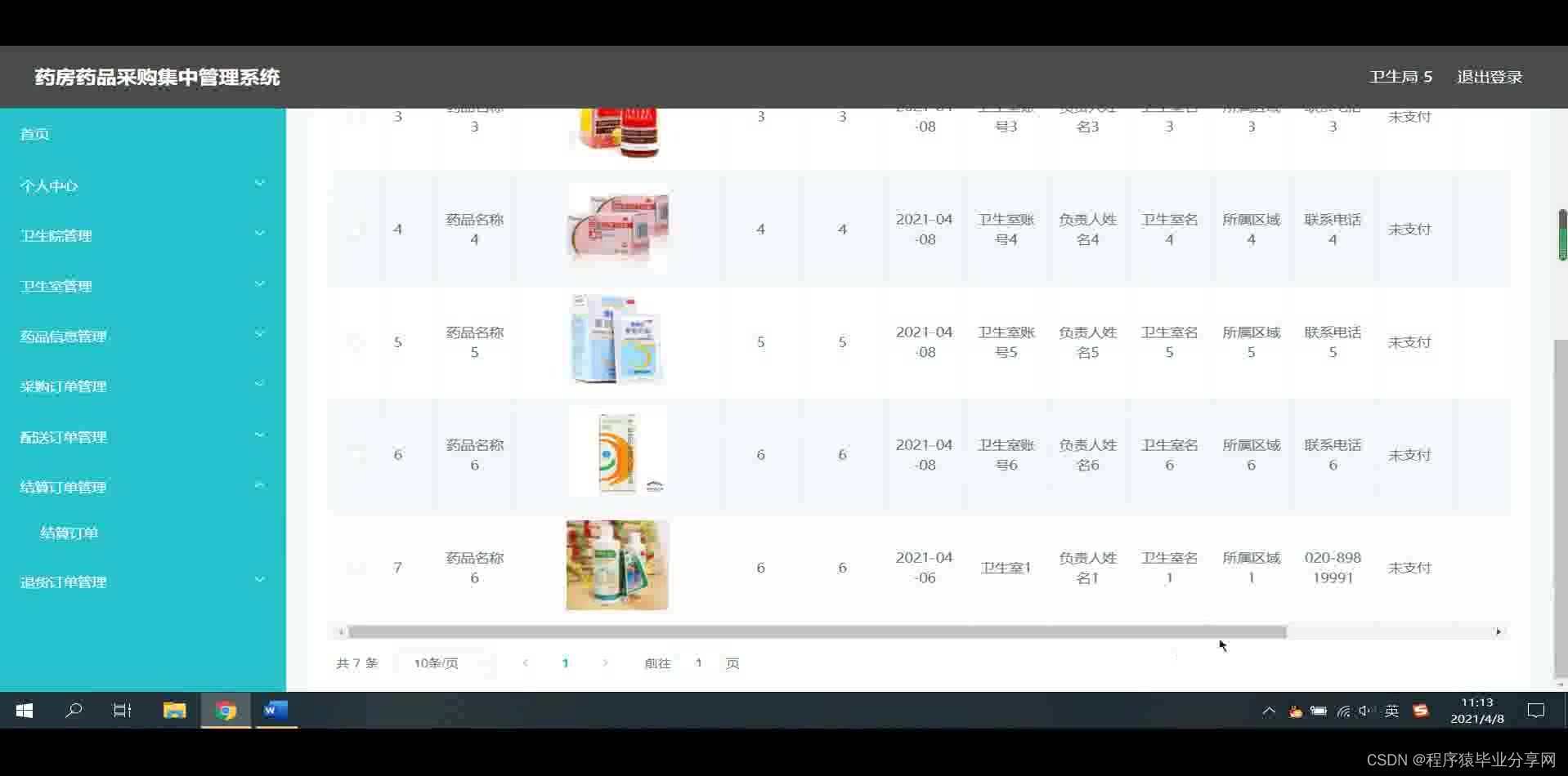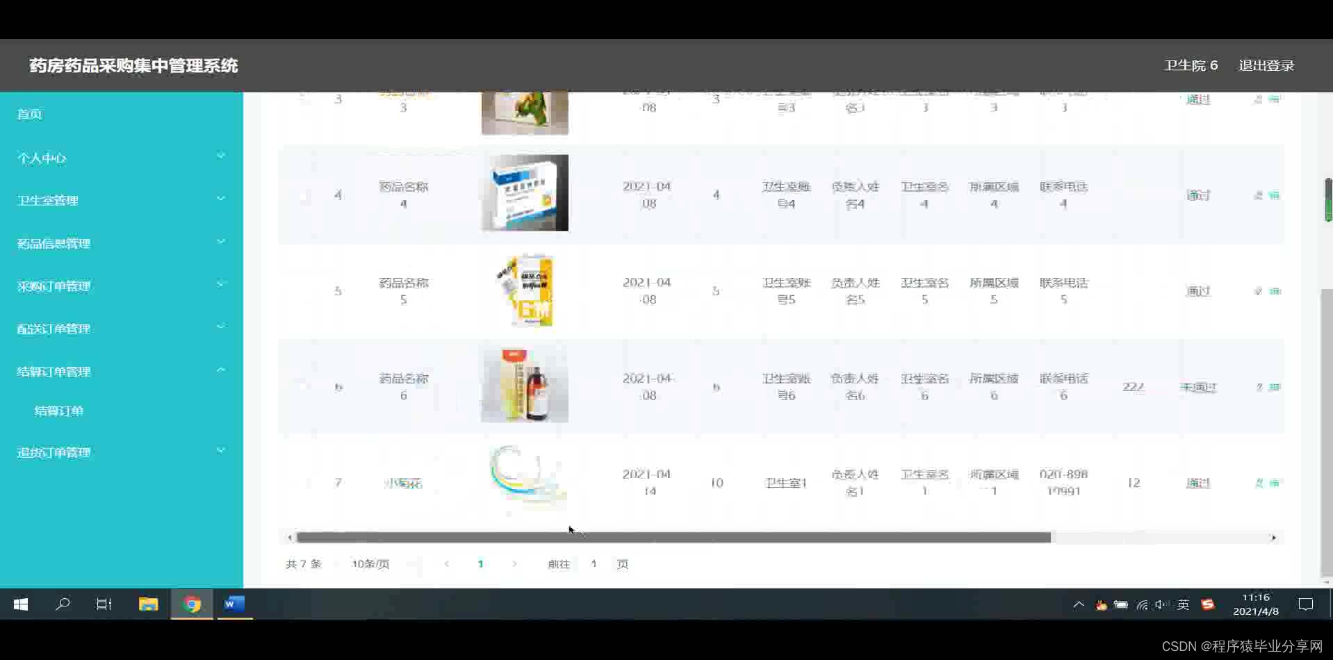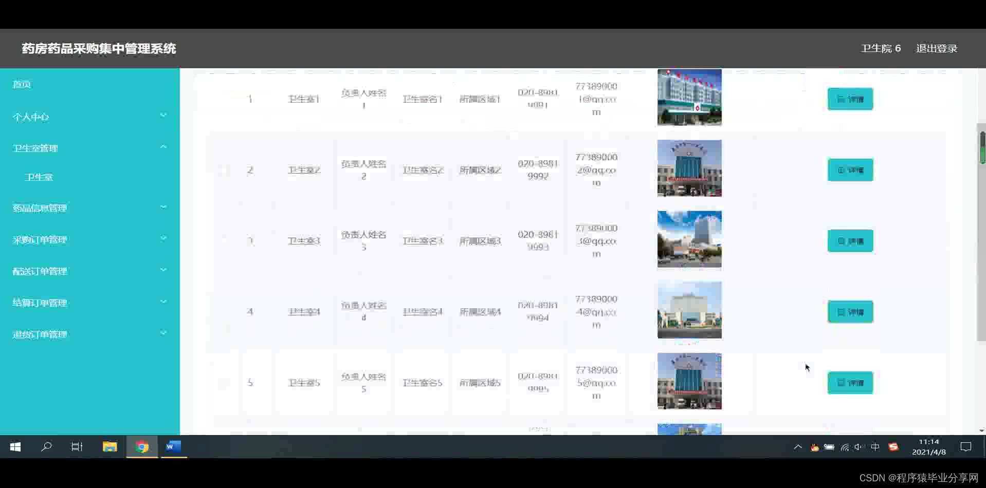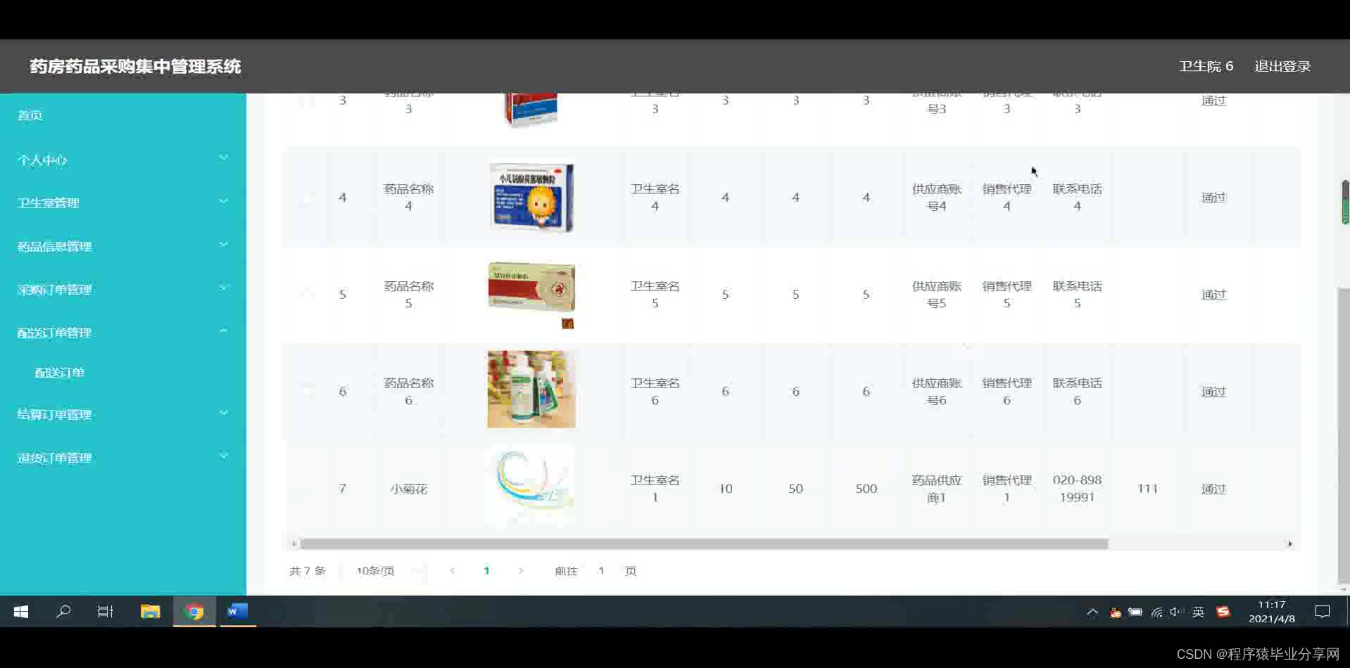 药房药品采购集中管理系统在Eclipse环境中,使用Java语言进行编码,使用Mysql创建数据表保存本系统产生的数据。系统可以提供信息显示和相应服务,系统可以实现采购订单管理,配送订单管理,结算订单管理,退货订单管理以及药品信息管理等功能。