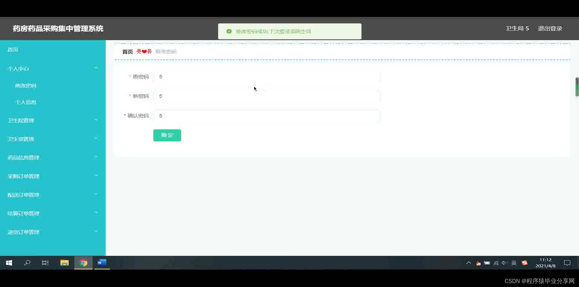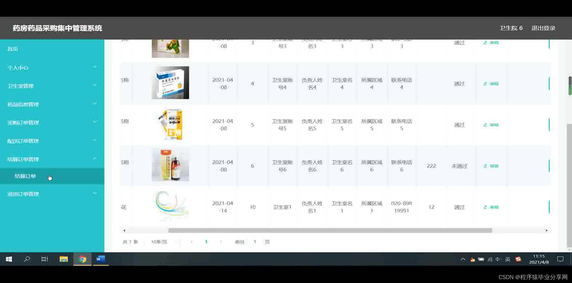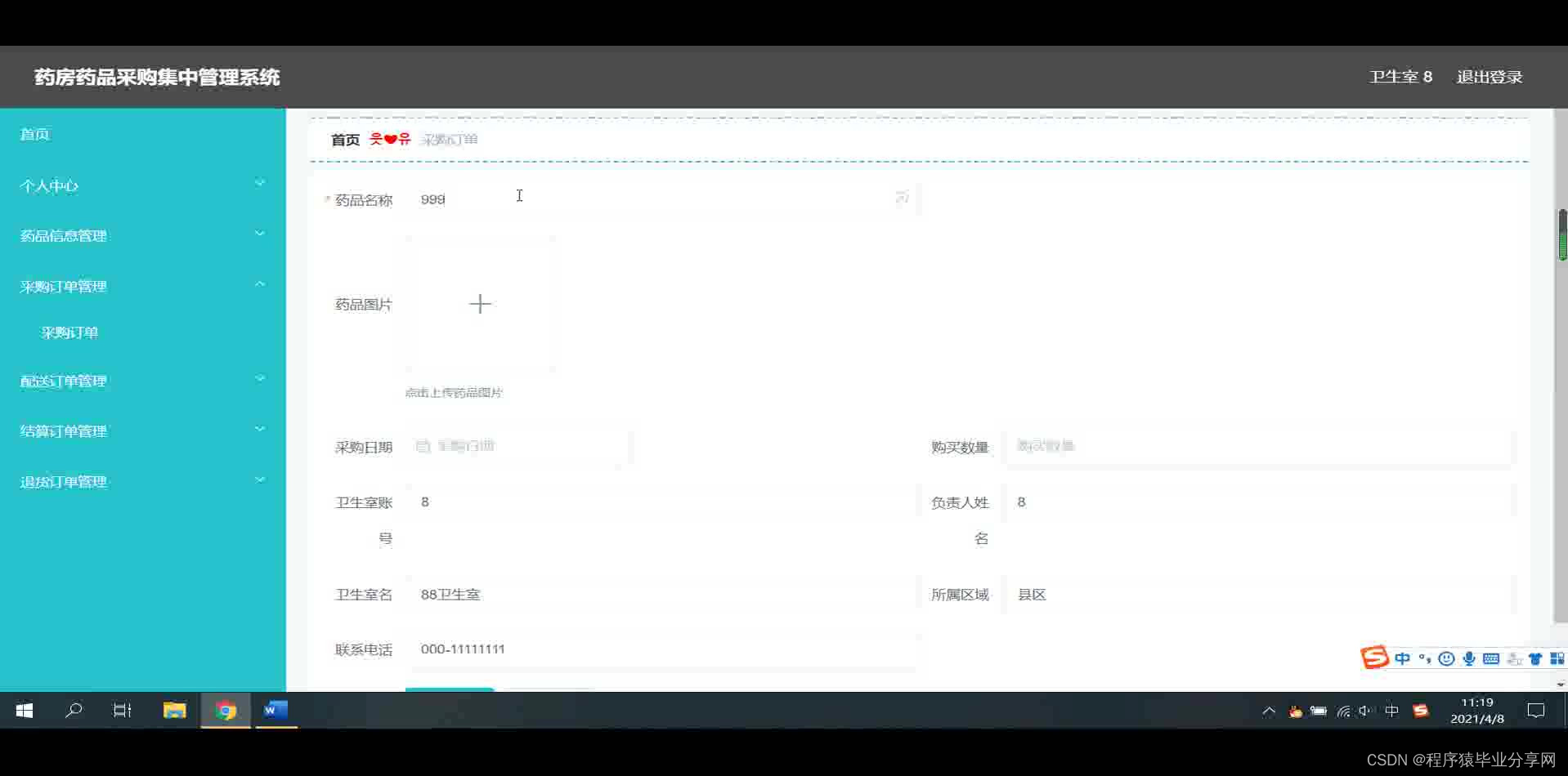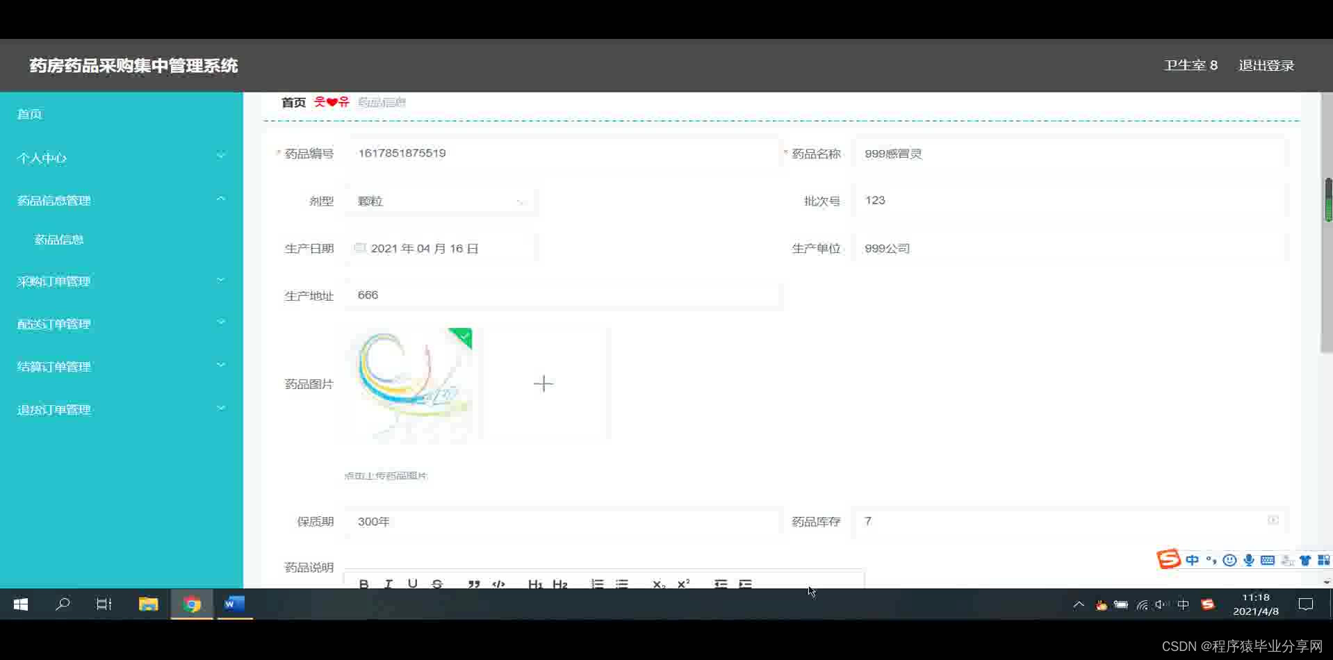 药房药品采购集中管理系统在Eclipse环境中,使用Java语言进行编码,使用Mysql创建数据表保存本系统产生的数据。系统可以提供信息显示和相应服务,系统可以实现采购订单管理,配送订单管理,结算订单管理,退货订单管理以及药品信息管理等功能。