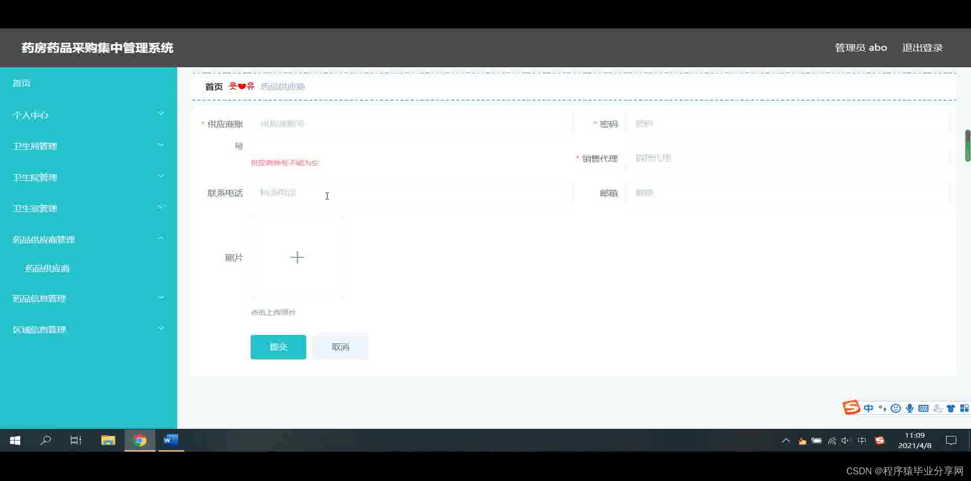 本文介绍基于ssm+vue的药房药品采购集中管理系统。该系统在Eclipse环境中用Java编码,以Mysql存储数据,可实现采购、配送、结算、退货订单管理及药品信息管理等功能,能有效解决药房采购信息管理混乱等问题,降低成本,实现信息管理计算机化。