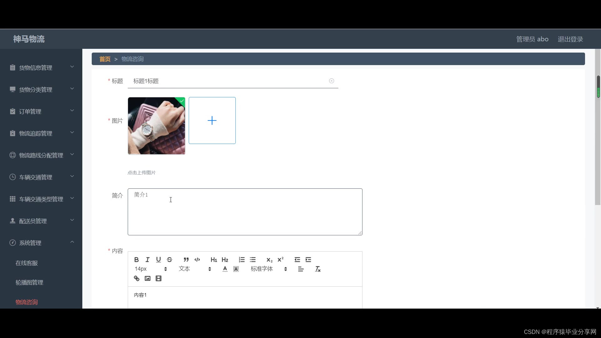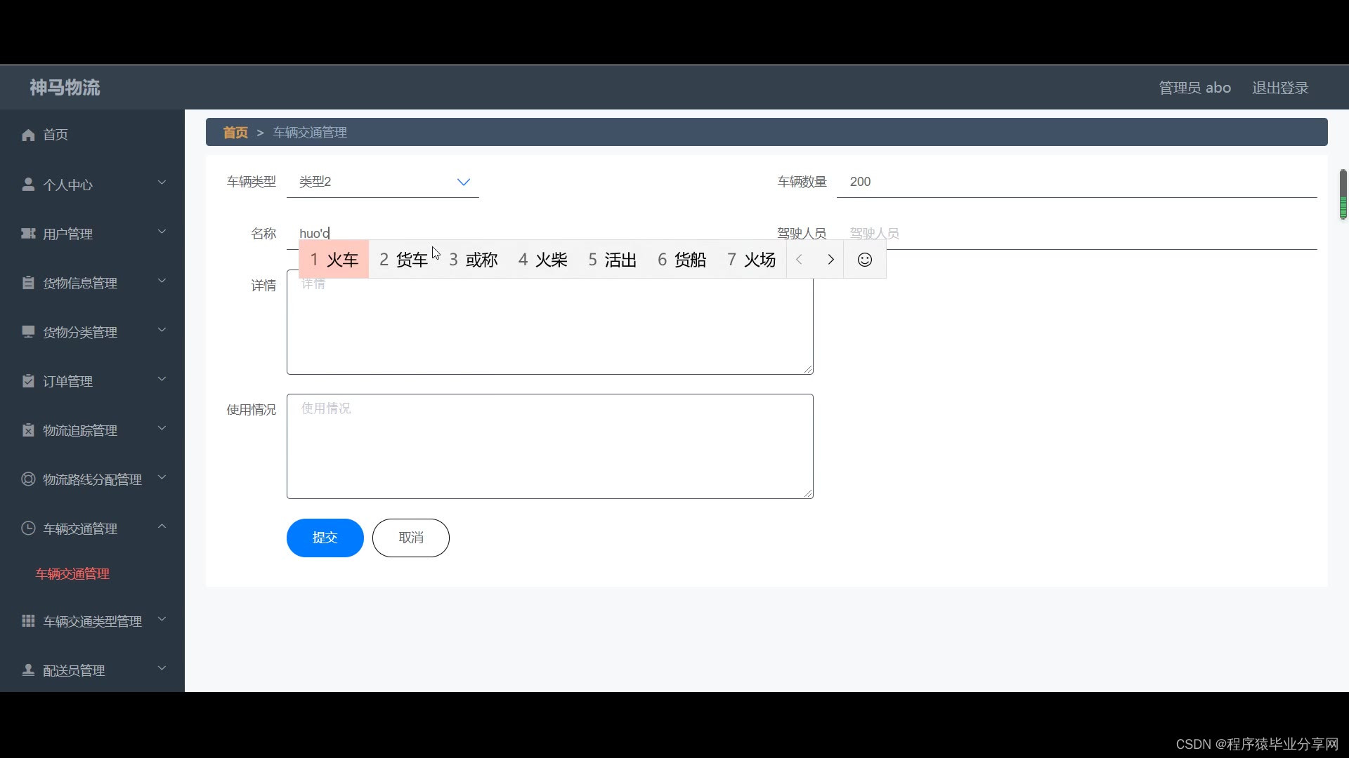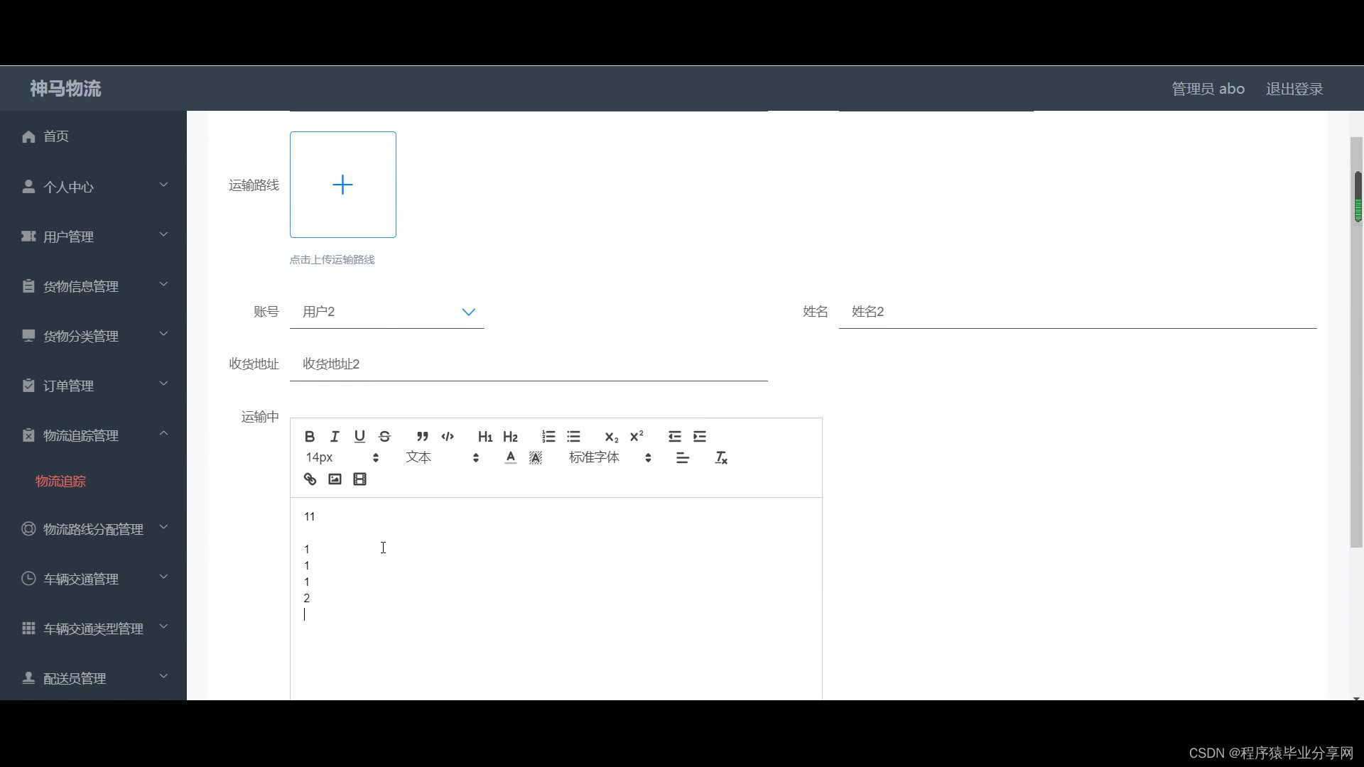 Key words:Logistics management, Java programming language, Vue framework, MYSQL database