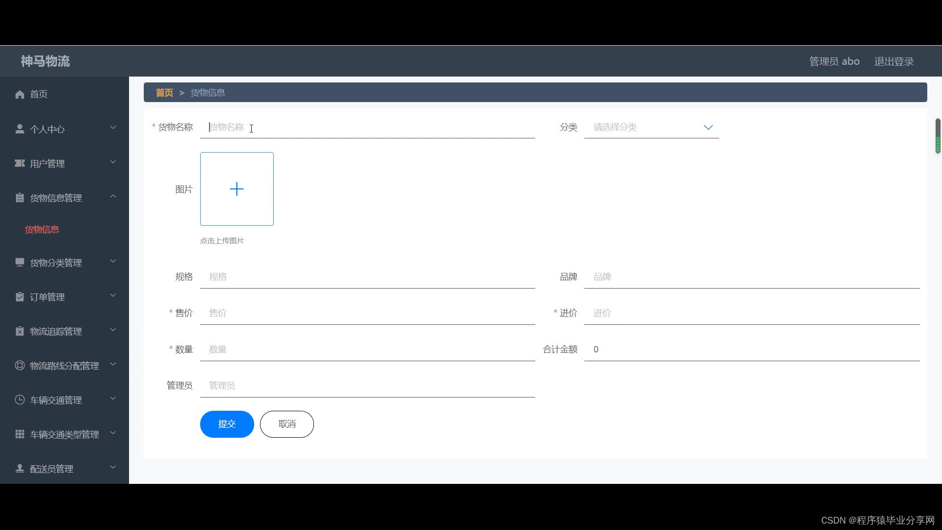 关键词:物流管理,Java编程语言,Vue框架,MYSQL数据库