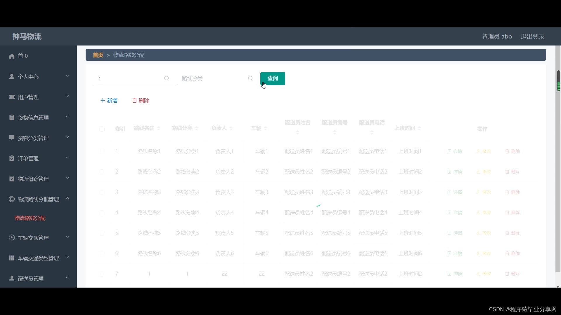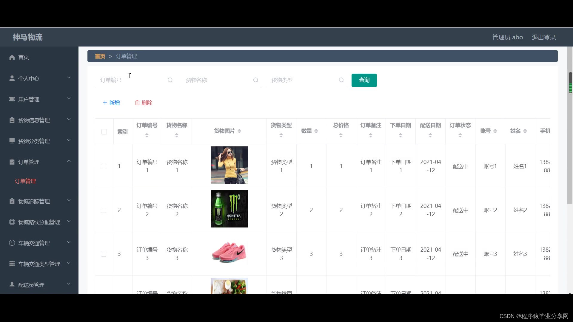 The Shenma logistics management system has stable operation effect, convenient and fast operation, and friendly interface. It is a Shenma logistics management platform with comprehensive functions, good practicability, high safety, and good scalability and maintainability.