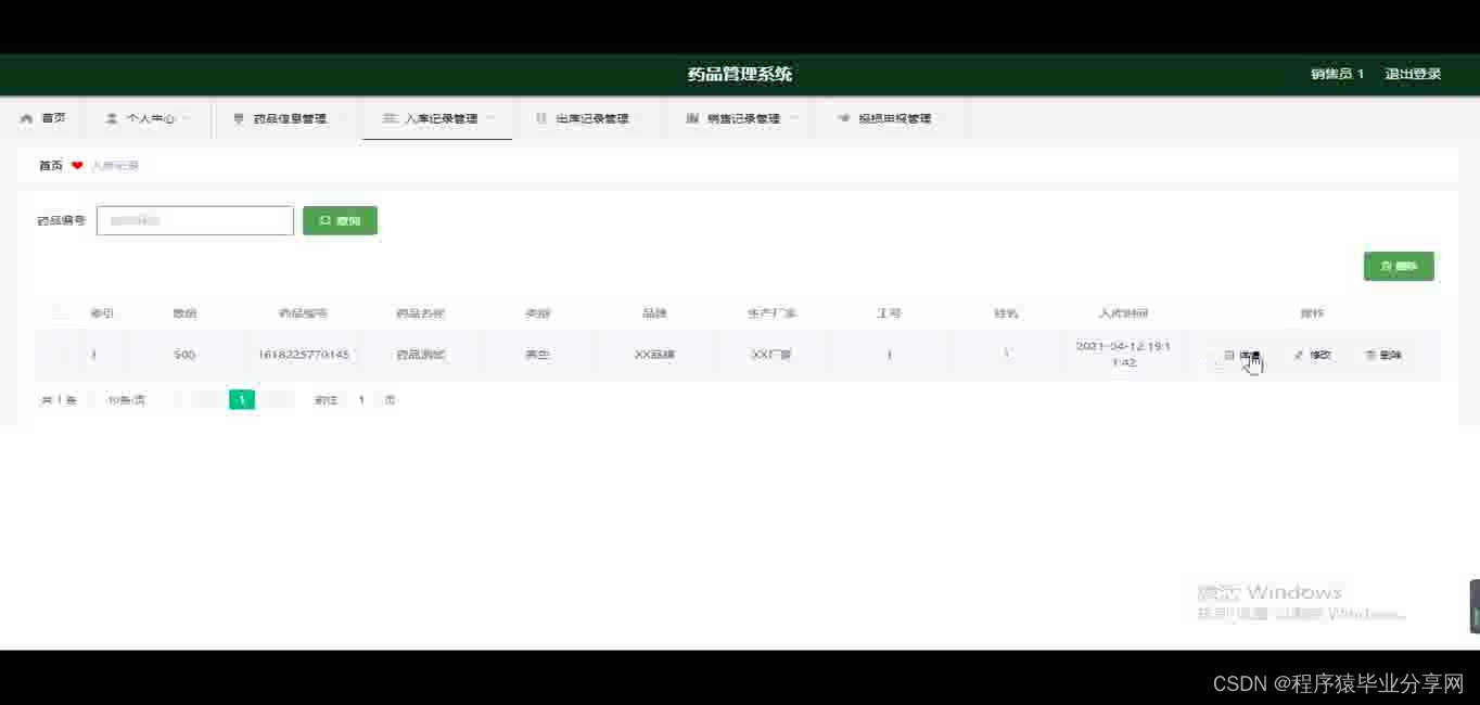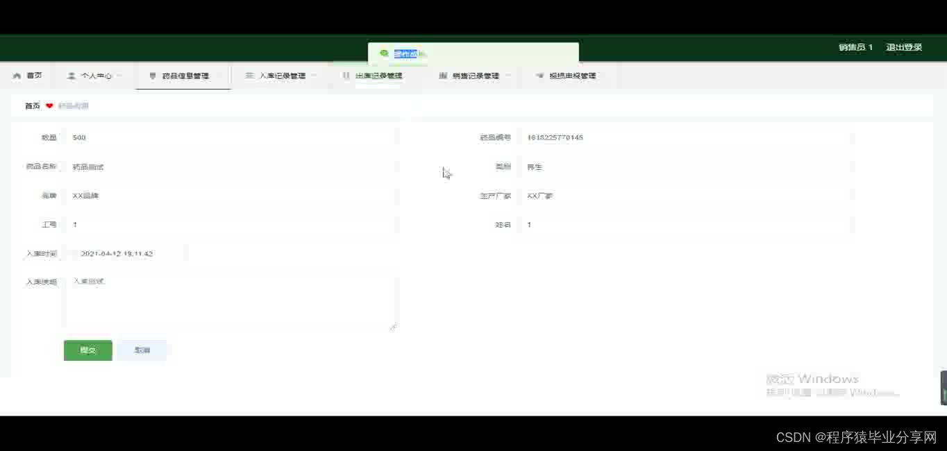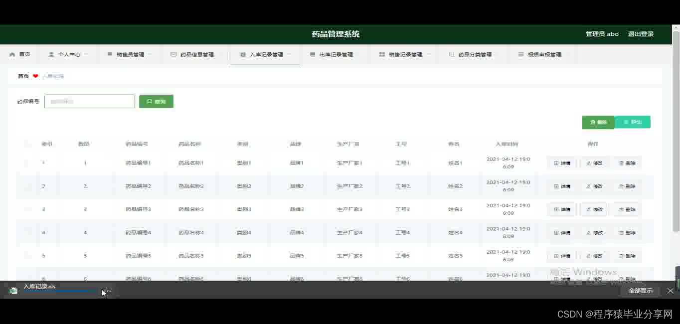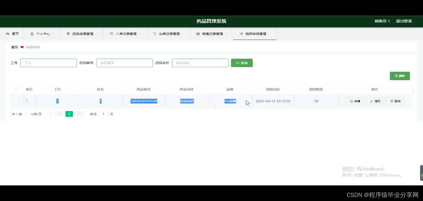 药品管理系统在IDE环境中,使用Java语言进行编码,使用Mysql创建数据表保存本系统产生的数据。系统可以提供信息显示和相应服务,其管理员统计药品销售量,可以导出药品出入库记录,管理药品以及报损信息。销售员管理药品,对药品进行销售,入库,出库以及报损。