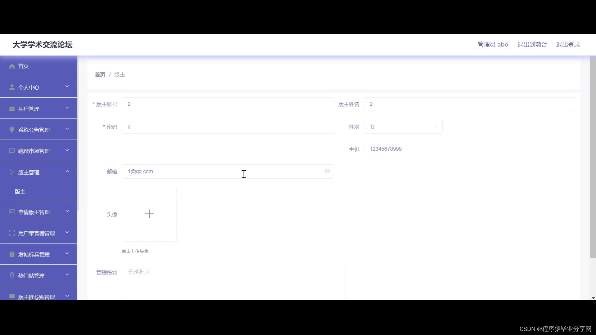 ssm+vue大学学术交流论坛系统源码和论文185