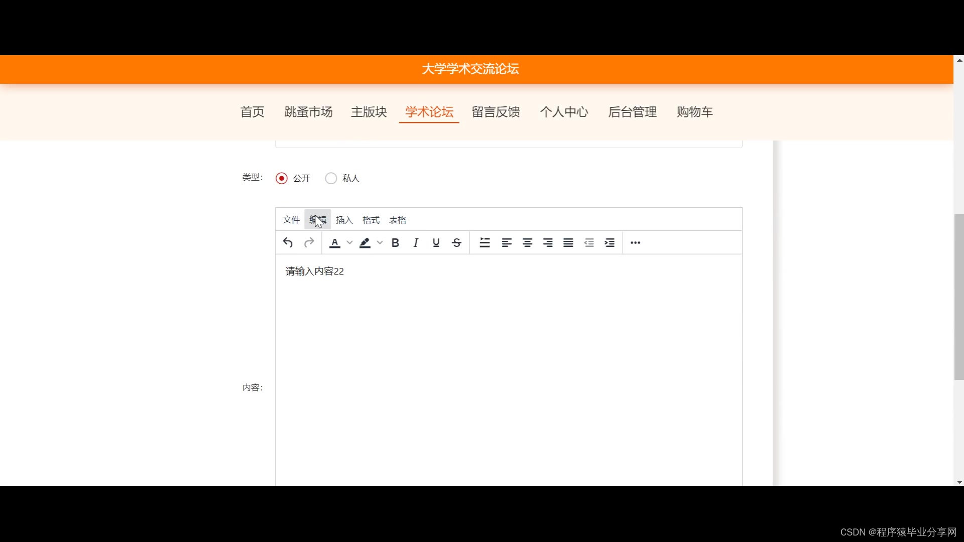 关键词:大学学术交流论坛,JAVA,Mysql