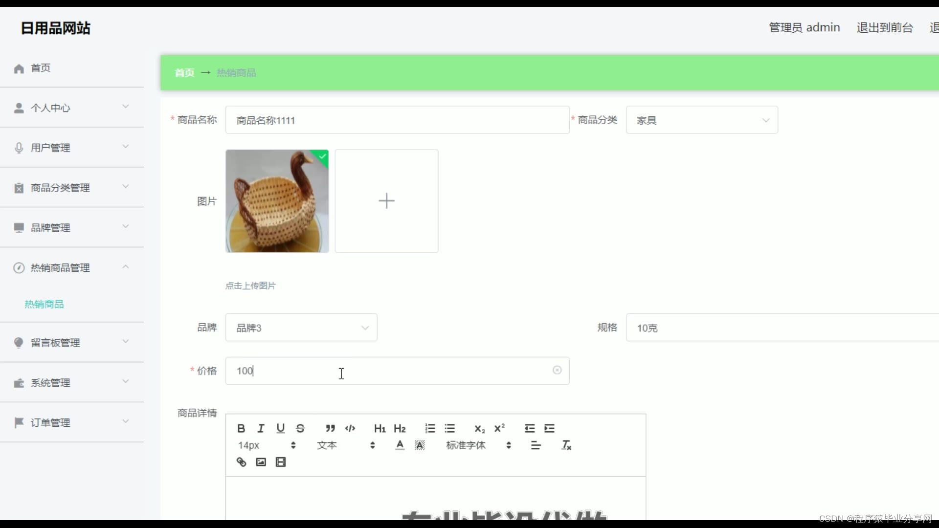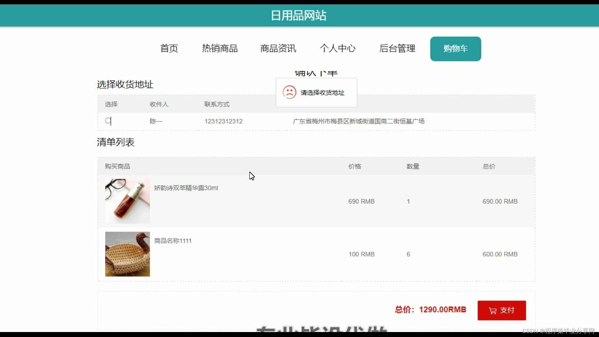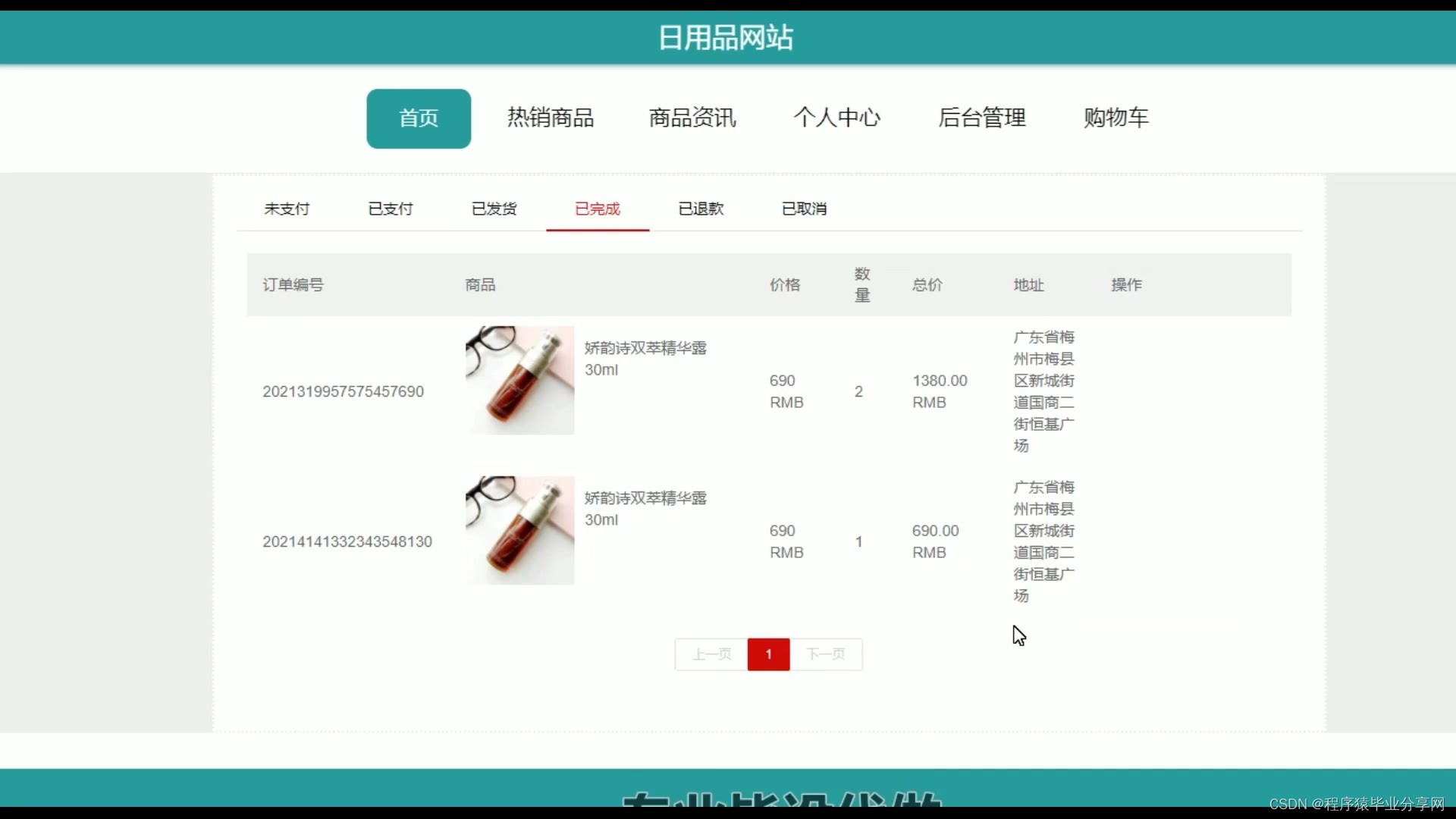 现代经济快节奏发展以及不断完善升级的信息化技术,让传统数据信息的管理升级为软件存储,归纳,集中处理数据信息的管理方式。本日用品网站就是在这样的大环境下诞生,其可以帮助管理者在短时间内处理完毕庞大的数据信息,使用这种软件工具可以帮助管理人员提高事务处理效率,达到事半功倍的效果。此日用品网站利用当下成熟完善的SSM框架,使用跨平台的可开发大型商业网站的Java语言,以及最受欢迎的RDBMS应用软件之一的Mysql数据库进行程序开发.日用品网站的开发根据操作人员需要设计的界面简洁美观,在功能模块布局上跟同类型网站保持一致,程序在实现基本要求功能时,也为数据信息面临的安全问题提供了一些实用的解决方案。可以说该程序在帮助管理者高效率地处理工作事务的同时,也实现了数据信息的整体化,规范化与自动化。