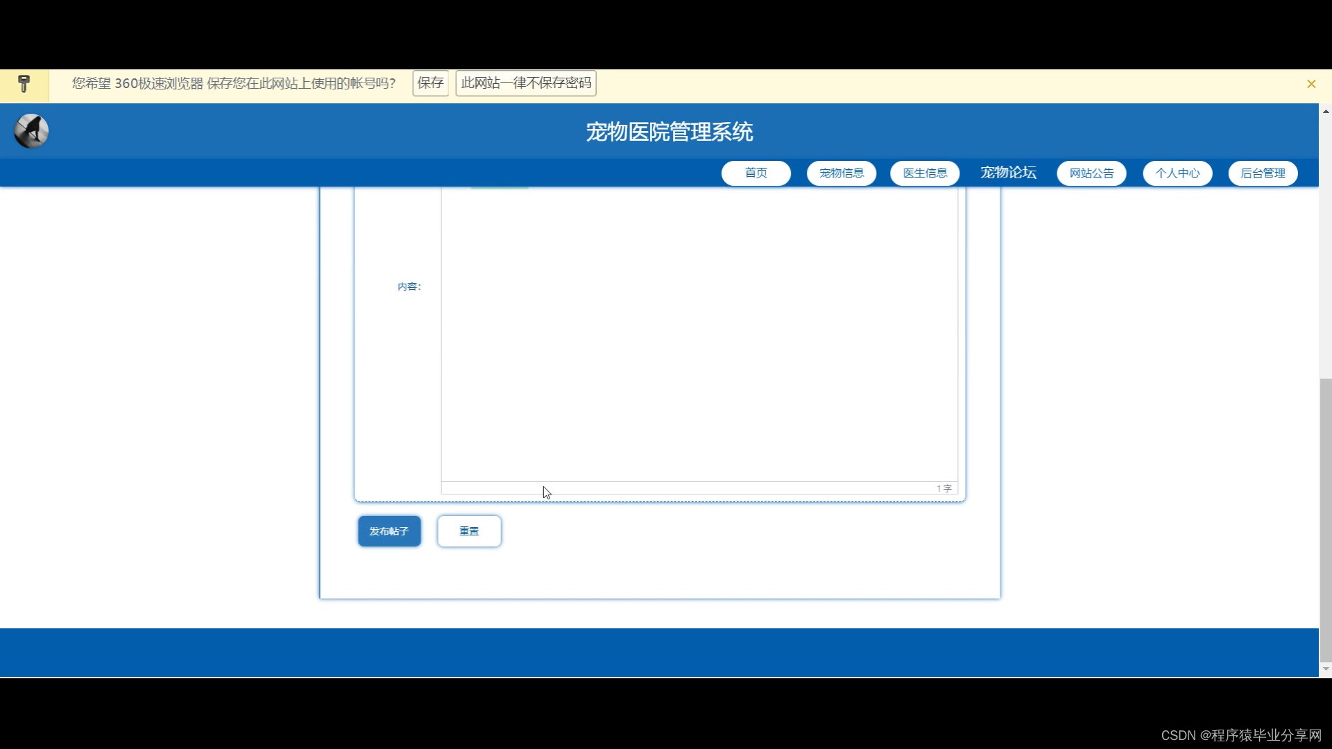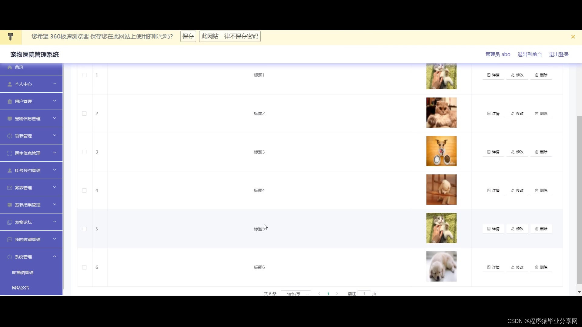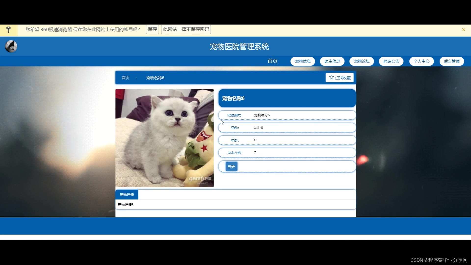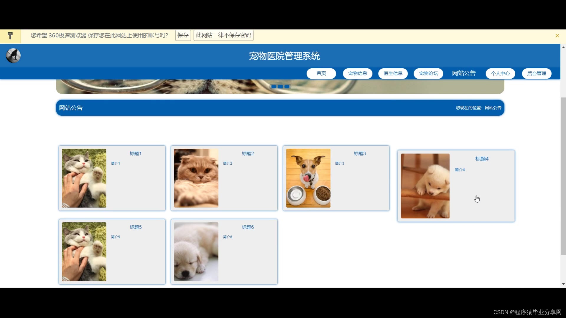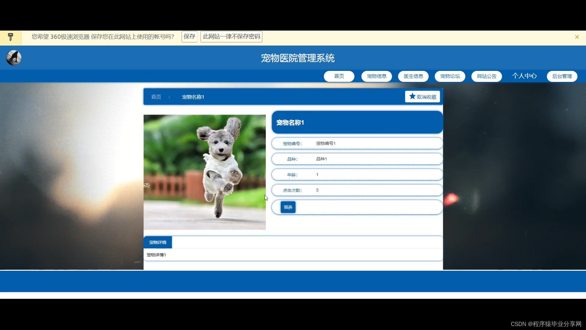 随着人们的生活水平的不断提高、物质生活不断丰富、精神追求不断提升,人们也越来亲睐于饲养宠物。近年来宠物市场的急剧发展,也让更多的人们关注饲养宠物的益处,特别是年轻人工作愈发繁重的背景下,留守家中的老年人变得越来越孤独,饲养宠物不失为排解孤独的一种有效途径。近几年计算机网络技术的飞速发展,网络已经成了人们日常生活中重要且必不可少的一部分,很多人想要购买宠物却不知道哪种宠物适合自己;想要了解哪些宠物的饲养习性却无处咨询;想弄清楚哪些宠物适合各年龄段的人却因实体宠物医院路途遥远等原因而作罢。于是,宠物医院管理系统应运而生。由于其方便性、快捷性、可靠性,已成为众多宠物爱好者经常光顾的地方。国内外的宠物医院管理系统众多,虽然这些系统运用的技术有所不同,但是他们实现的功能和目的都有一个共同点,对社会的影响、给人们带来的方便是一样的。他们都能满足绝大多数人的需求,使得分散于各地的宠物饲养者们能找到这样一个虚拟的宠物医院,使得大家不用再为如何领养、挂号、爱护自己的爱宠而发愁。