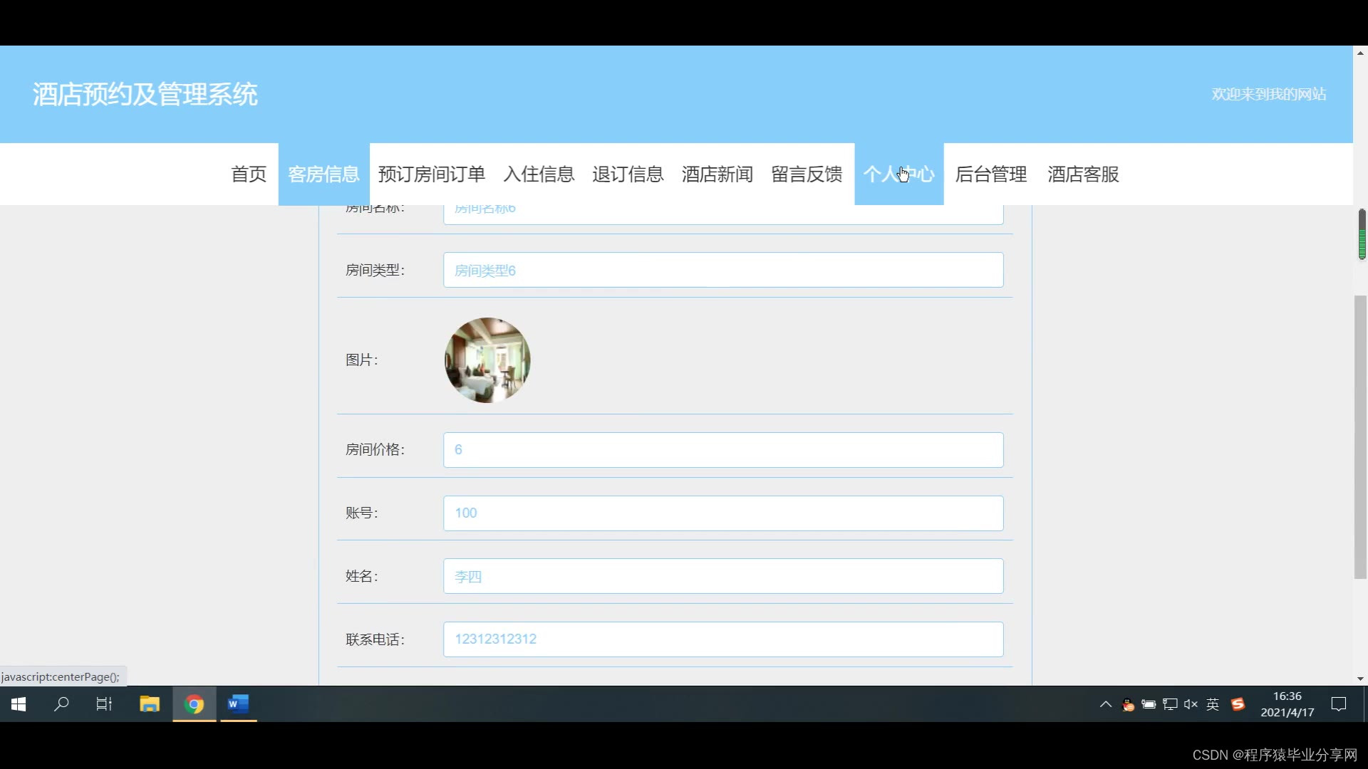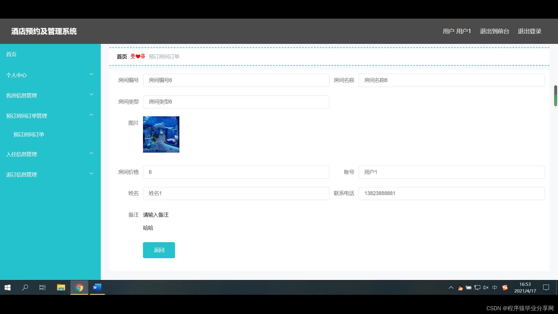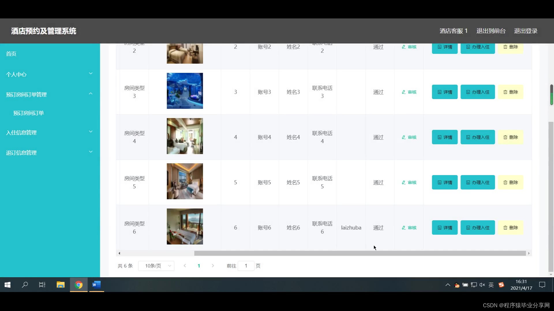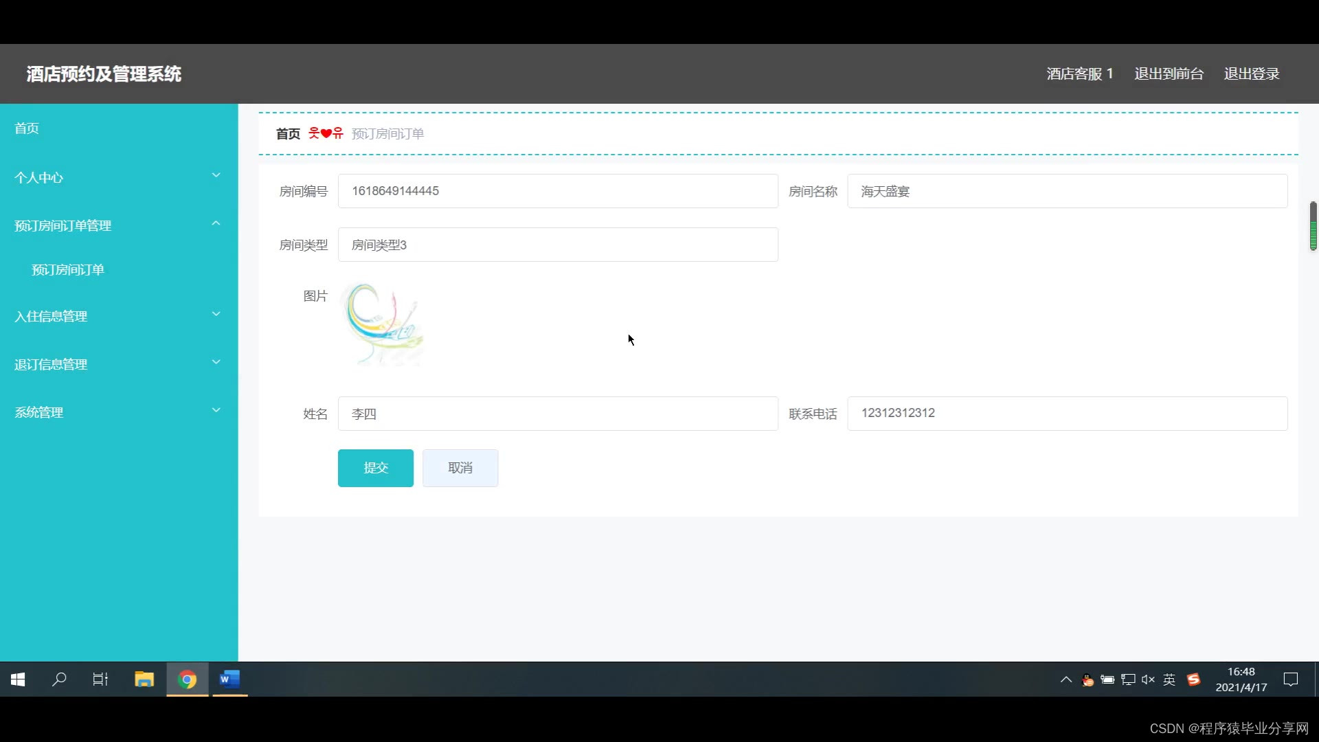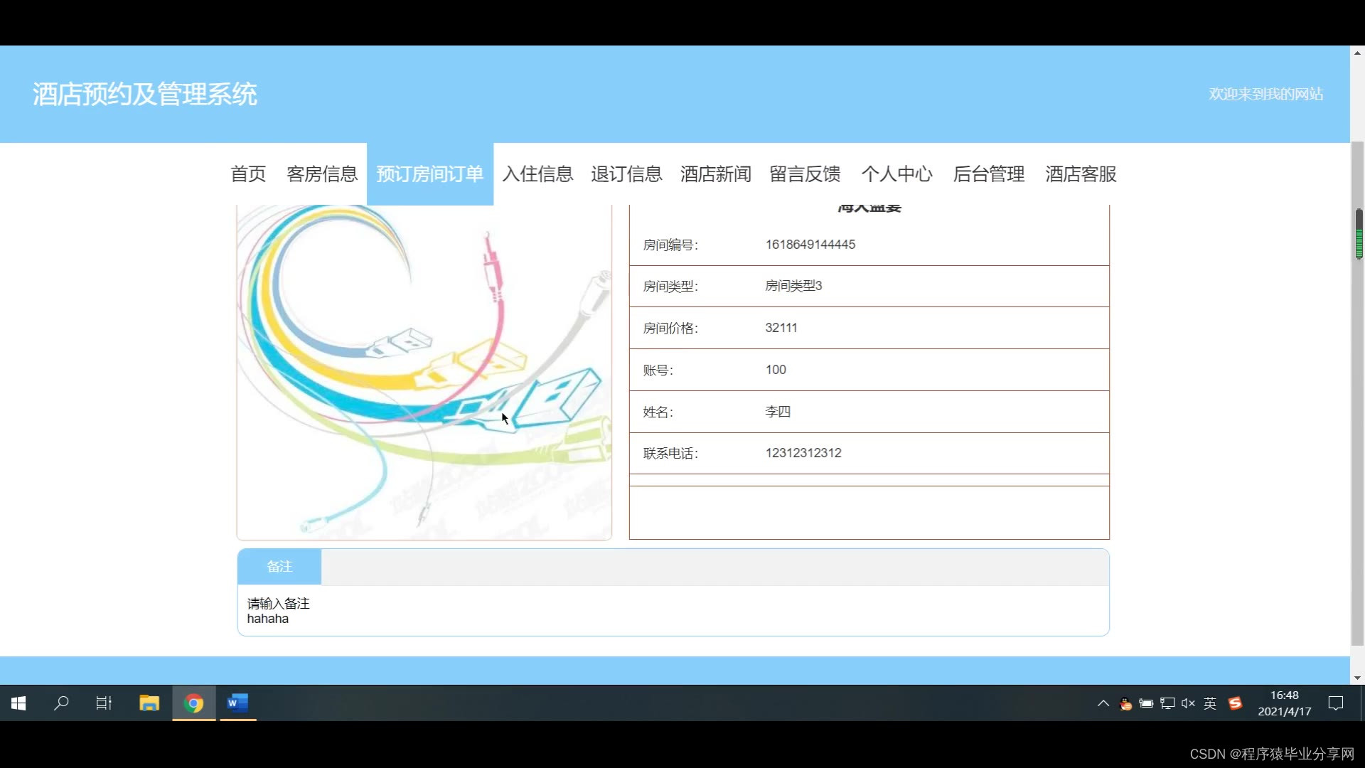 8.酒店预订功能:客户可以进行房间的预定和取消。