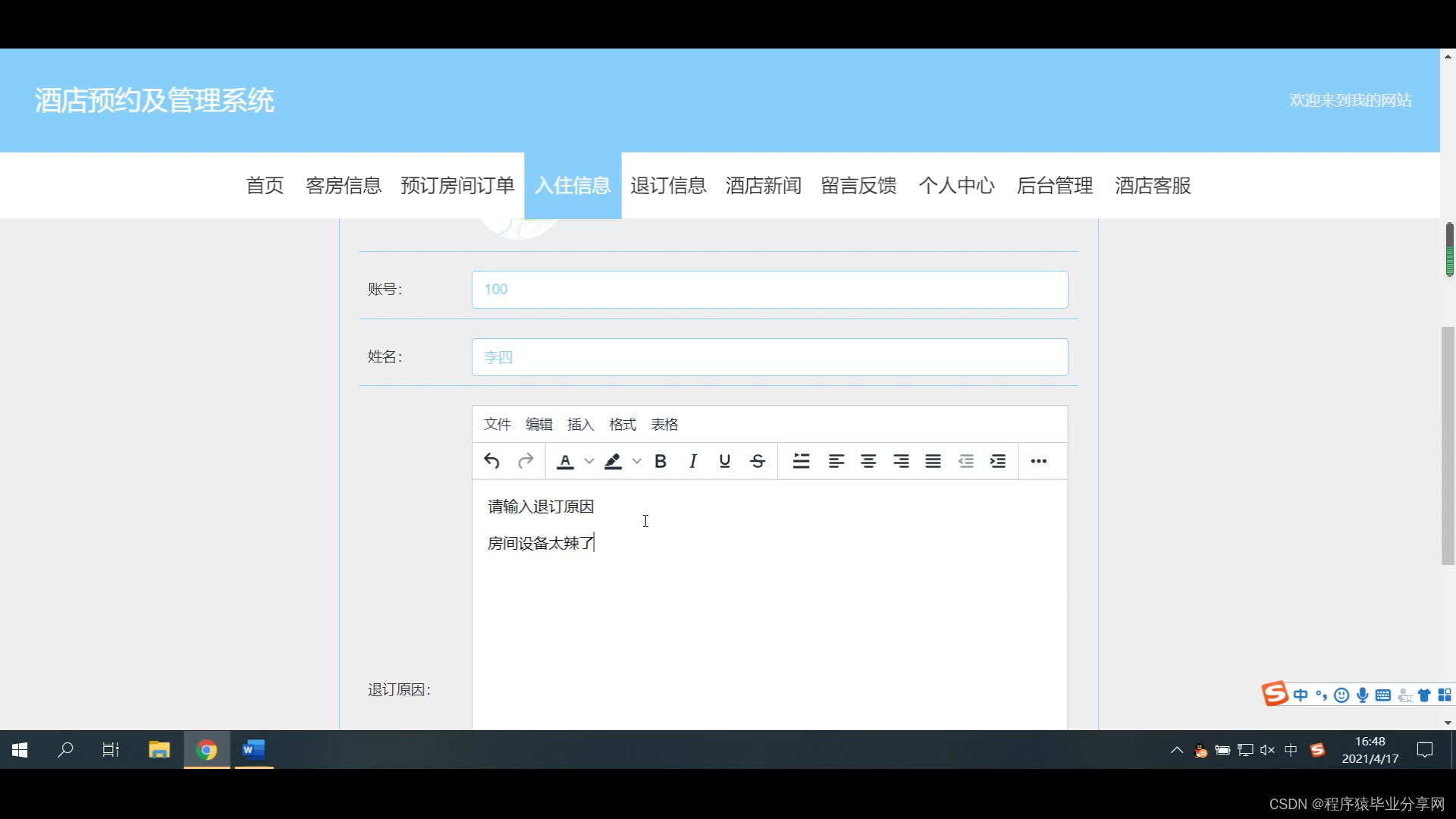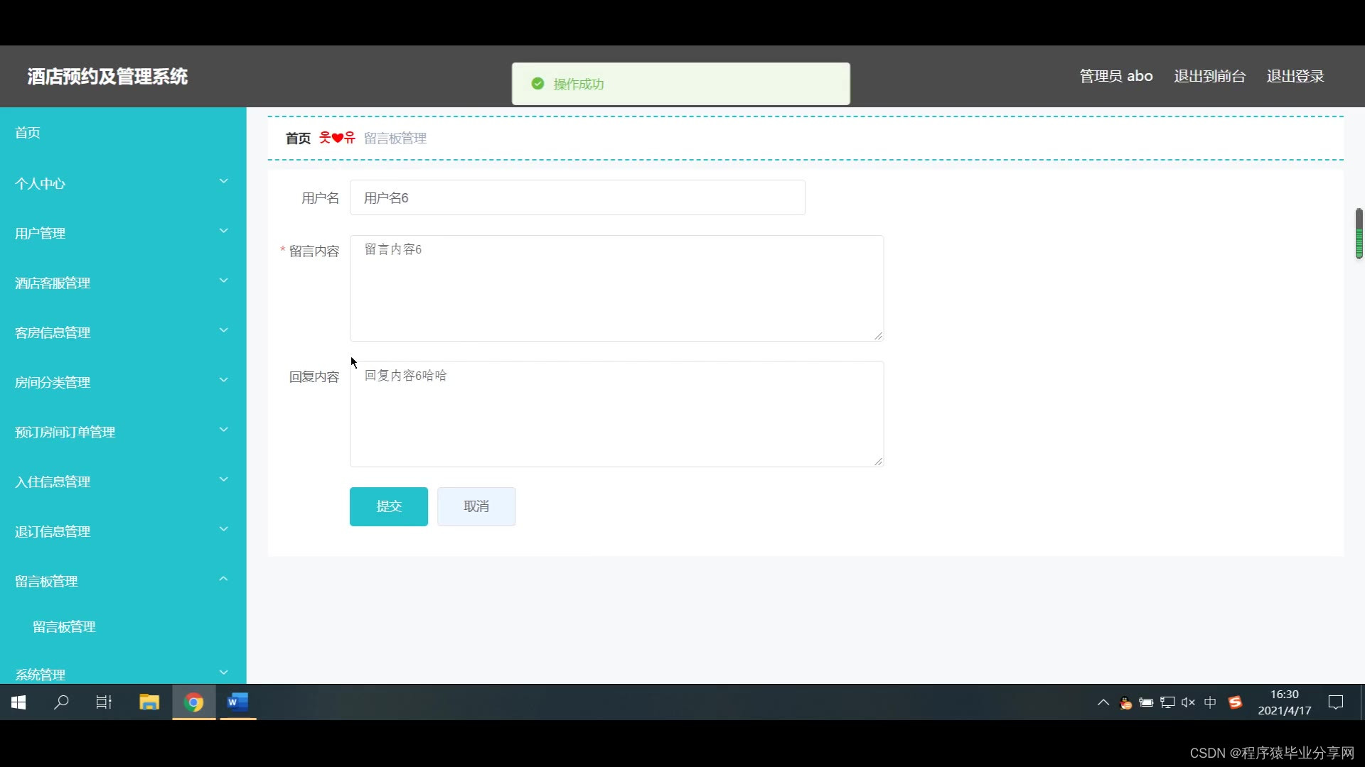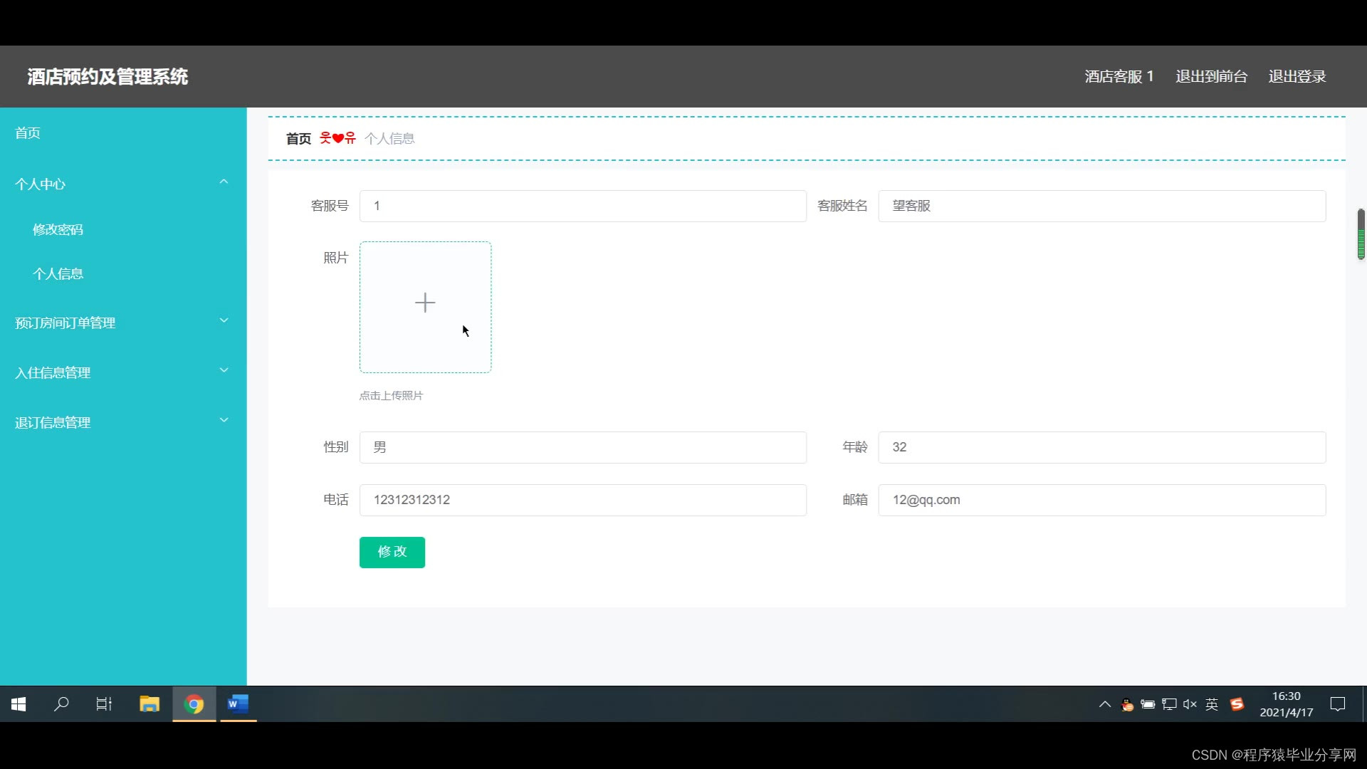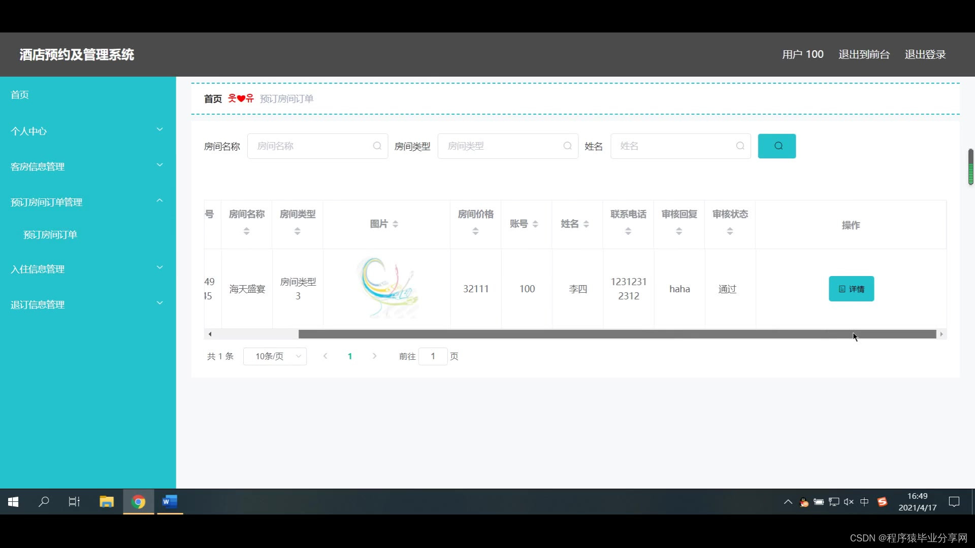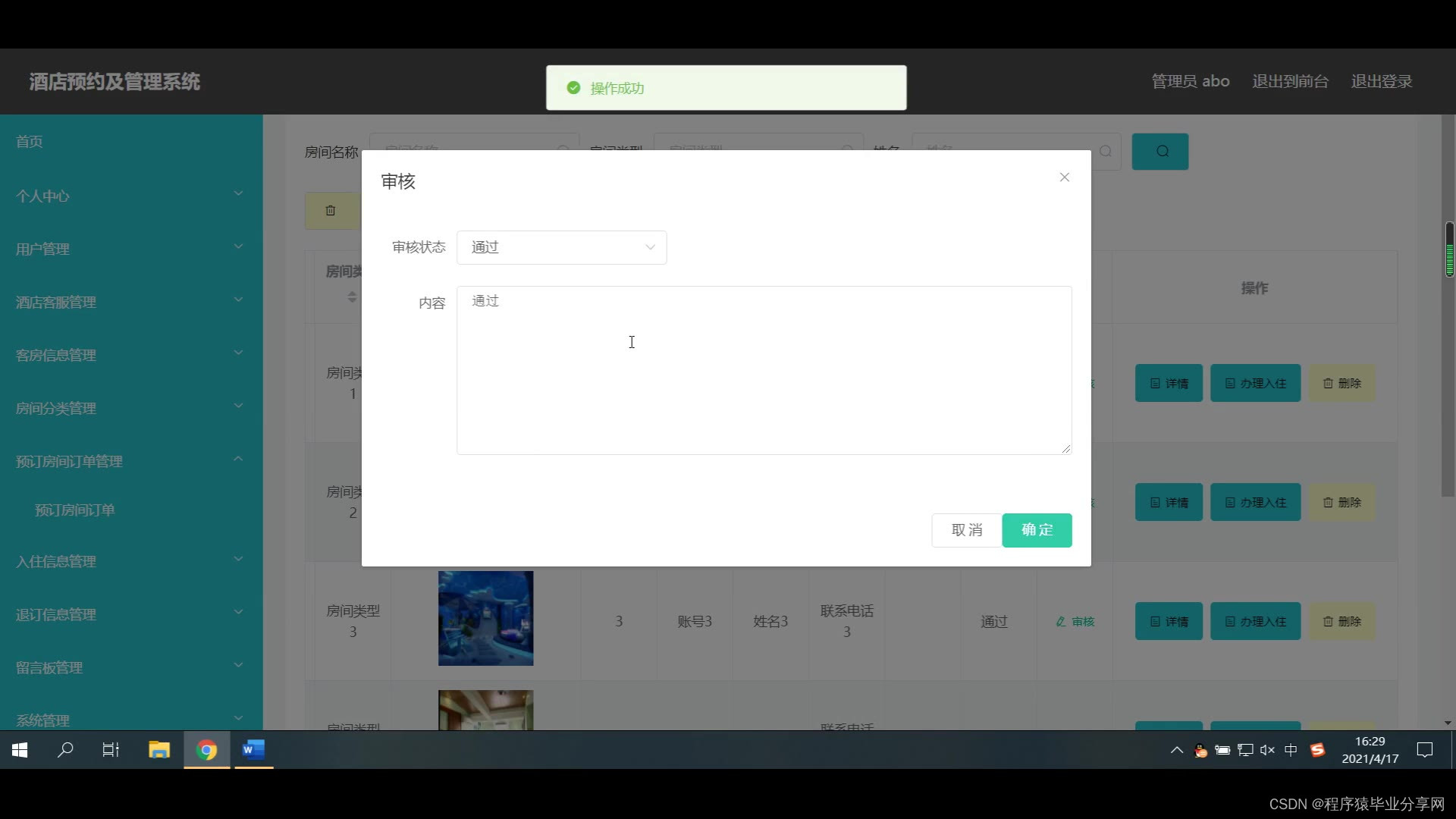 8.酒店预订功能:客户可以进行房间的预定和取消。