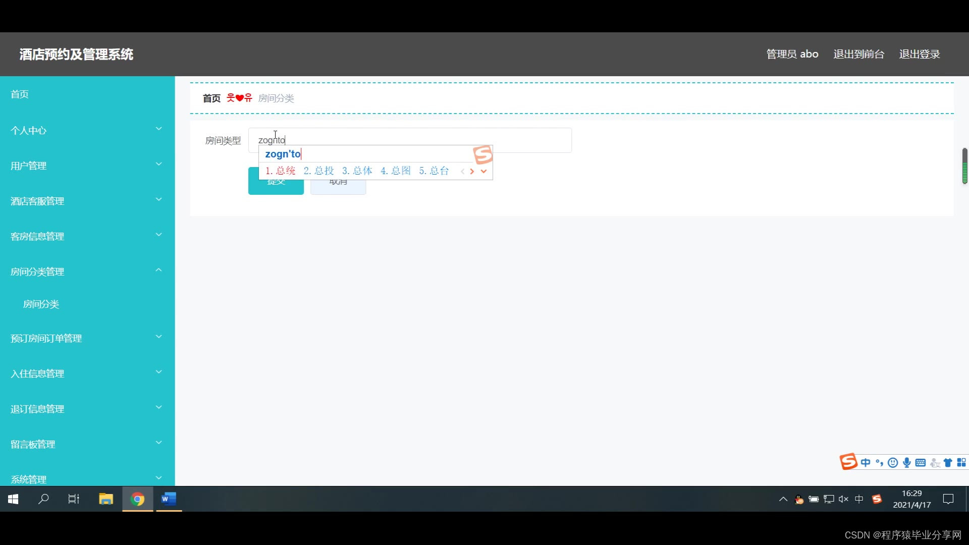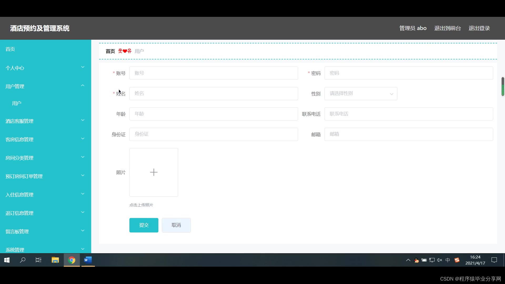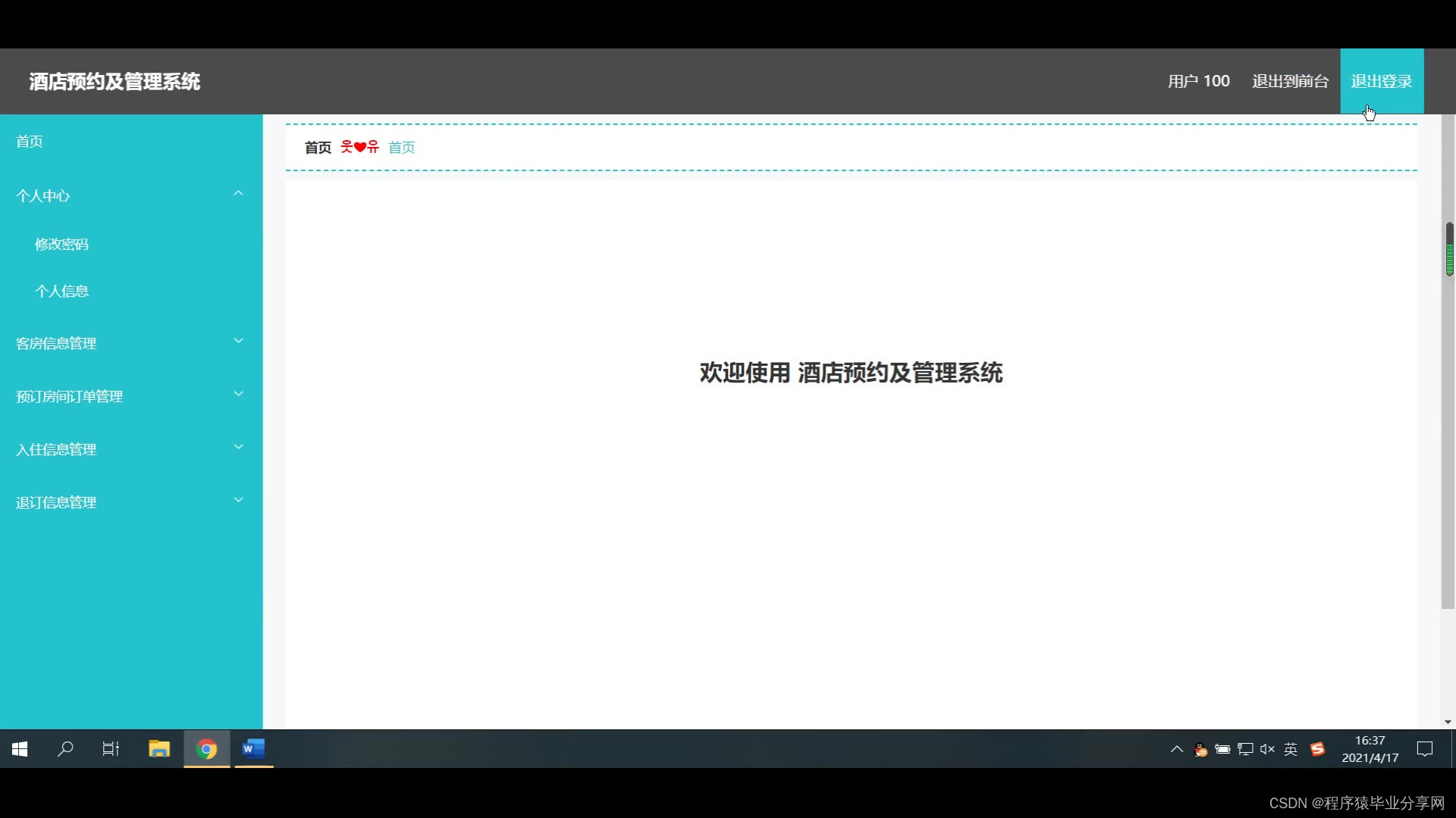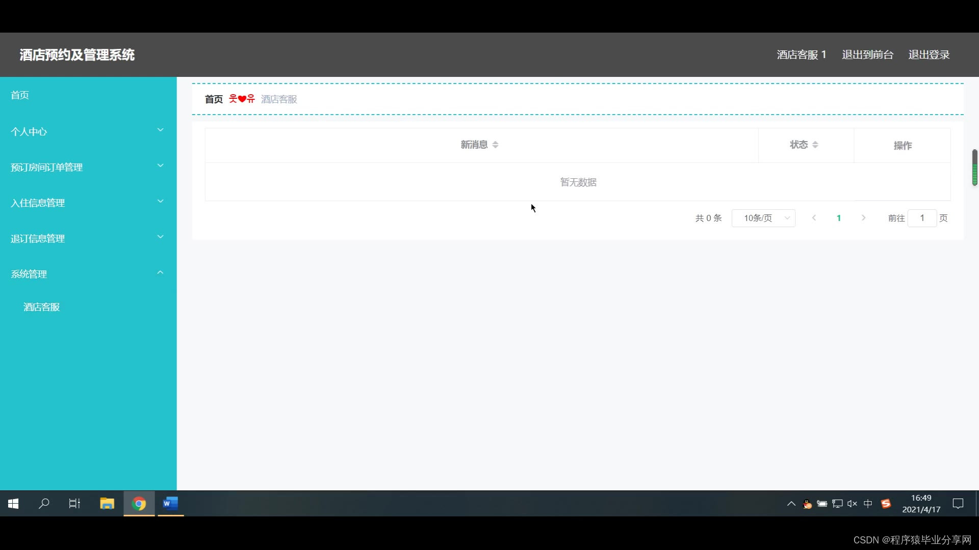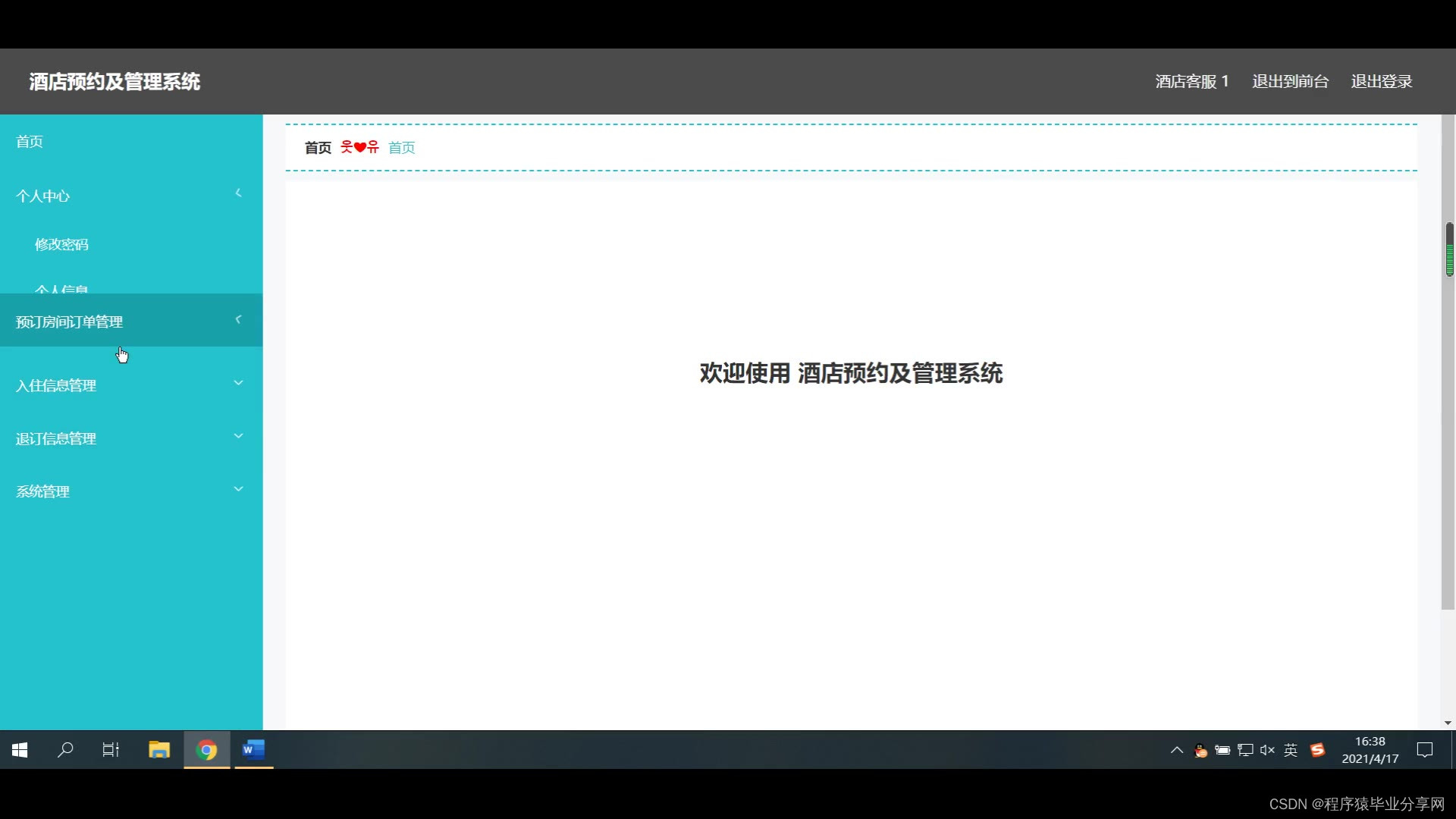 (2)熟悉现有的酒店管理系统,研究其功能特点,并根据本课题的需求,完成需求分析和概要设计等;