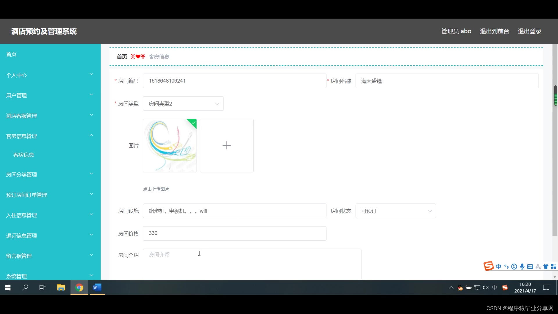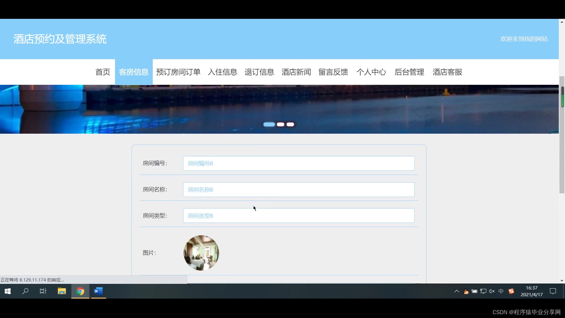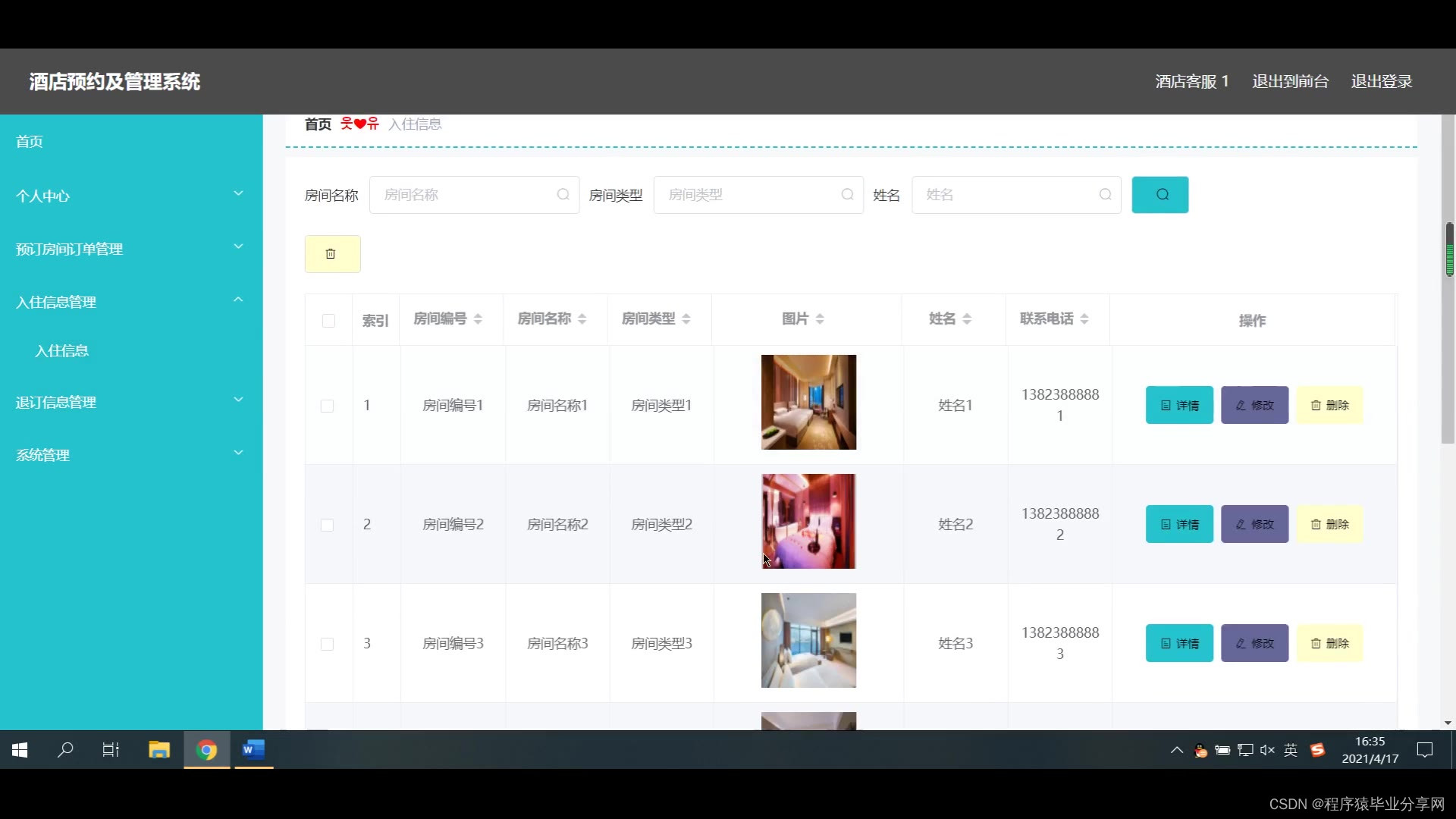 2.房间信息管理:后台管理员及客服可以对酒店的房间信息进行管理。