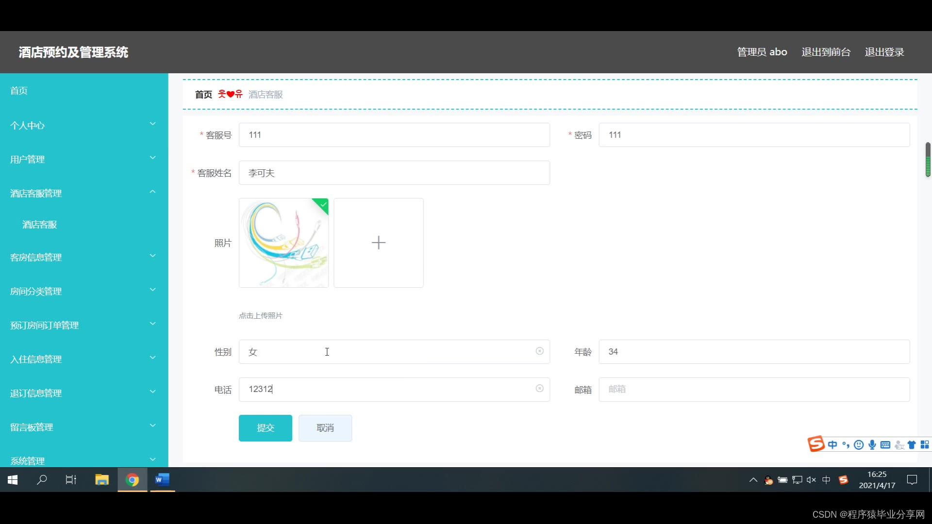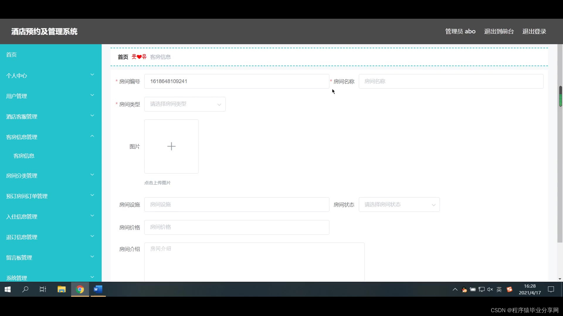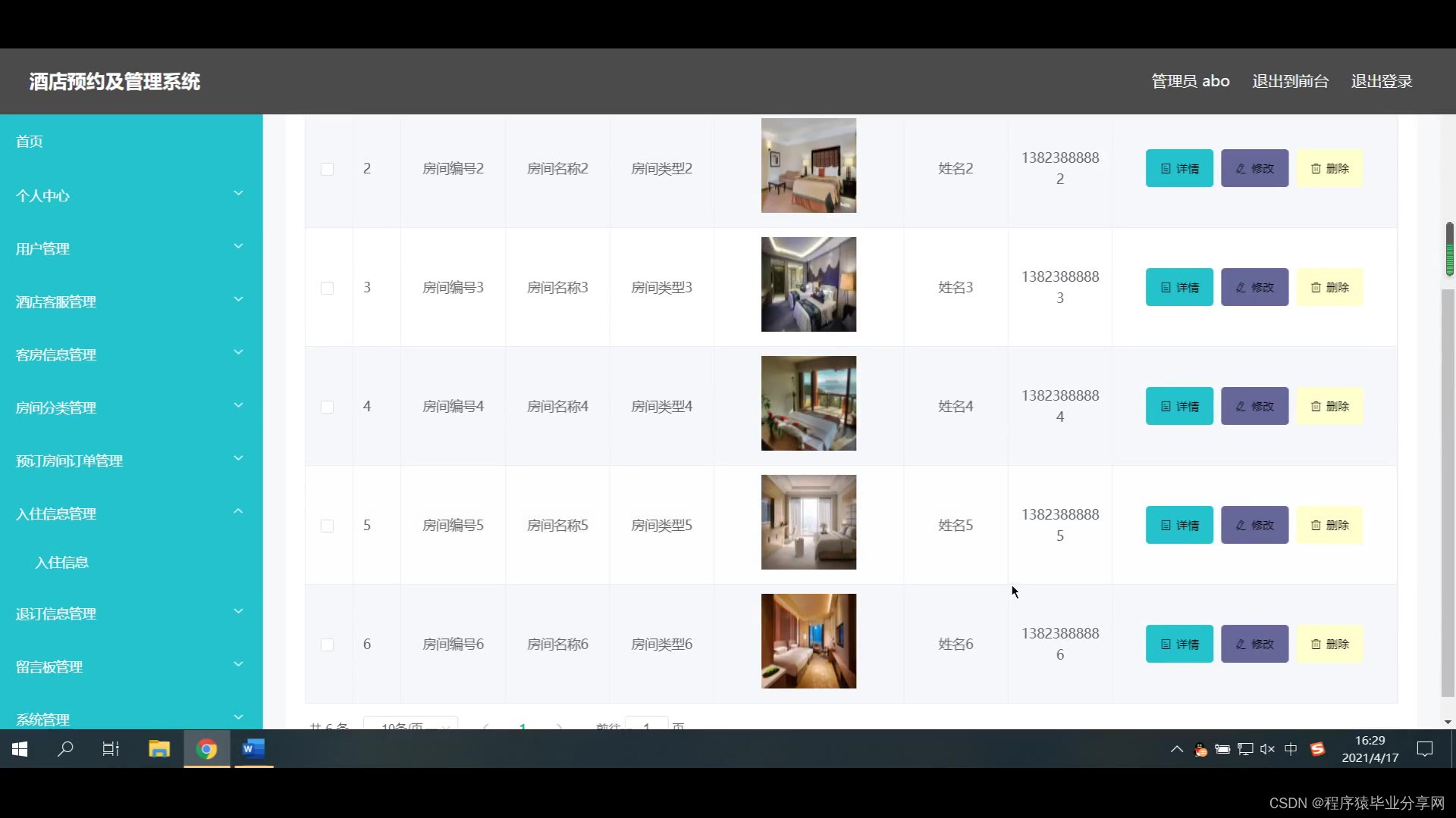 2.房间信息管理:后台管理员及客服可以对酒店的房间信息进行管理。