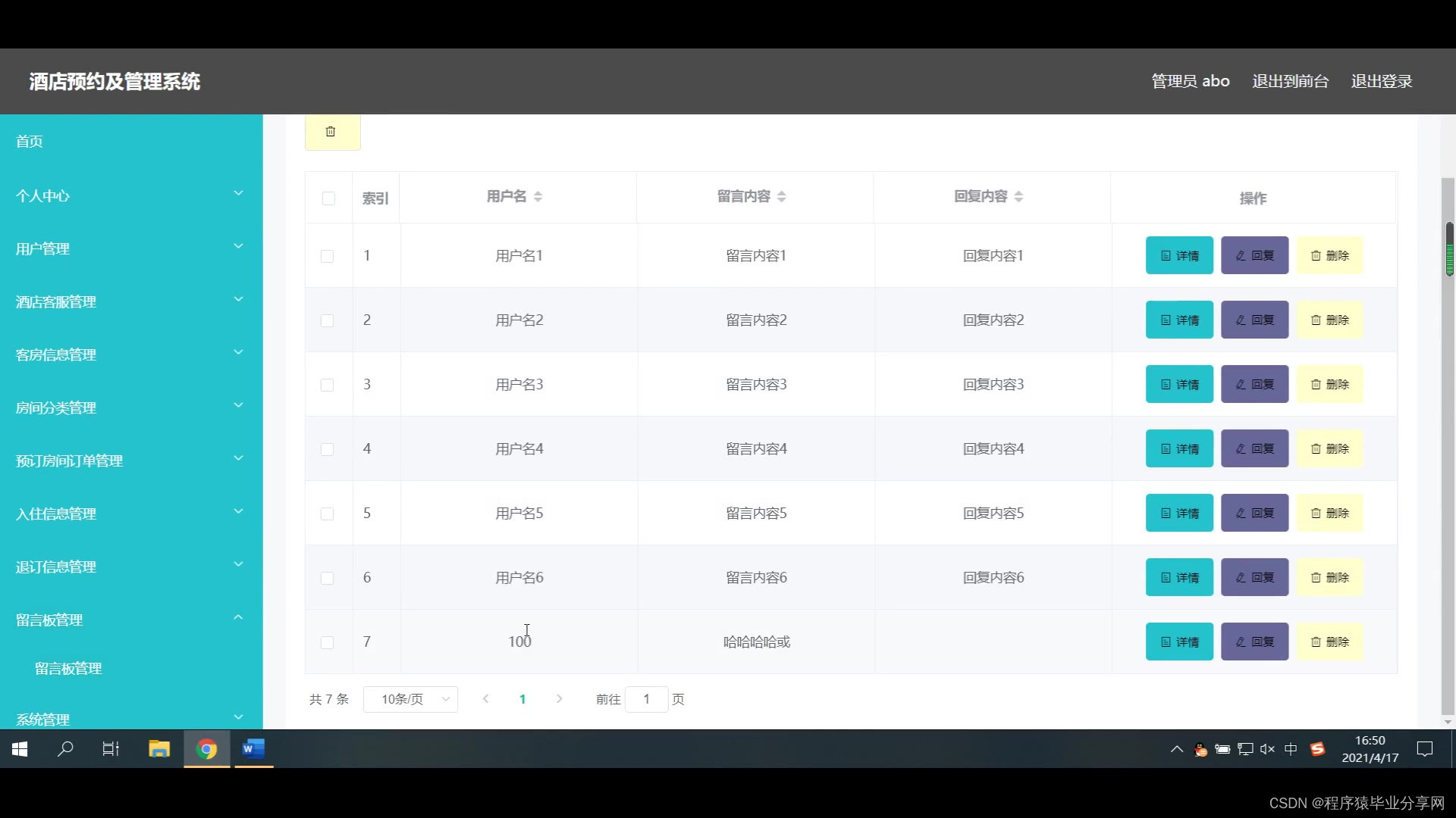 4.留言及评价信息管理:后台管理员可以对客户留言及评价进行管理。