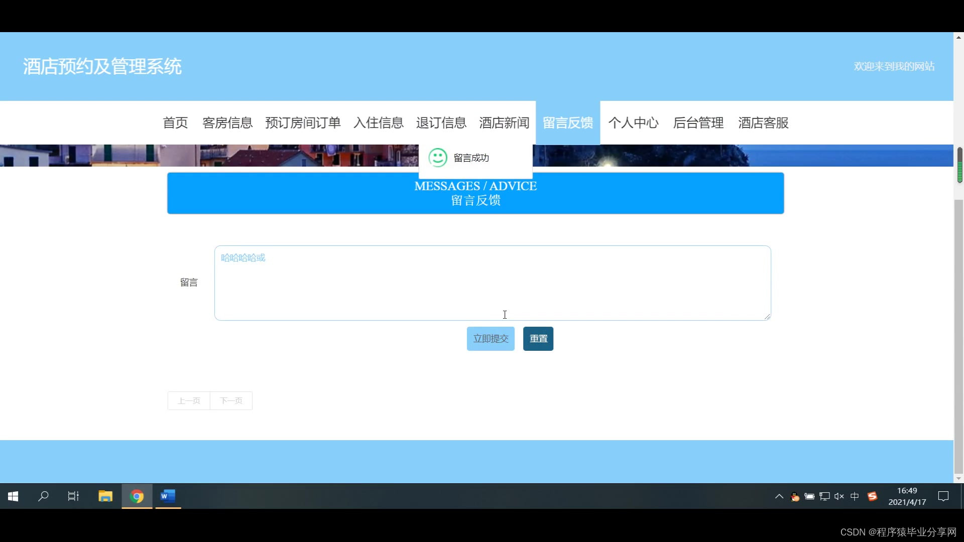 10.留言及评价功能: 客户可以进行留言及对酒店进行评价。