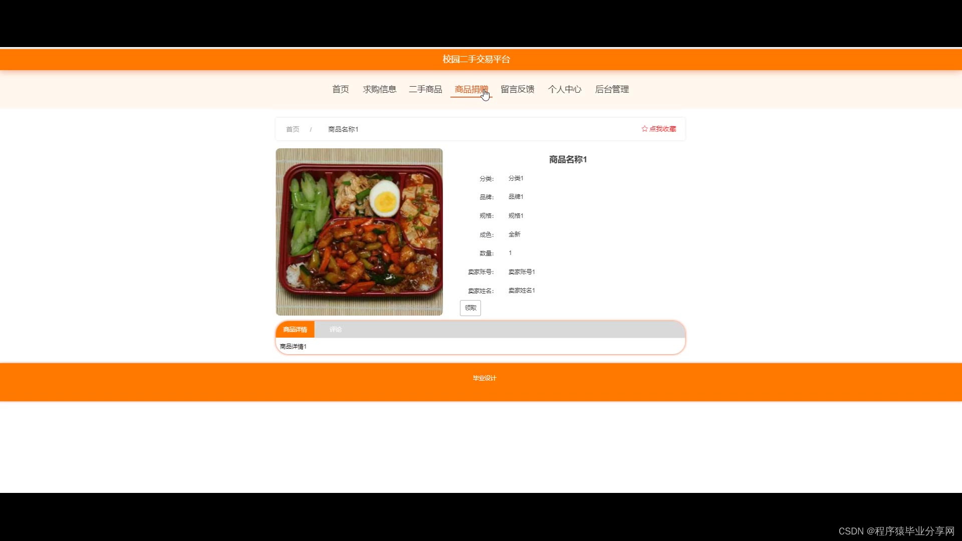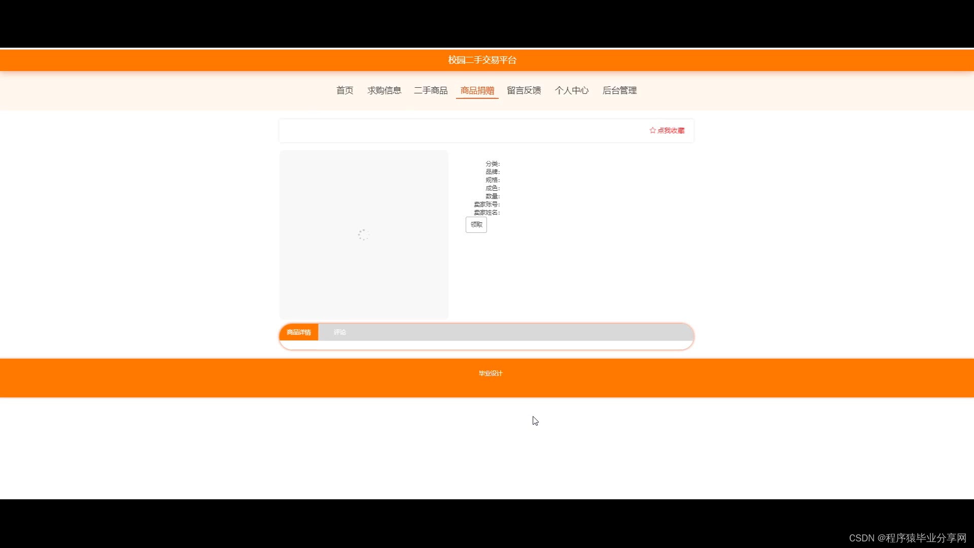This site is a B/S model system, using SSM framework as the development technology, MYSQL database design and development, fully guarantee the stability of the system. The system has the characteristics of clear interface, simple operation and complete functions, which makes the management of the campus second-hand trading platform systematized and standardized.