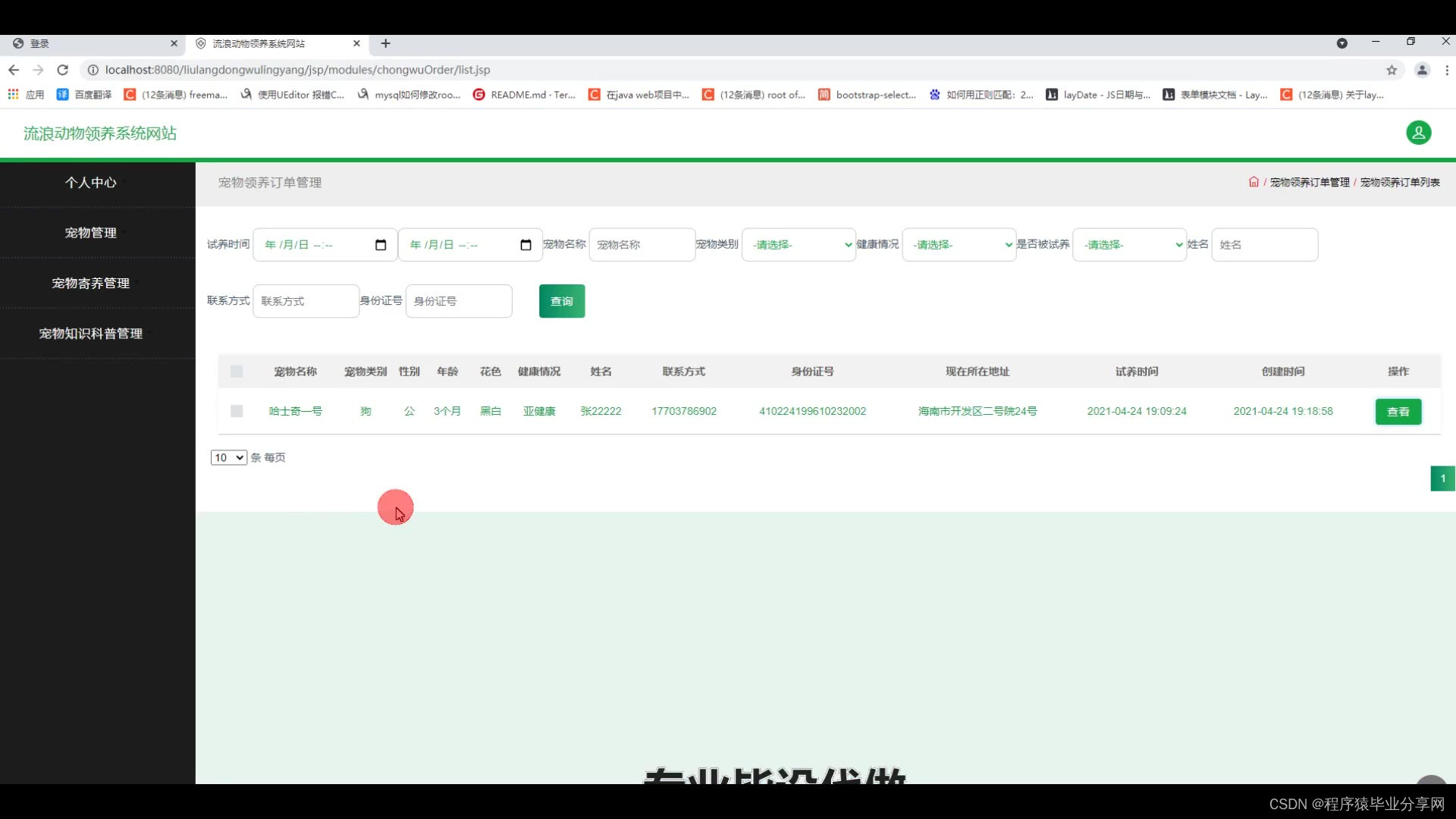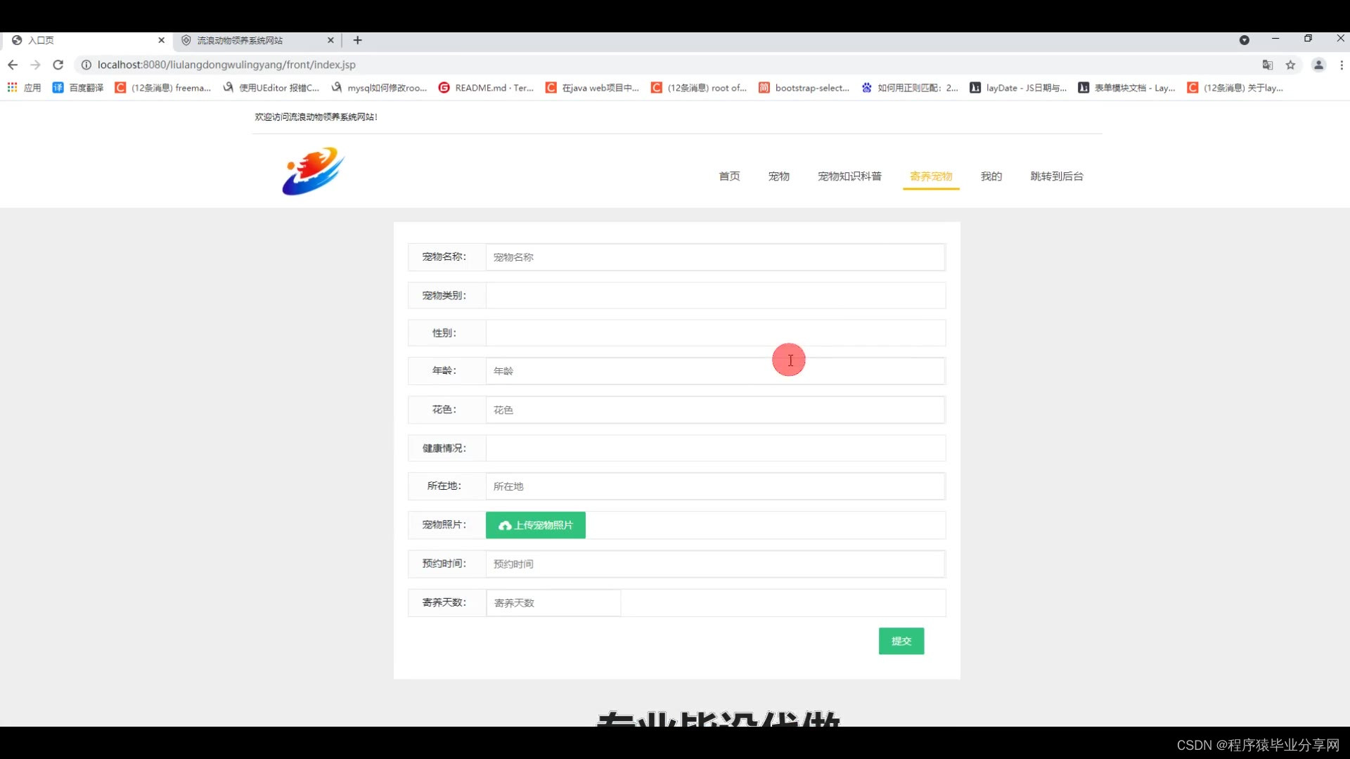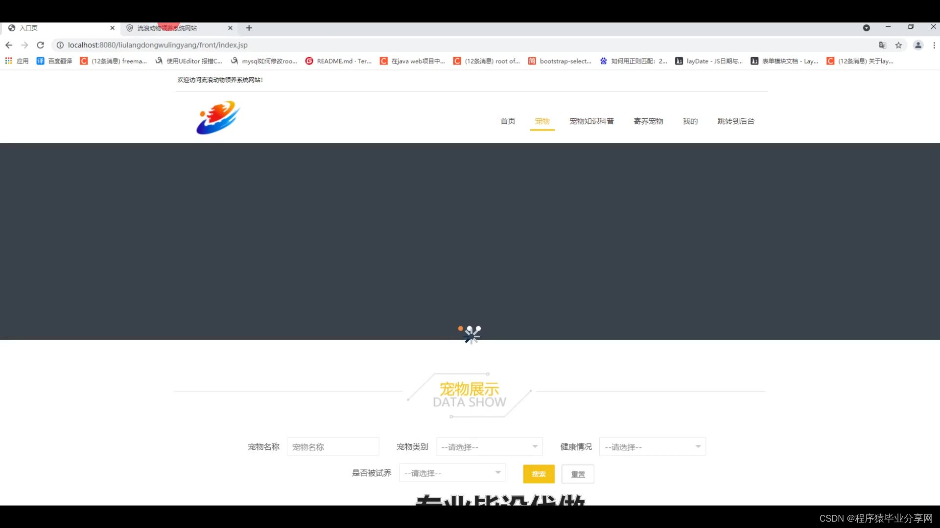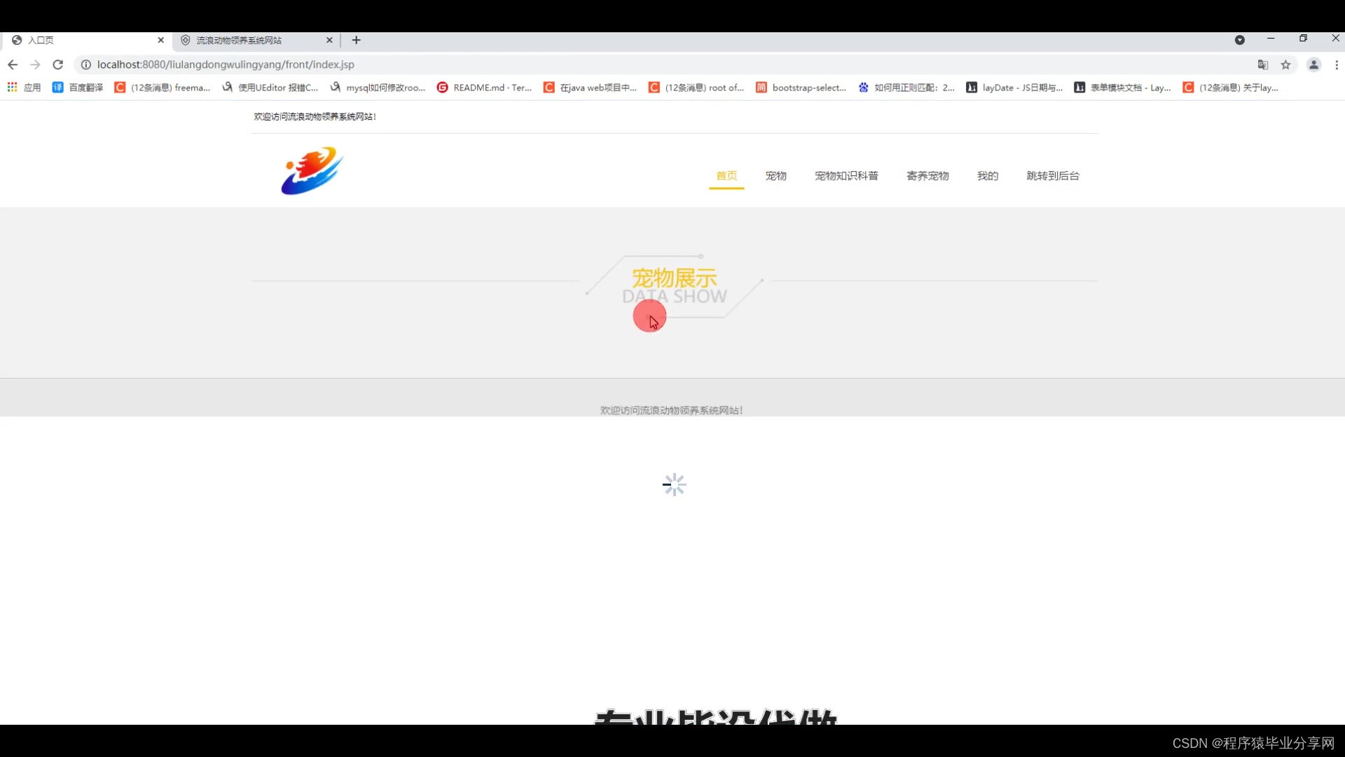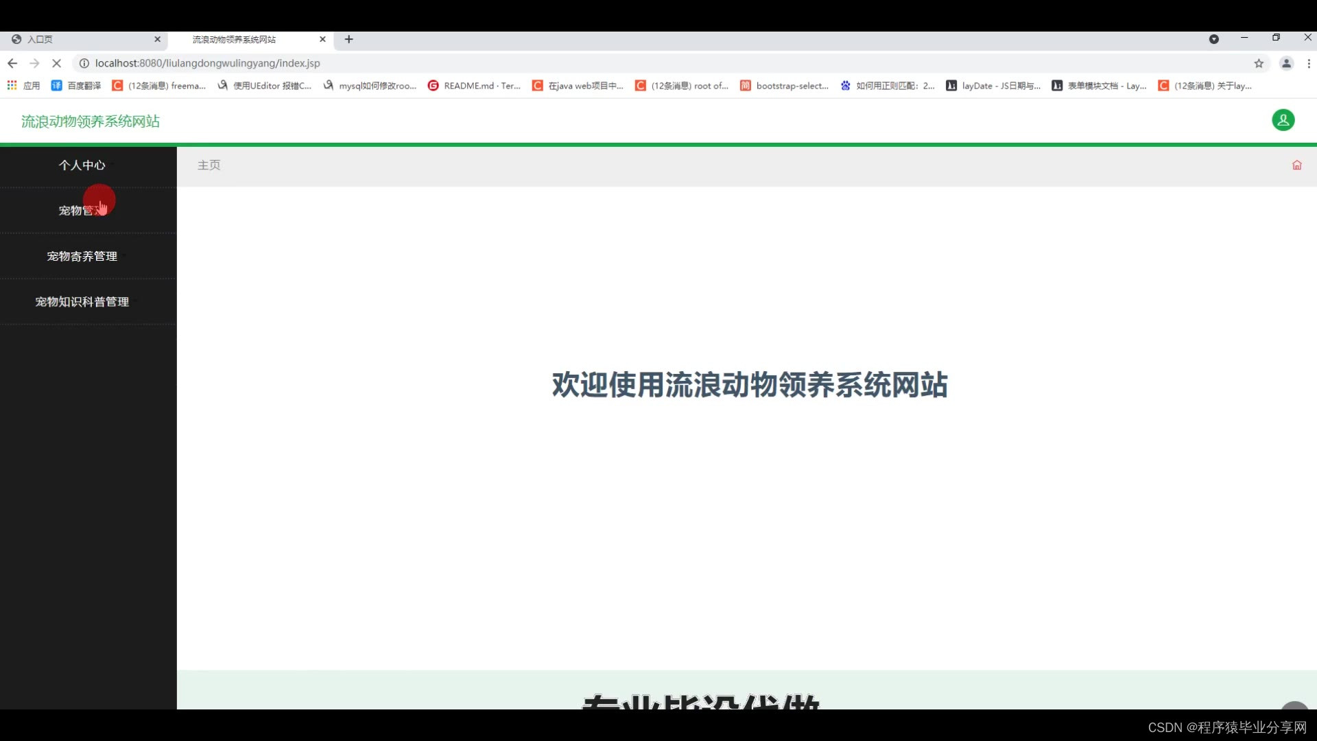 关键词:流浪动物领养系统网站;SSM框架;Mysql;自动化