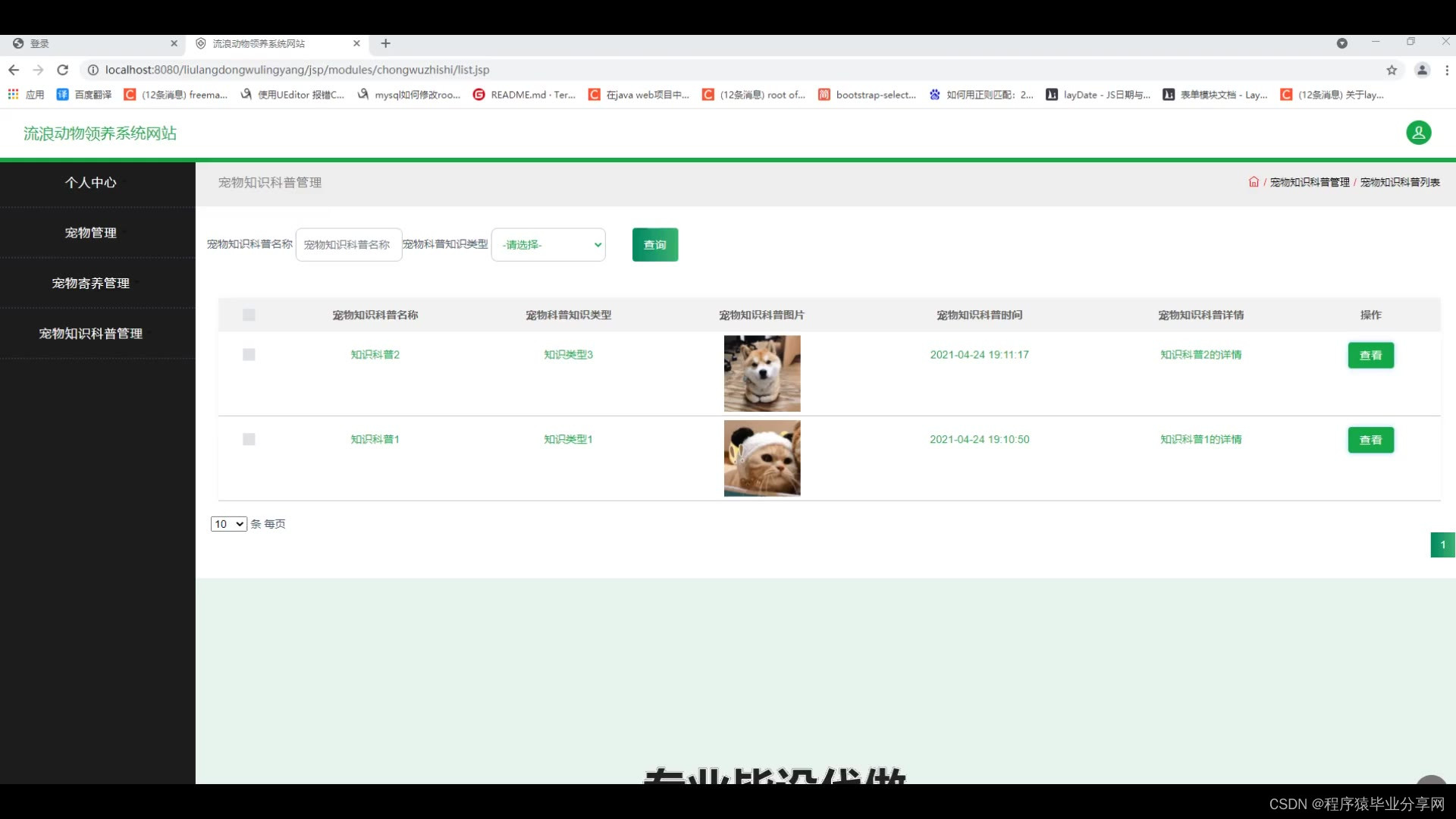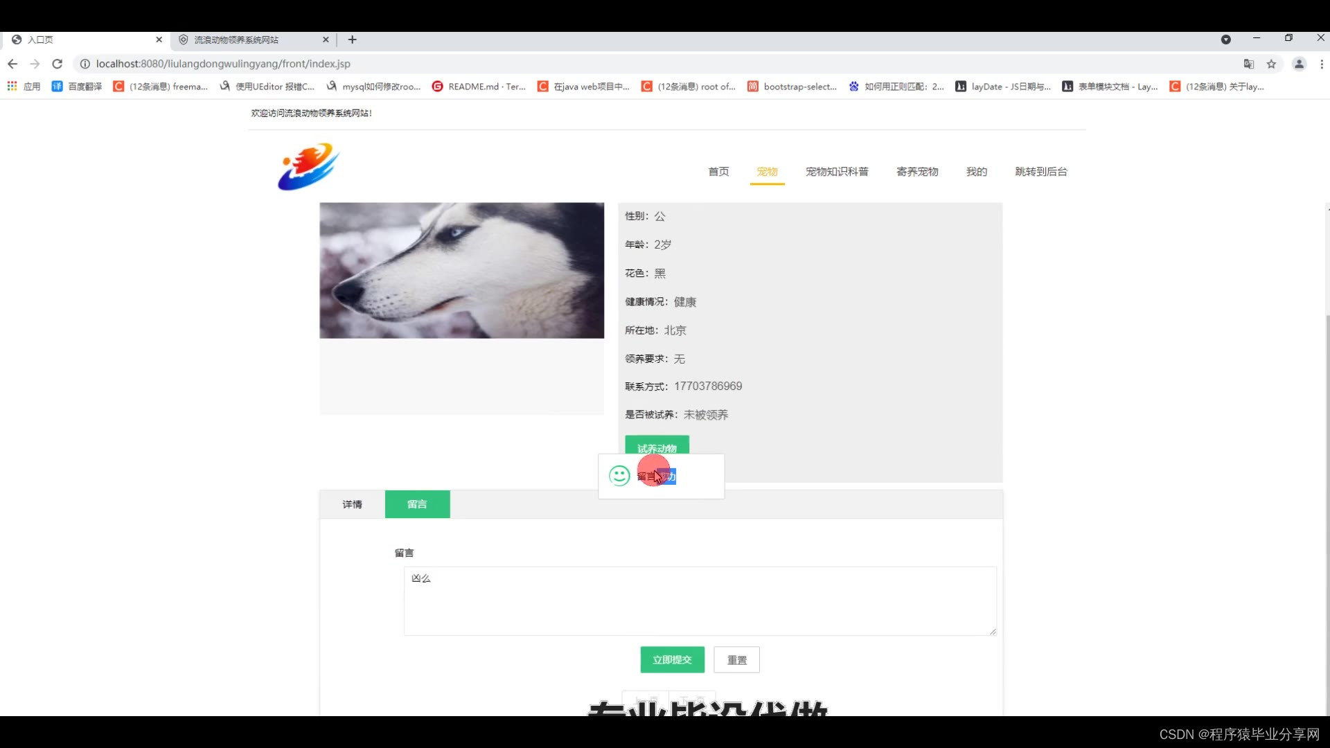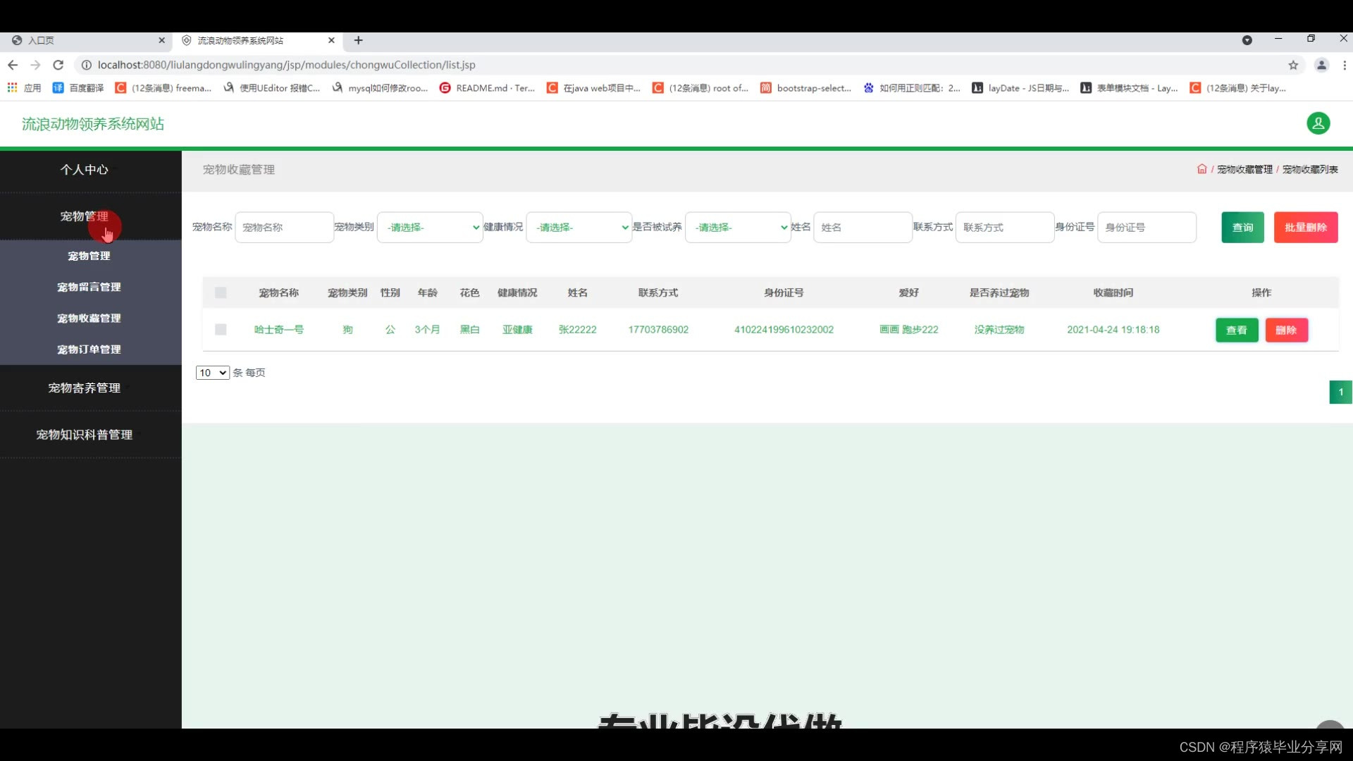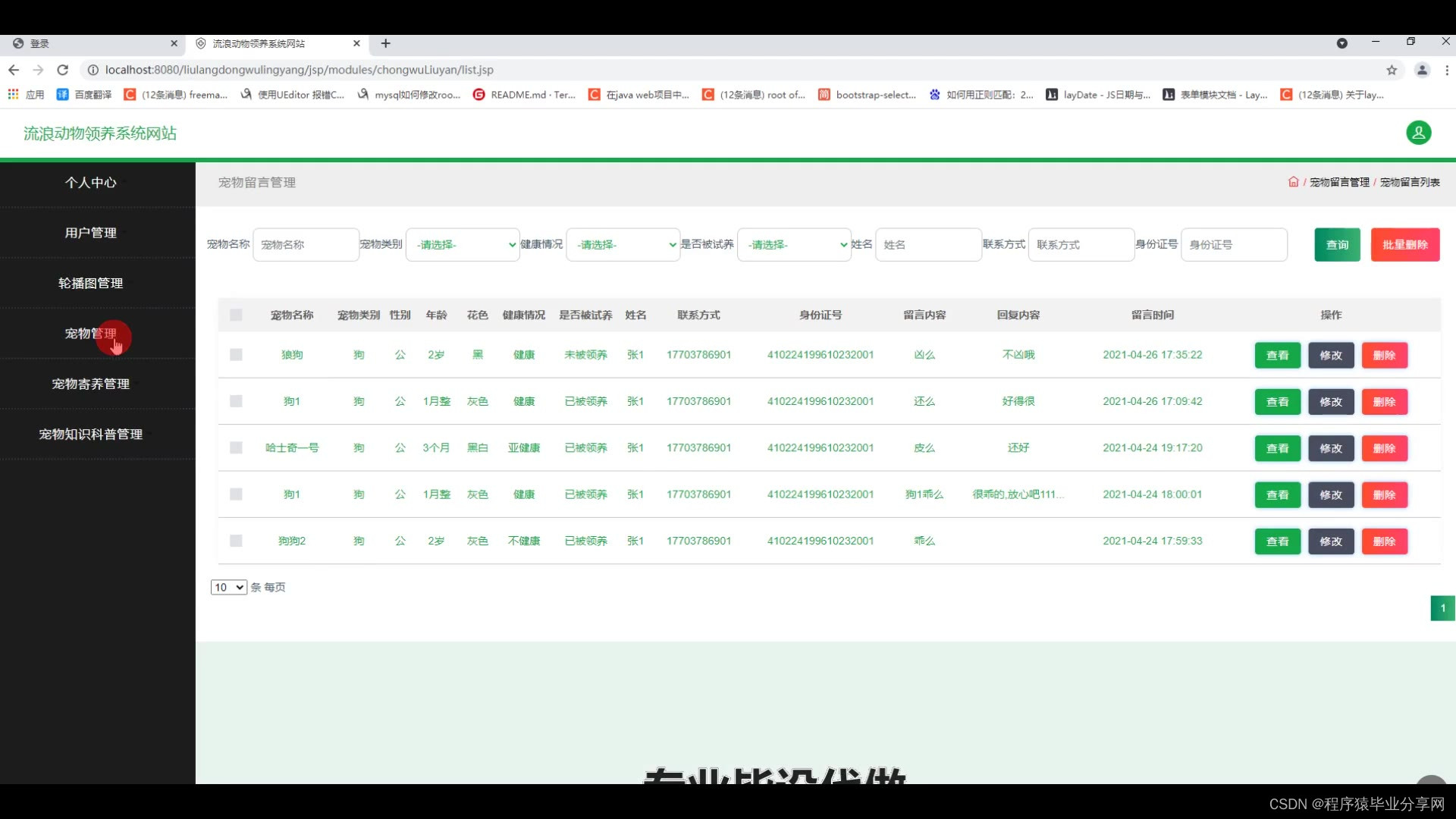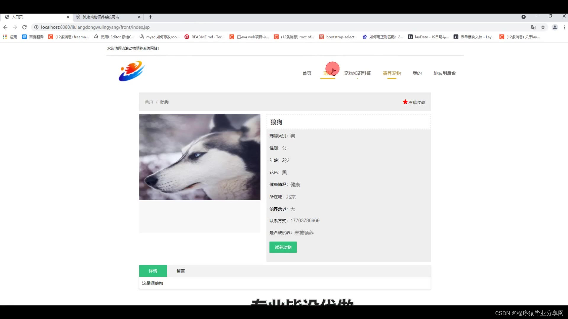 关键词:流浪动物领养系统网站;SSM框架;Mysql;自动化