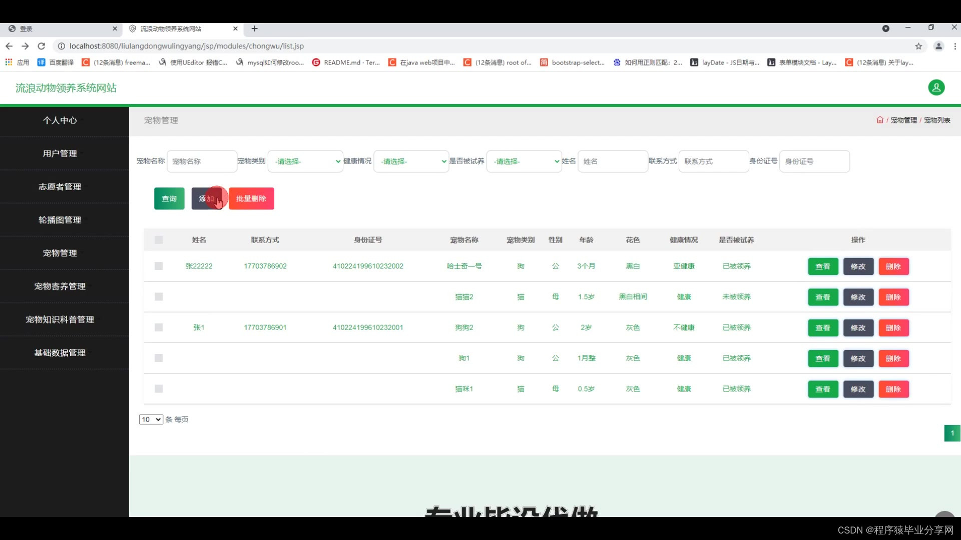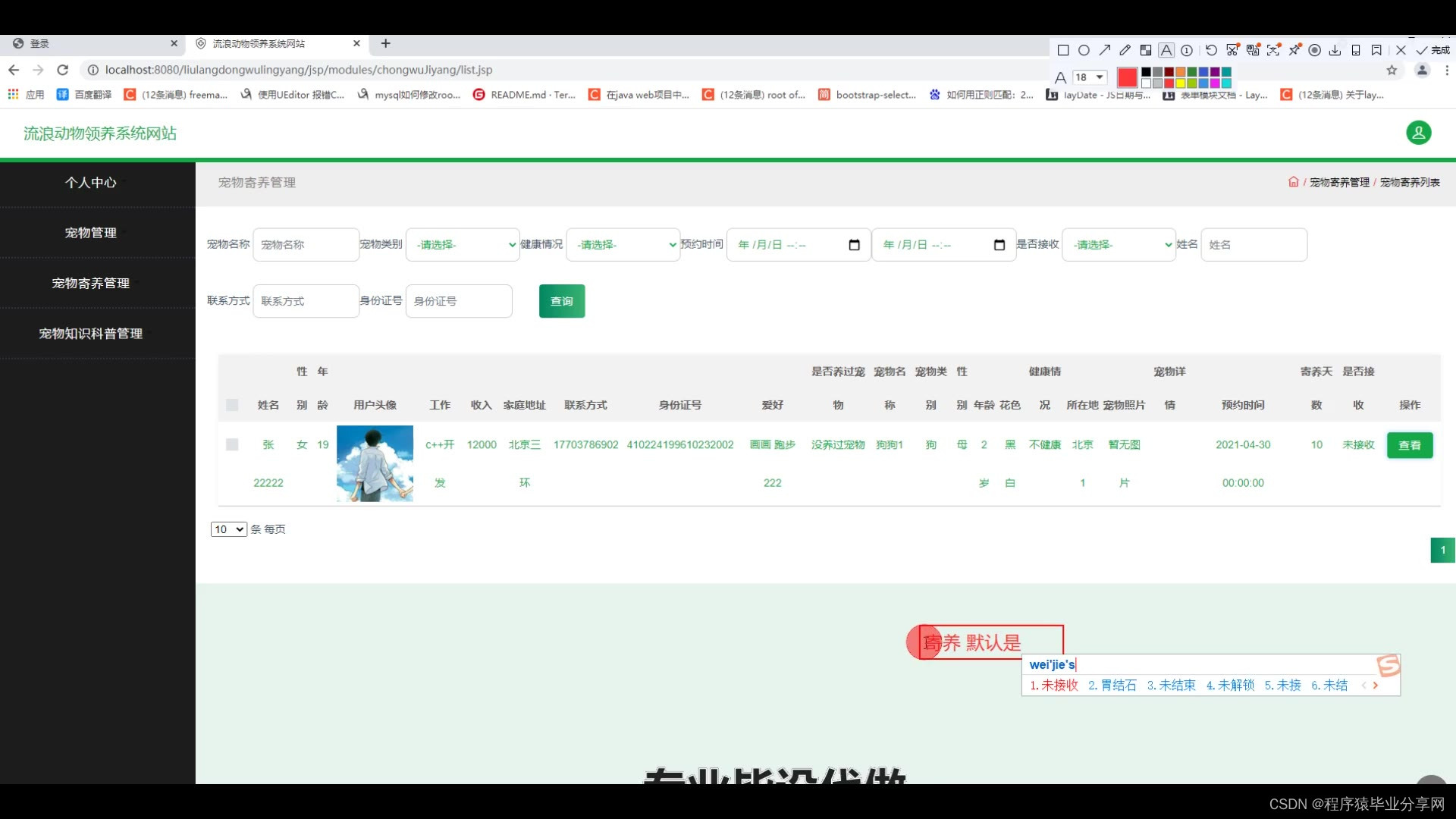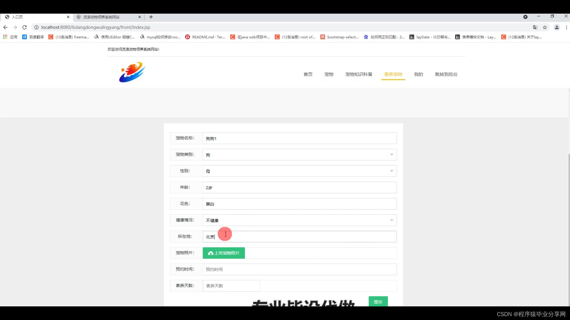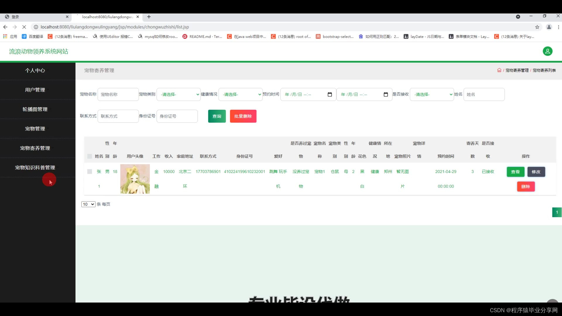 关键词:流浪动物领养系统网站;SSM框架;Mysql;自动化