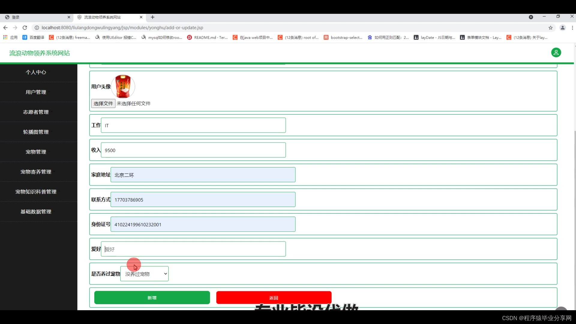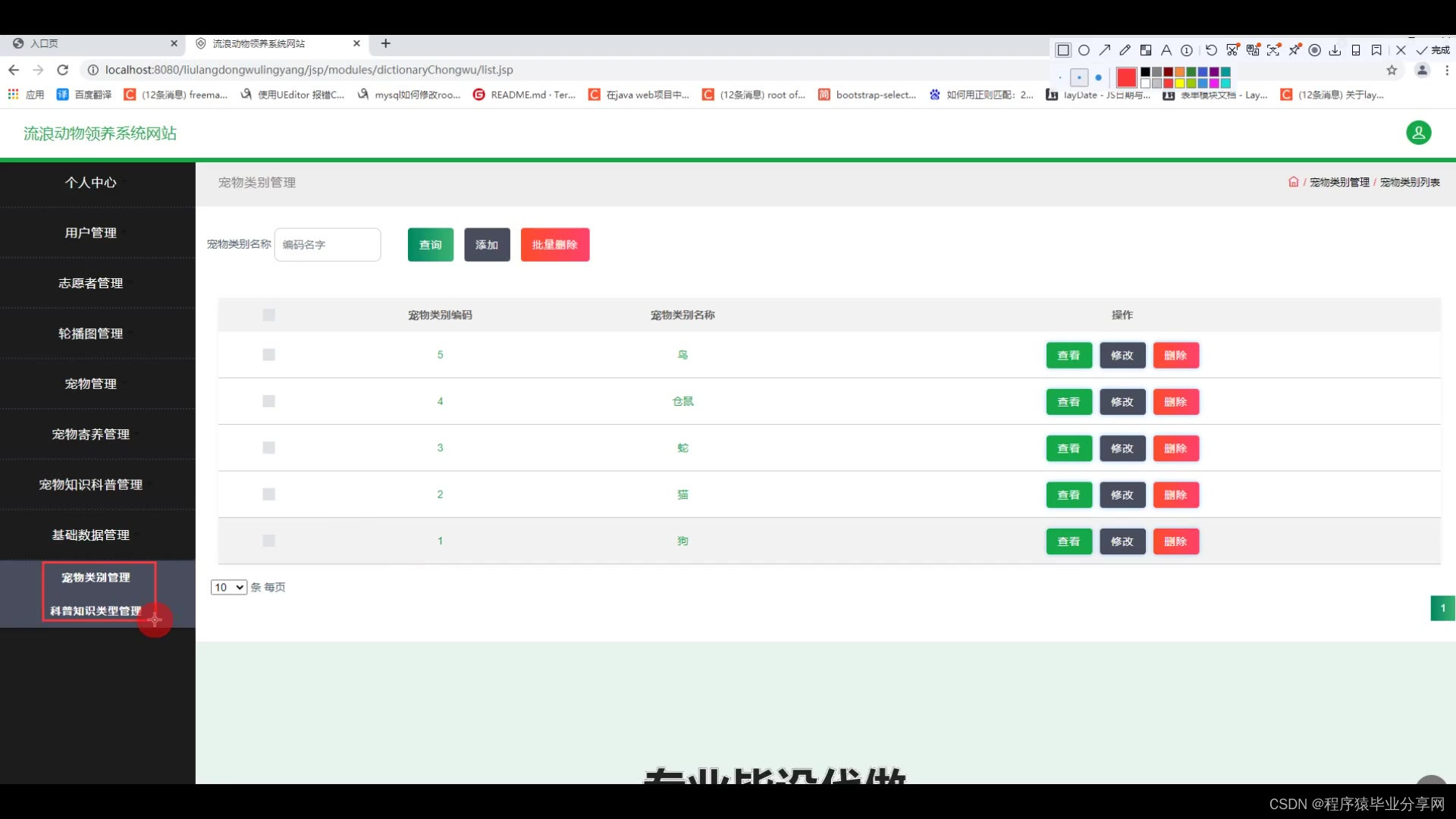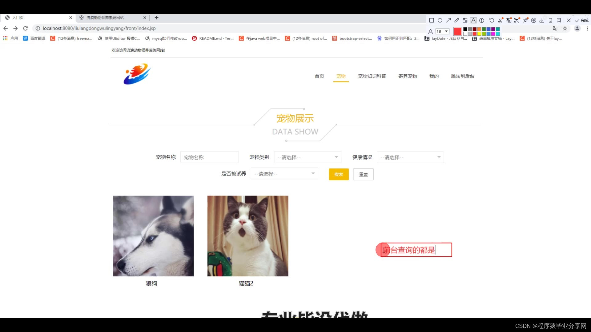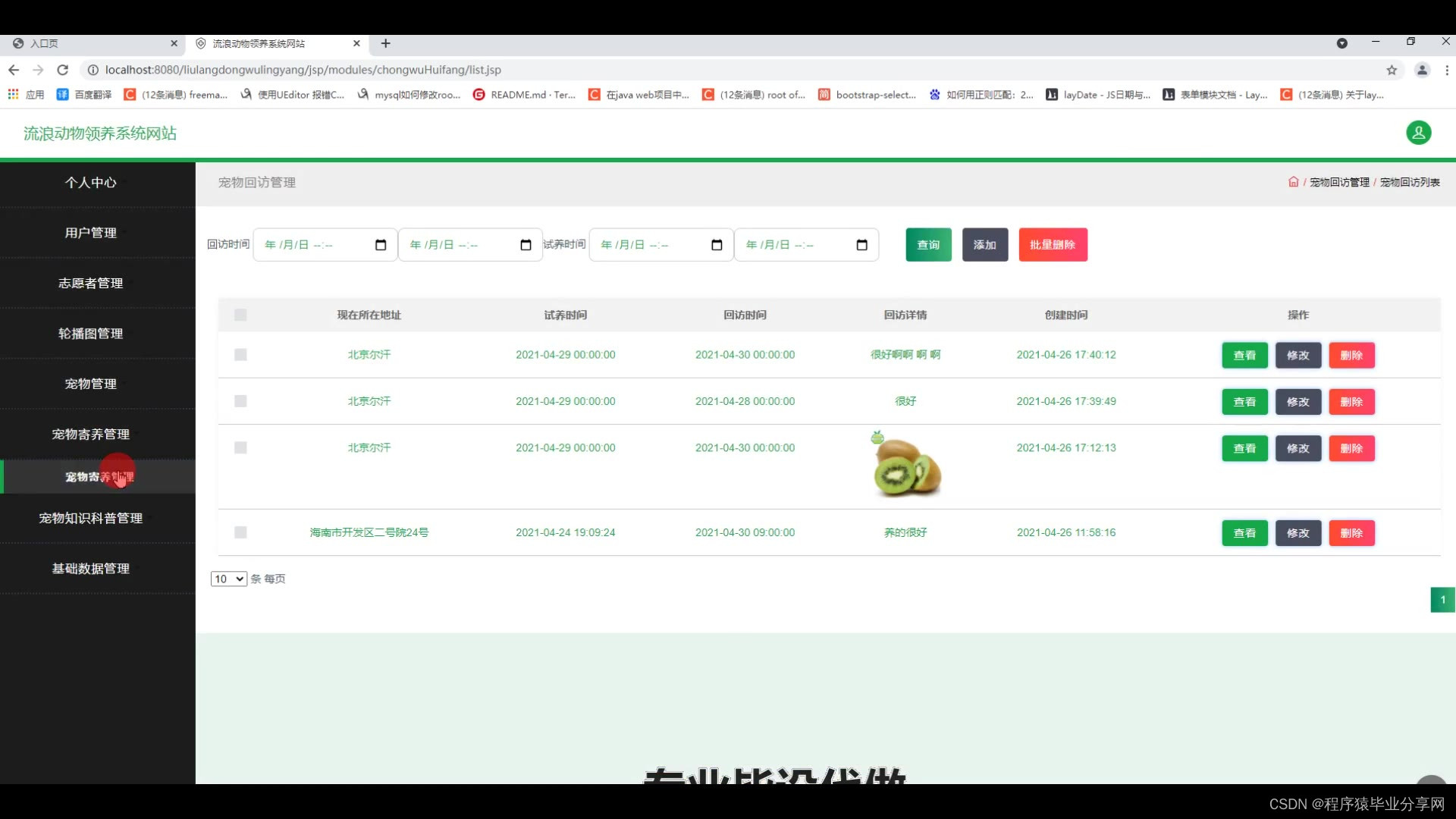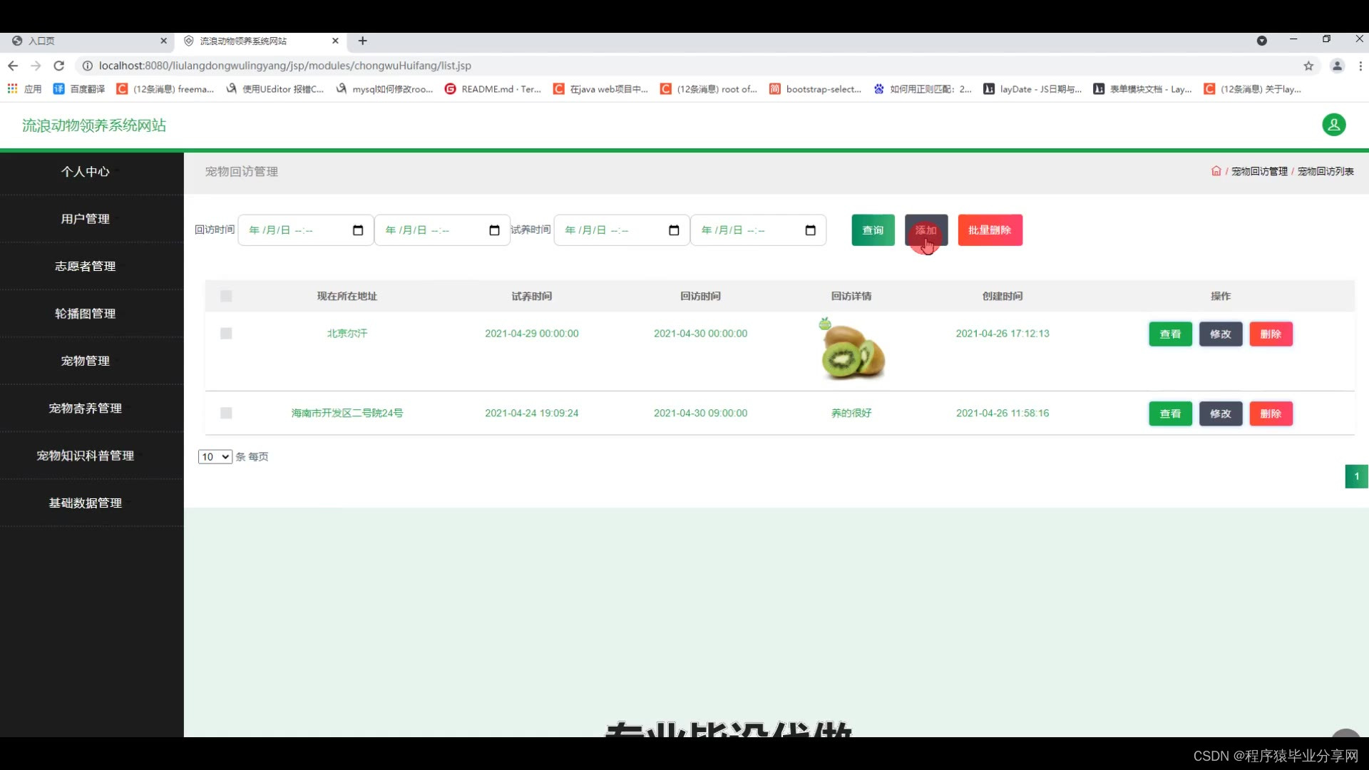 关键词:流浪动物领养系统网站;SSM框架;Mysql;自动化