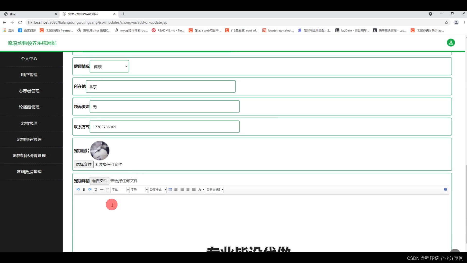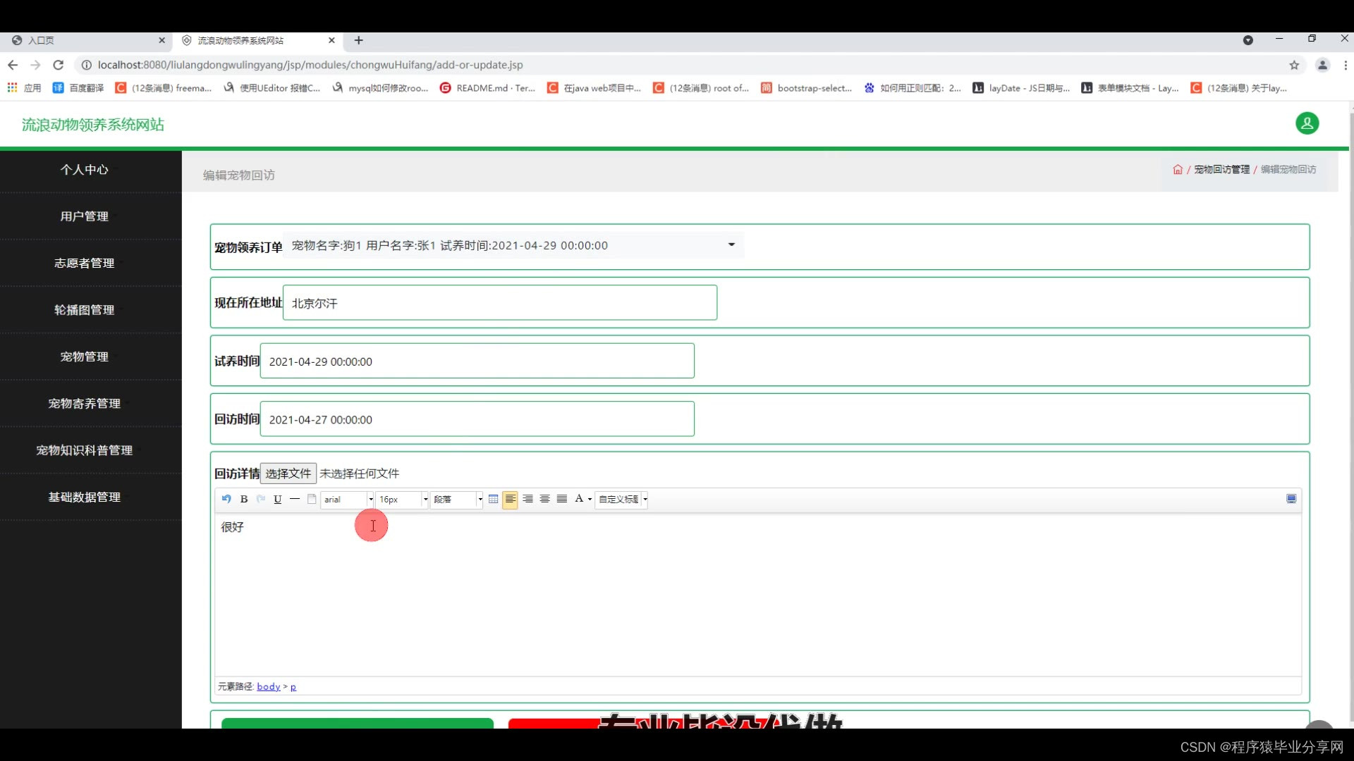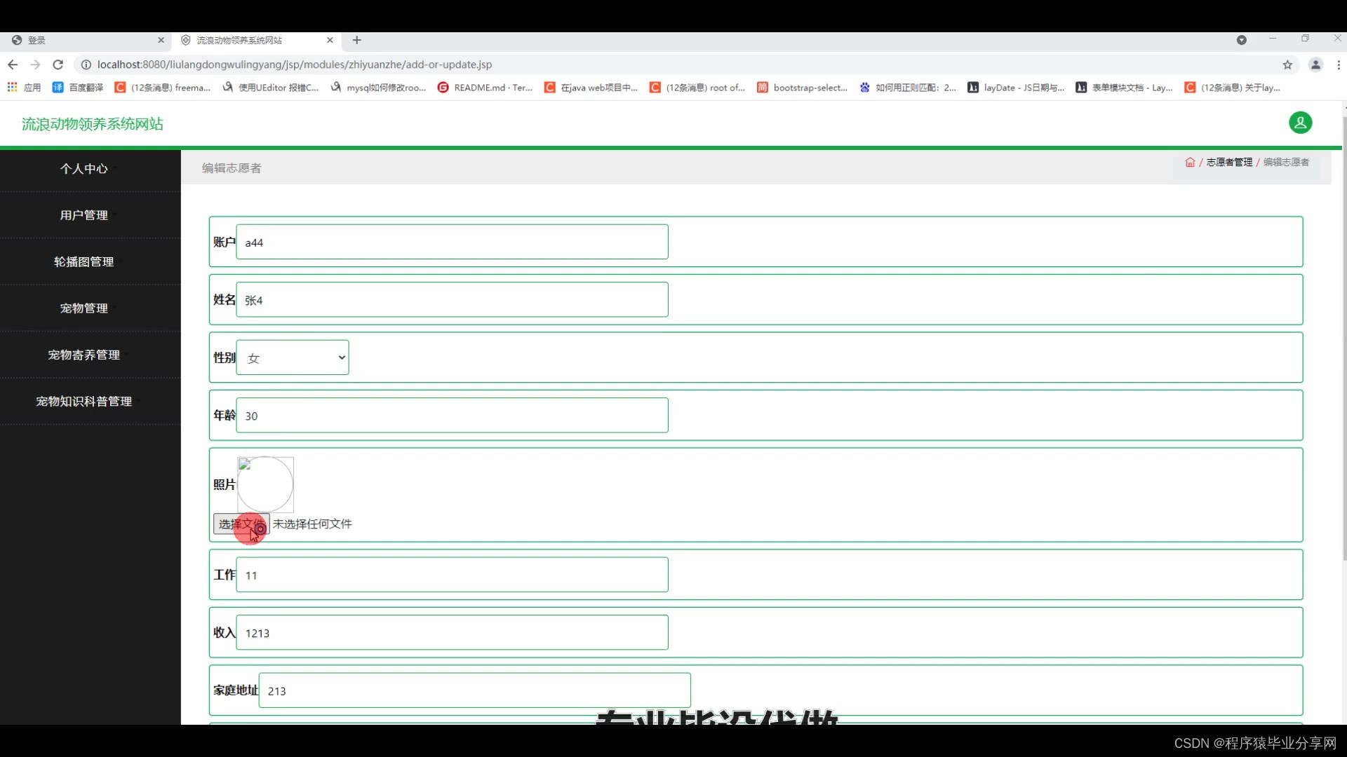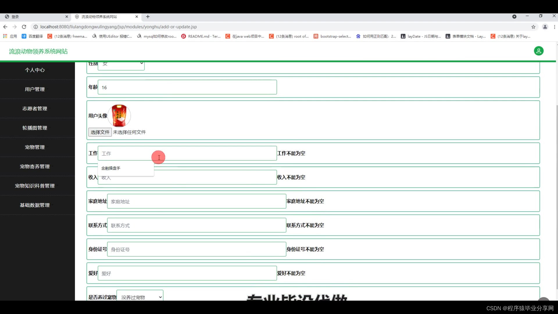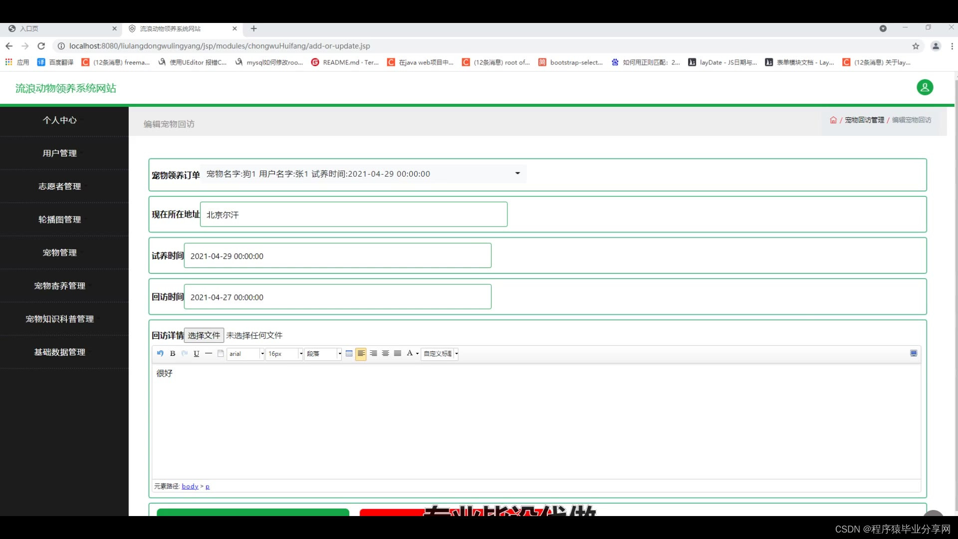 关键词:流浪动物领养系统网站;SSM框架;Mysql;自动化
