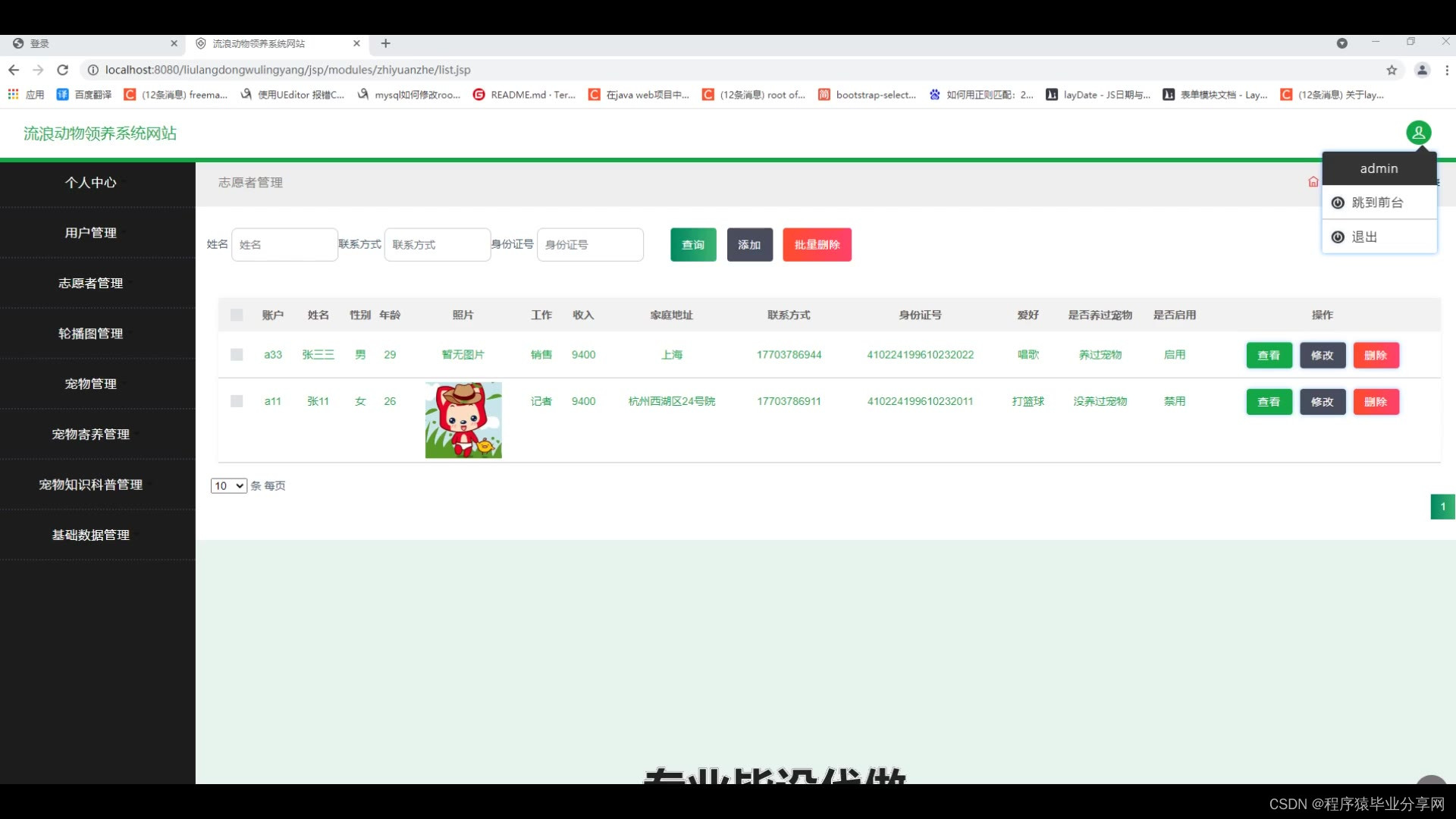 在信息化发展背景下,流浪动物领养系统网站应运而生。该系统利用SSM框架、Java语言和Mysql数据库开发,实现动物基础数据、志愿者、用户等管理功能。界面简洁美观,功能布局合理,还提供数据安全解决方案,能提高管理效率,实现数据自动化处理。
