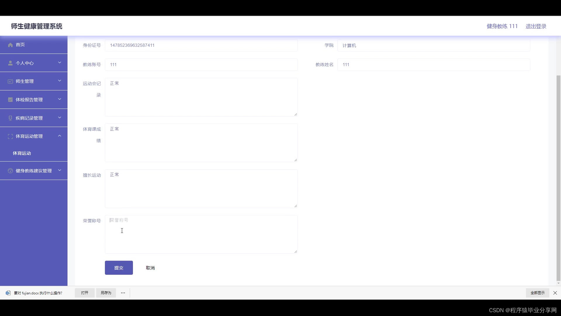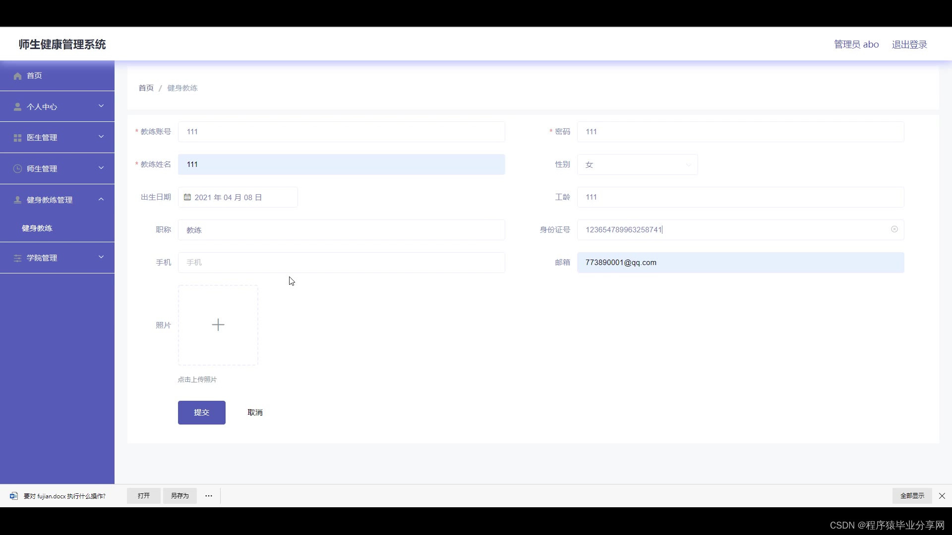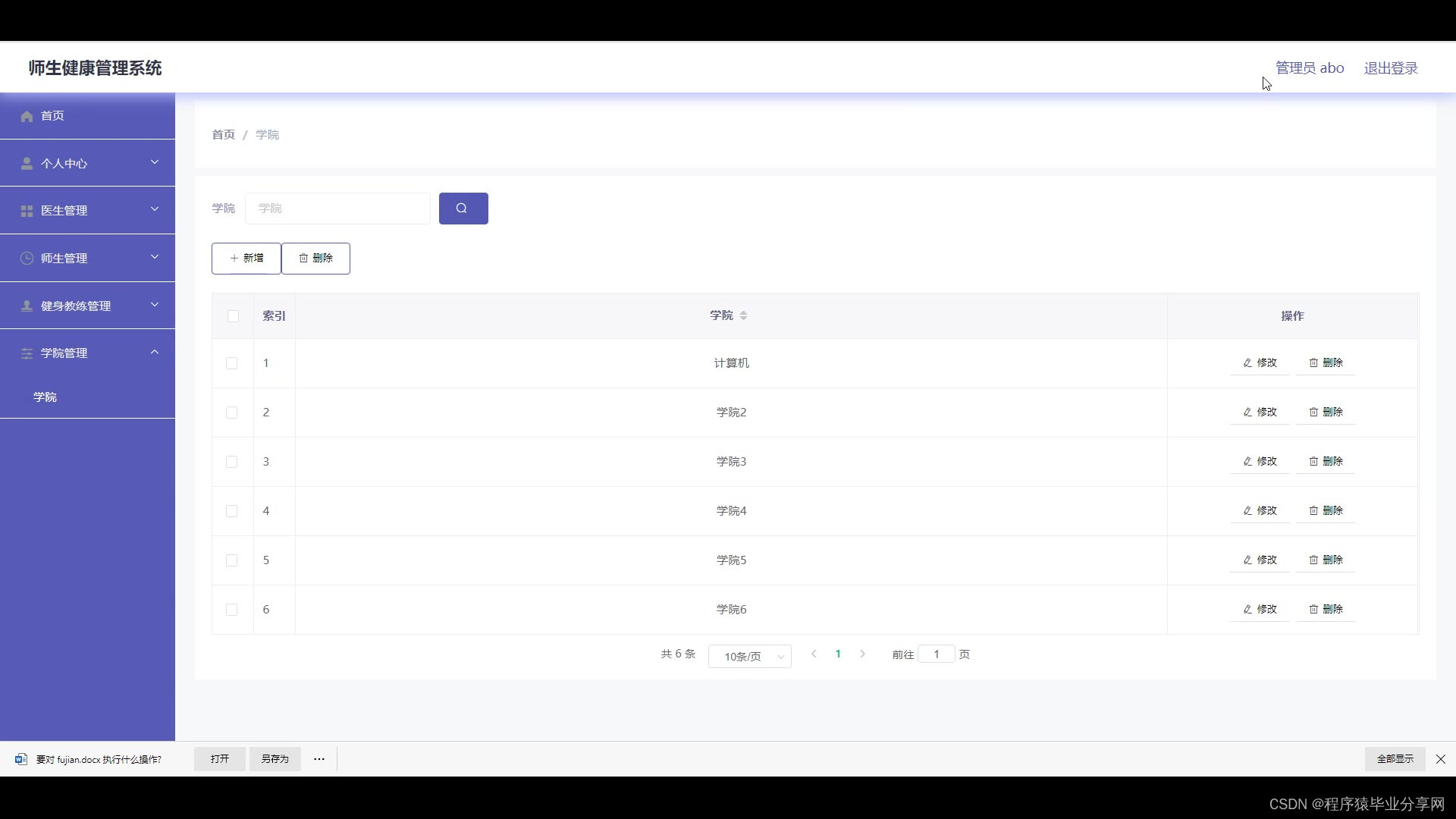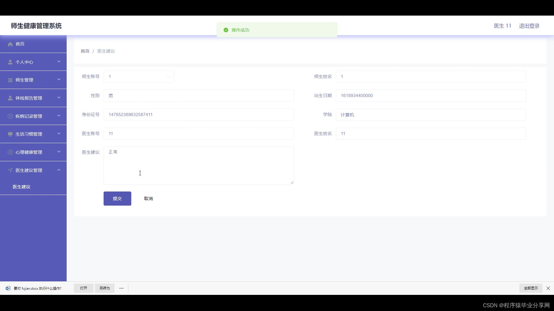 研究的背景:21世纪,早已进入互联网信息快速发展的时代,互联网的普及给人们带来了许多便利。像有些高校就有自己的师生健康管理系统,但是对我们楚师院来说,通过调查发现,由于我们的师生在健康这方面不是很重视,所以在师生健康管理系统这一发面的发展不是很完善,如果我们能有这么一个健康管理系统,会给我们的师生带来很大的方便,可以线上了解师生的健康情况,为用户提供了服务。