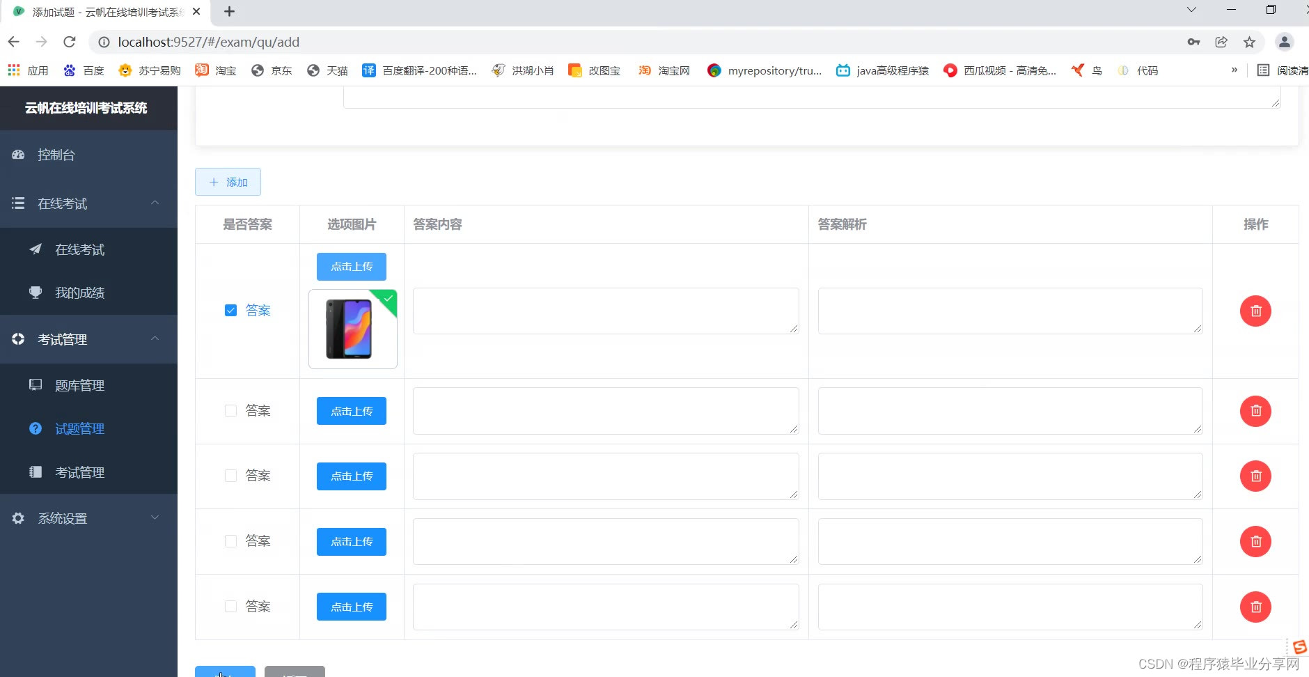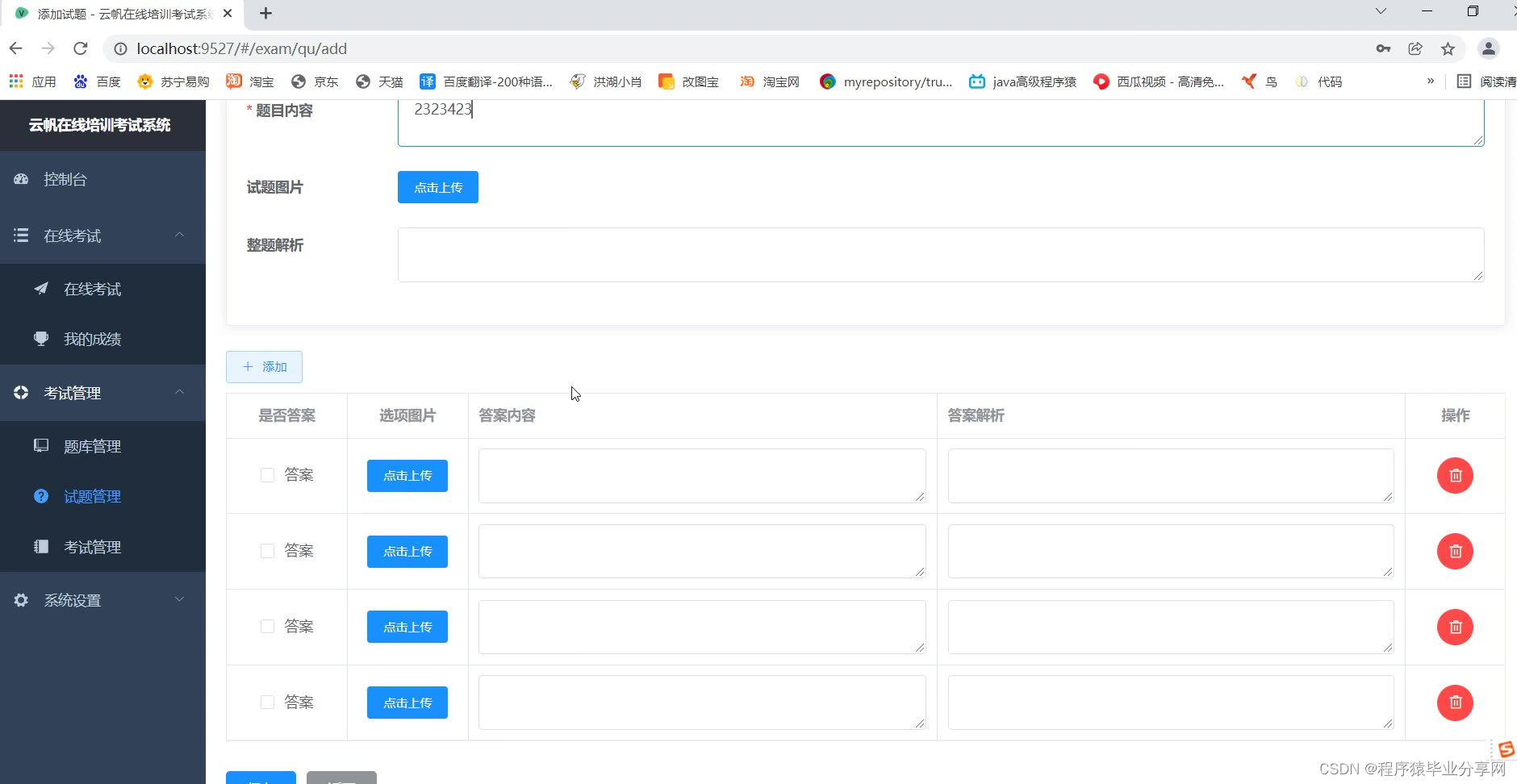支持题型:单选题、多选题、判断题。
