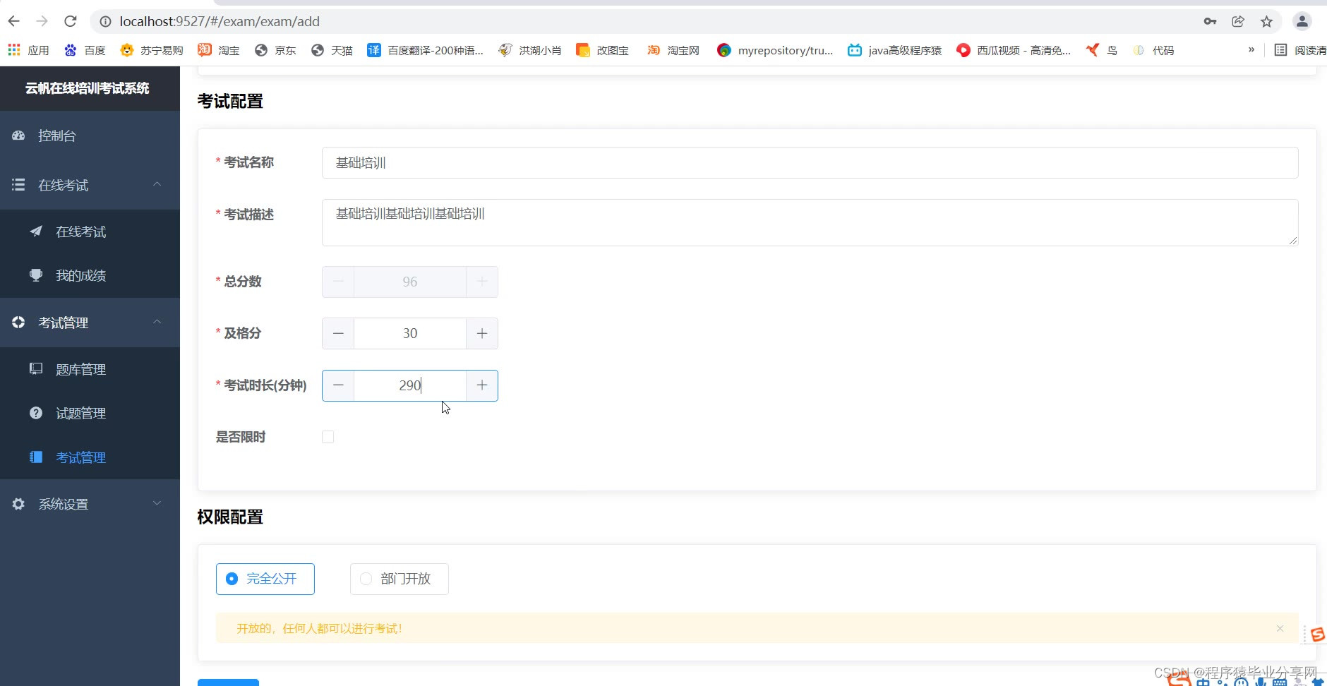 ## 定员考试:考试权限定义
