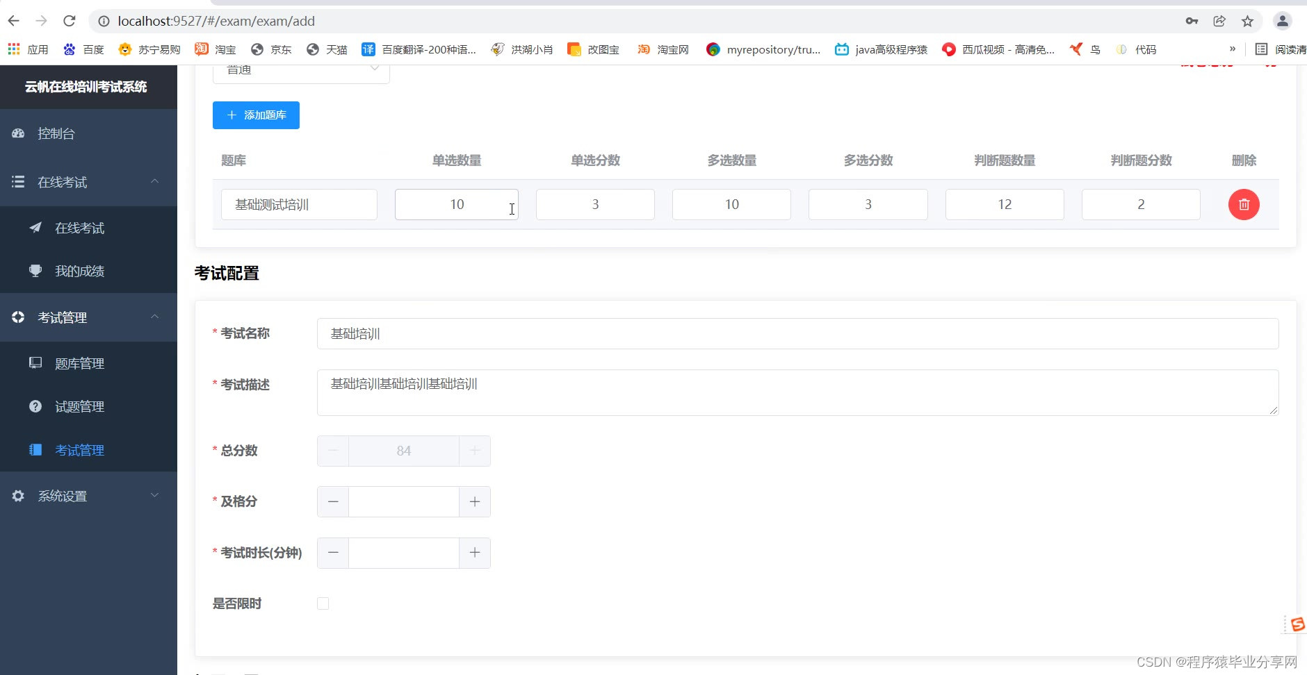【456】基于Springboot vue前后端分离的在线培训考试系统