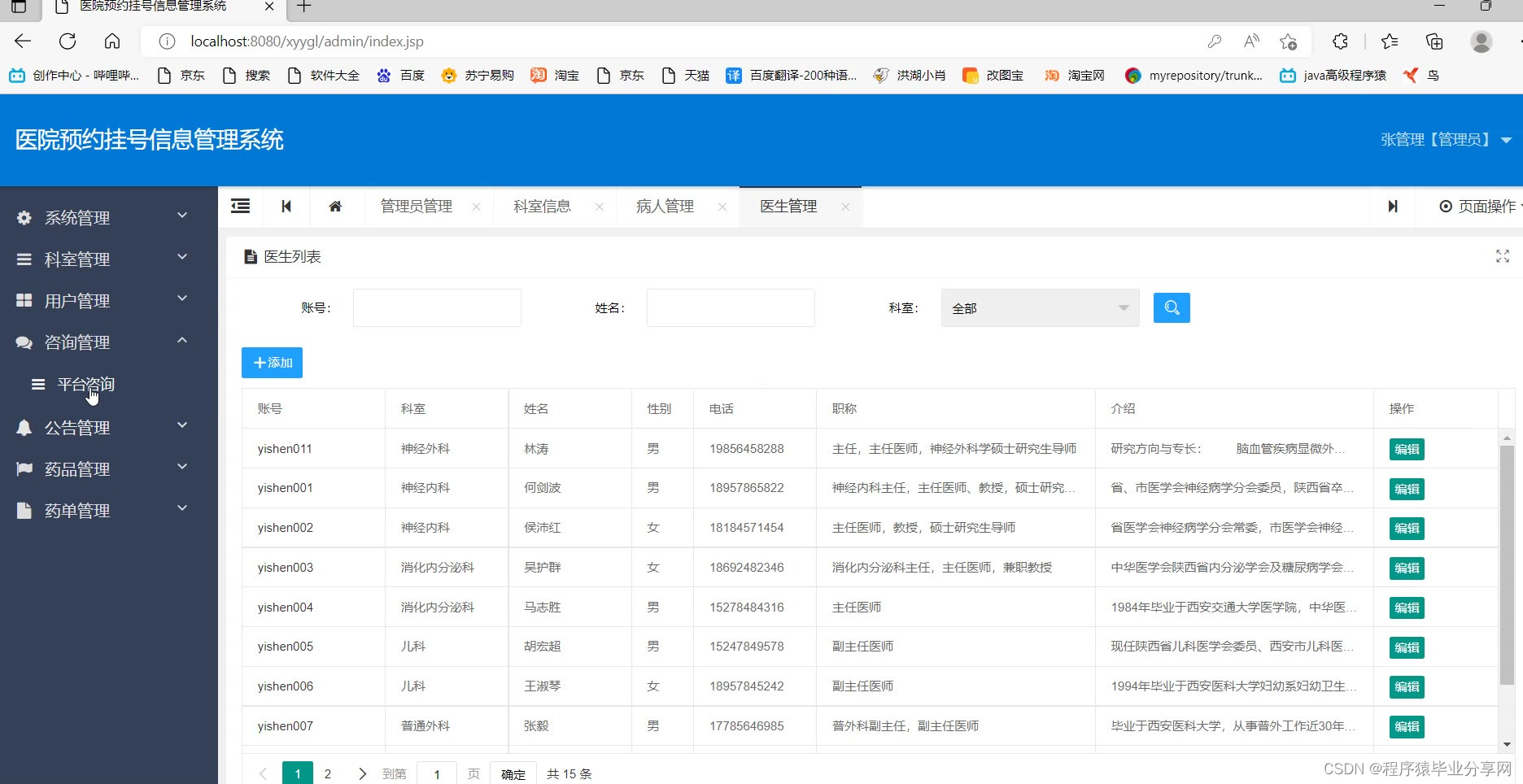 随着国家骨干高等院校和数字化社会的建设,依托现代和社会信息资源,建立了一个大型医院预约挂号系统。本系统目前在 已安全开发完成并且在运行中。今后还要进一步根 据药品实际业务需要,完善系统功能。