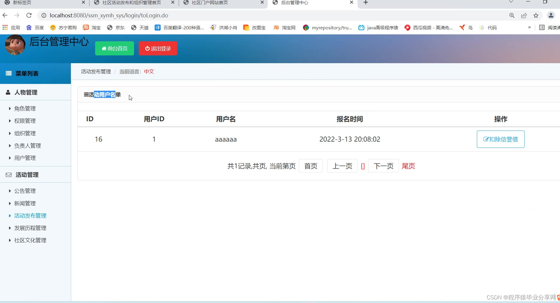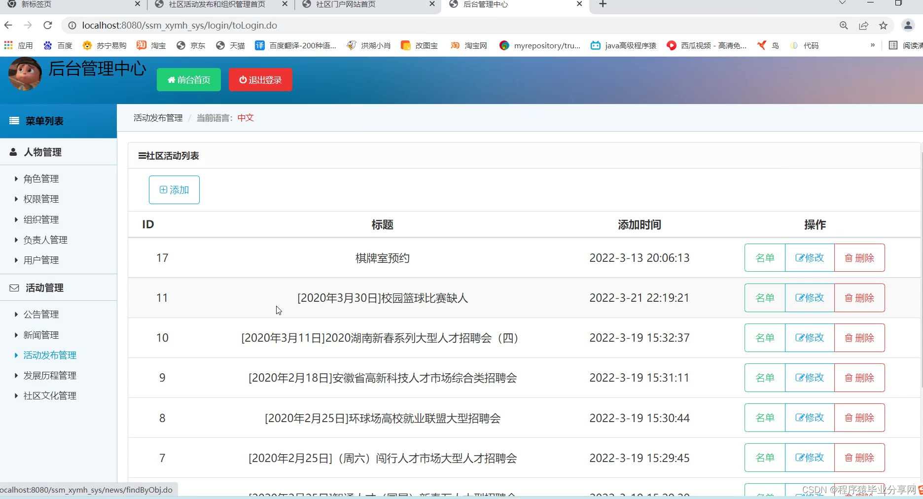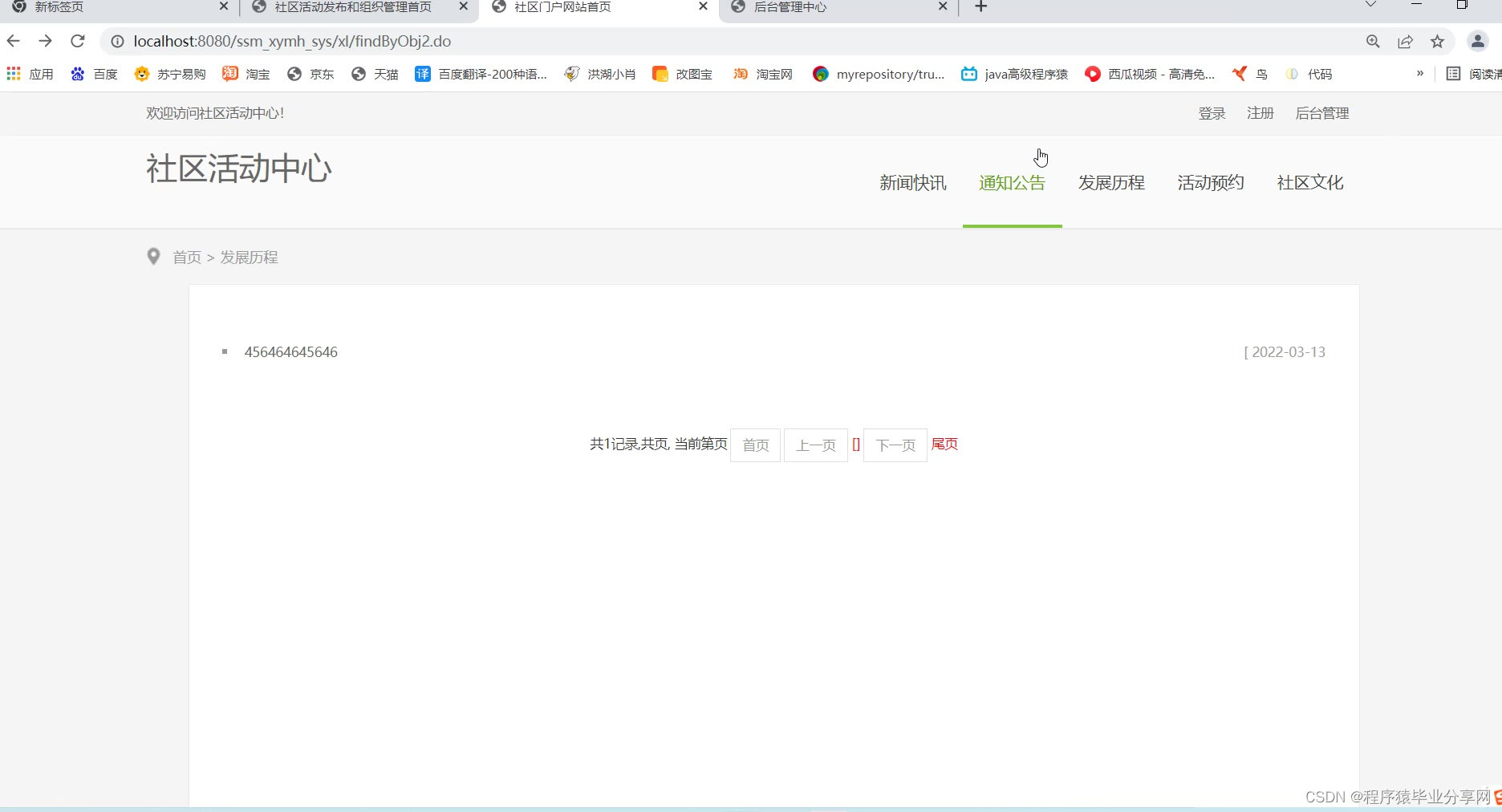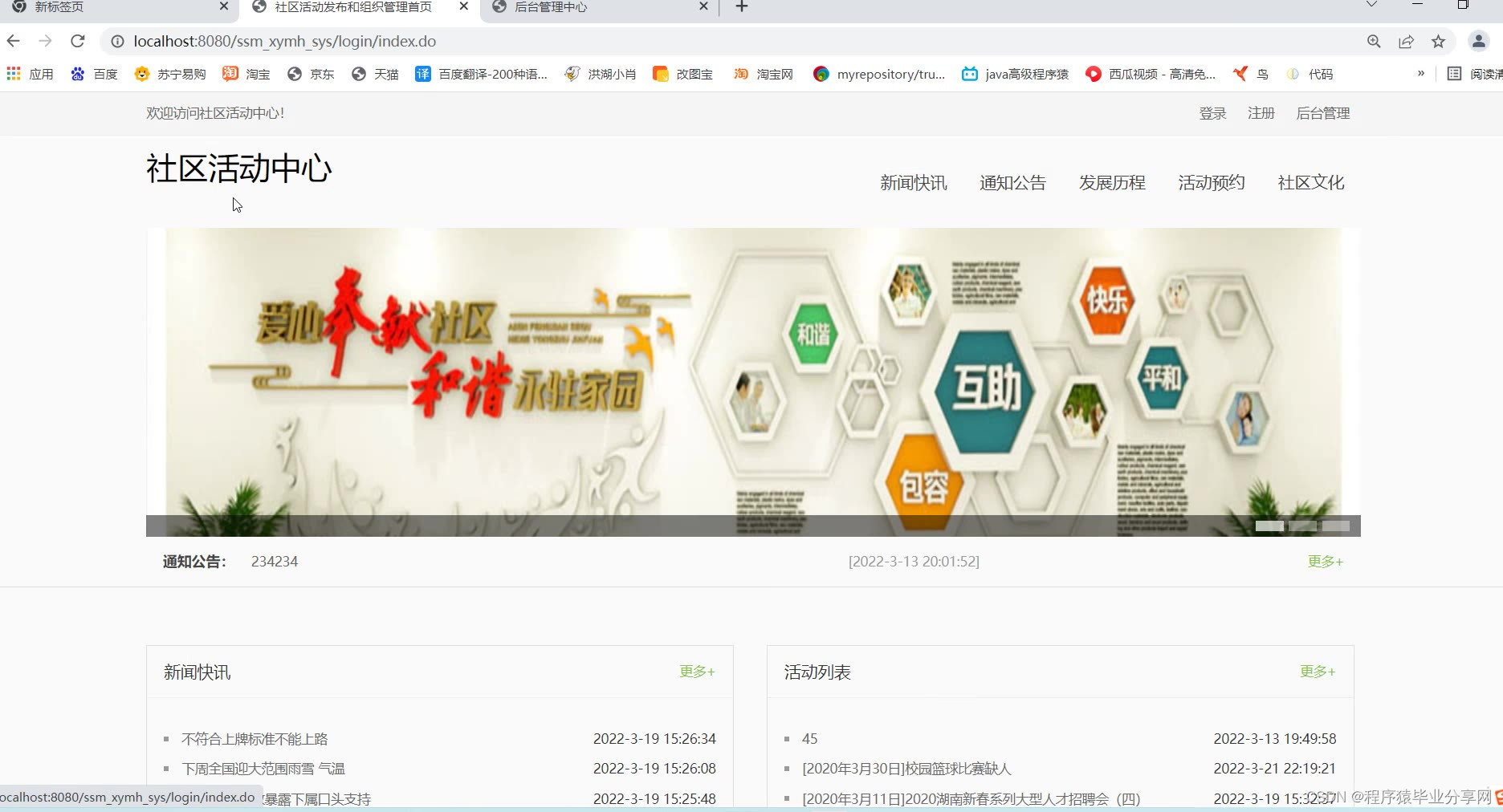 【567】基于ssm jsp社区活动中心管理系统源码和技术文档