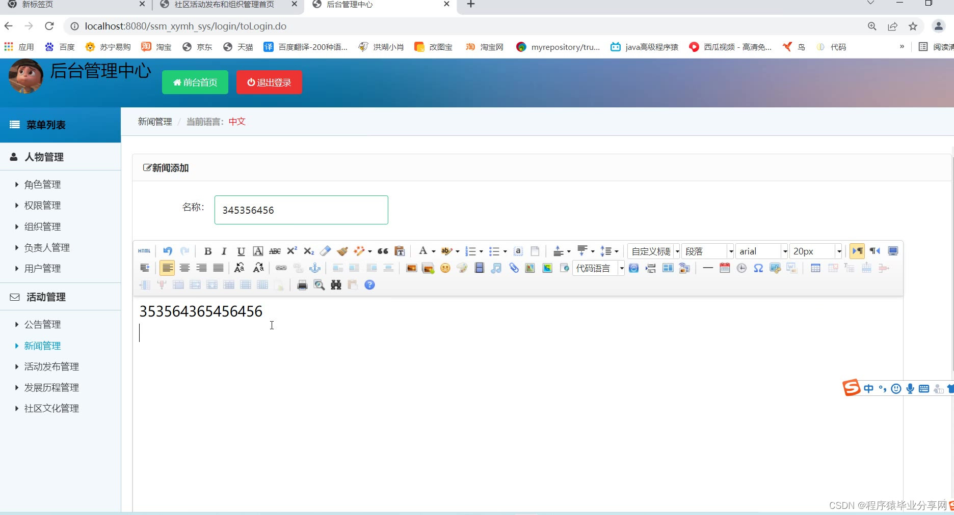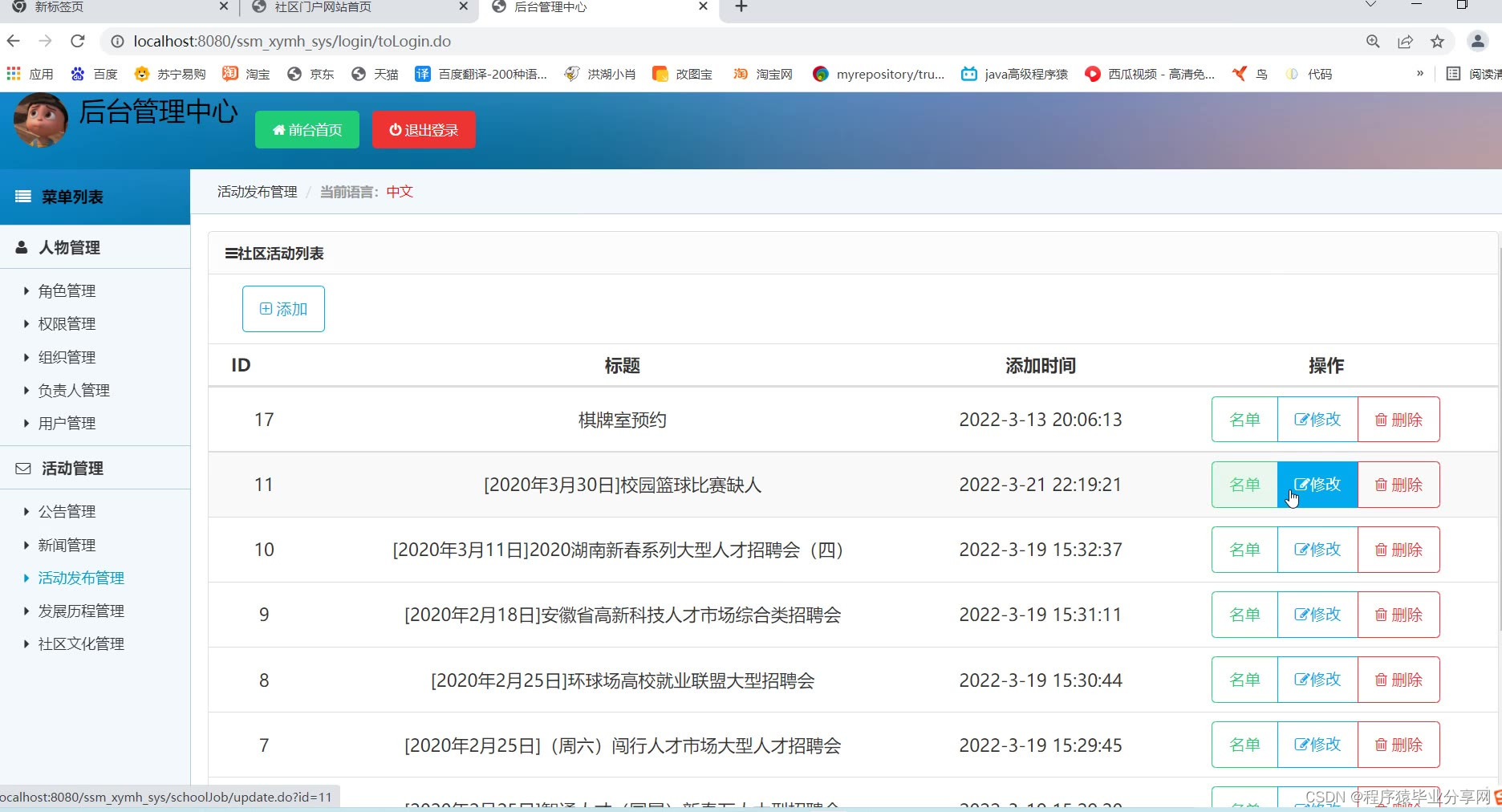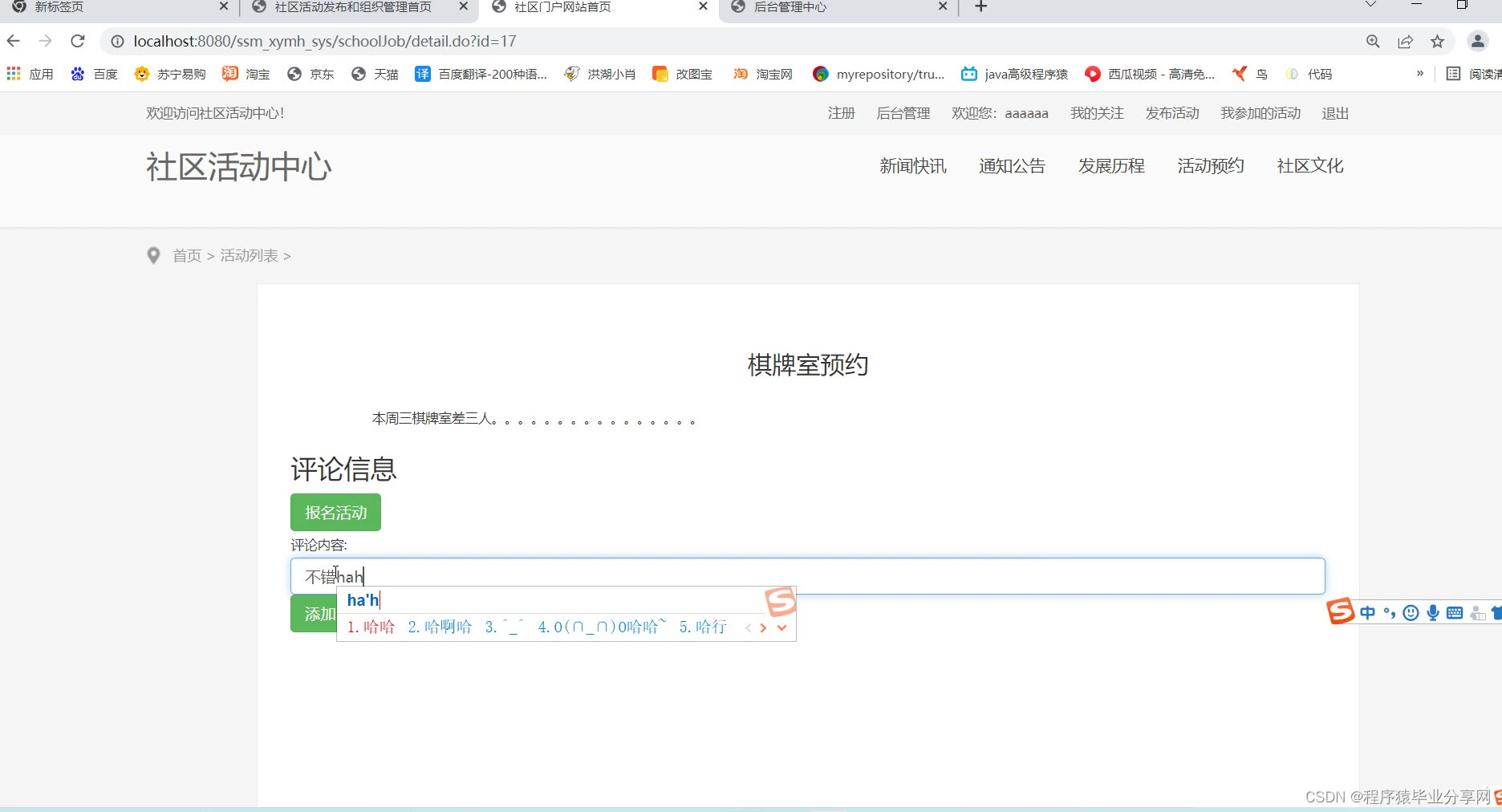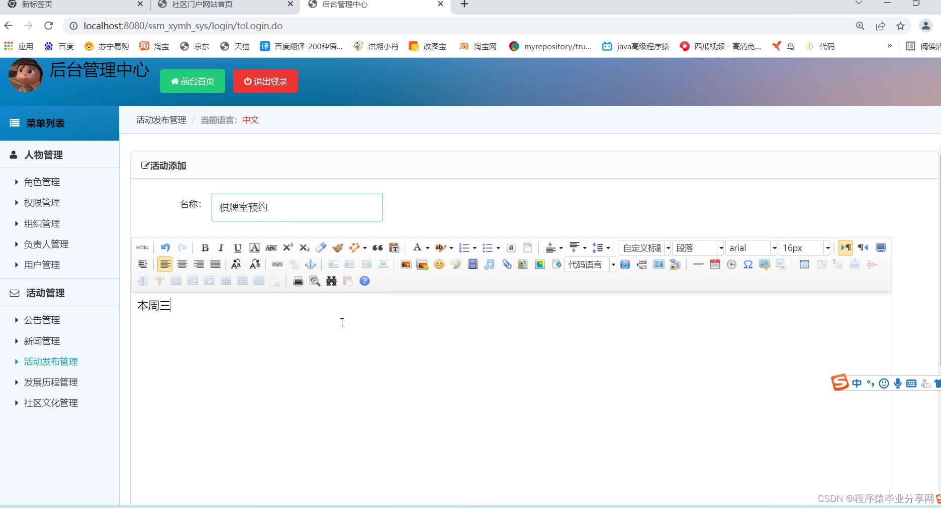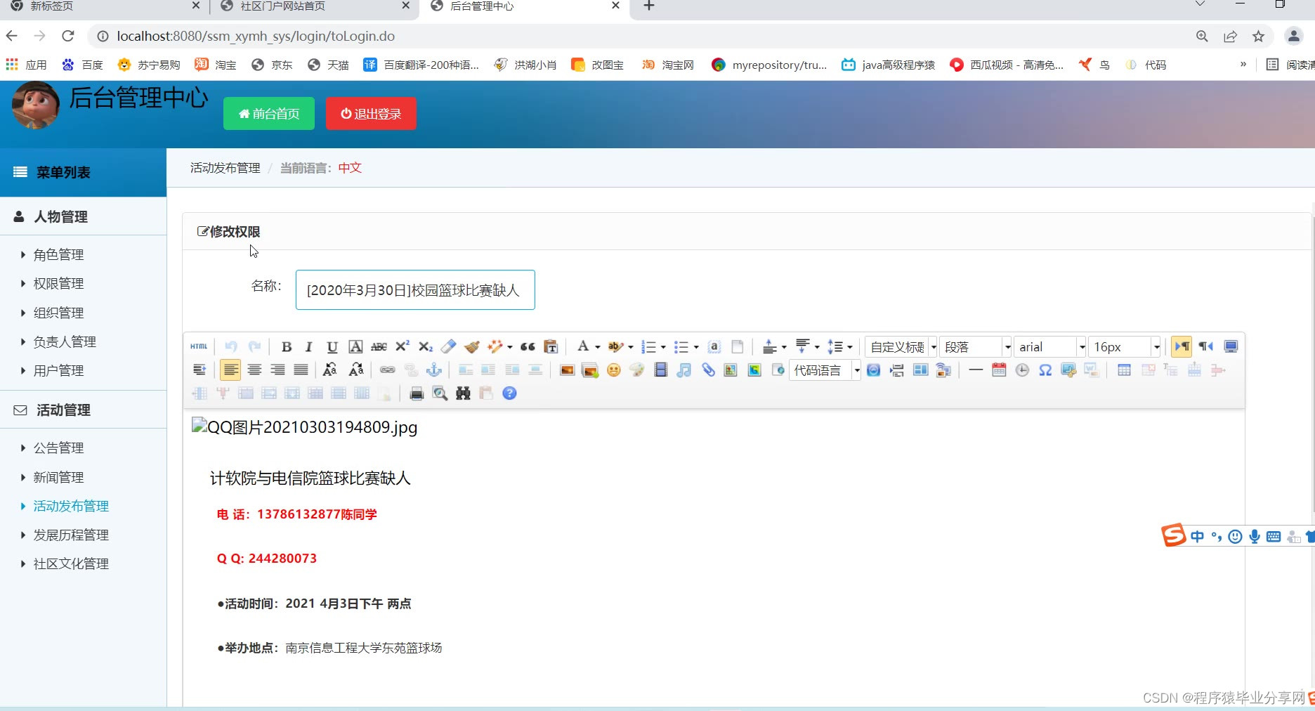 【567】基于ssm jsp社区活动中心管理系统源码和技术文档