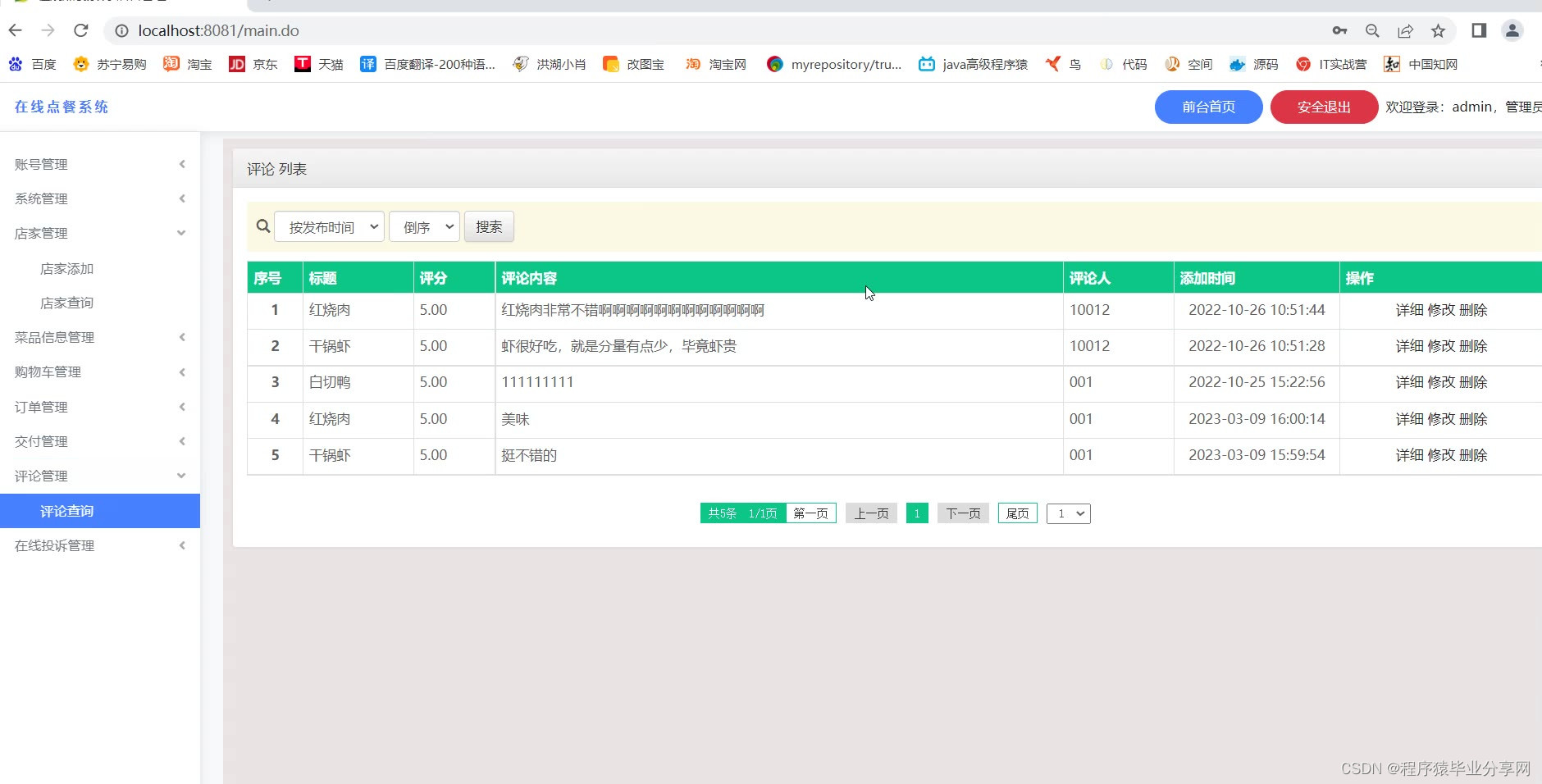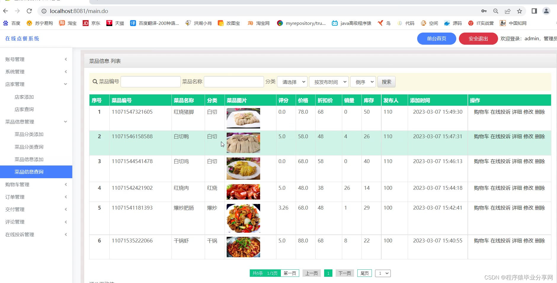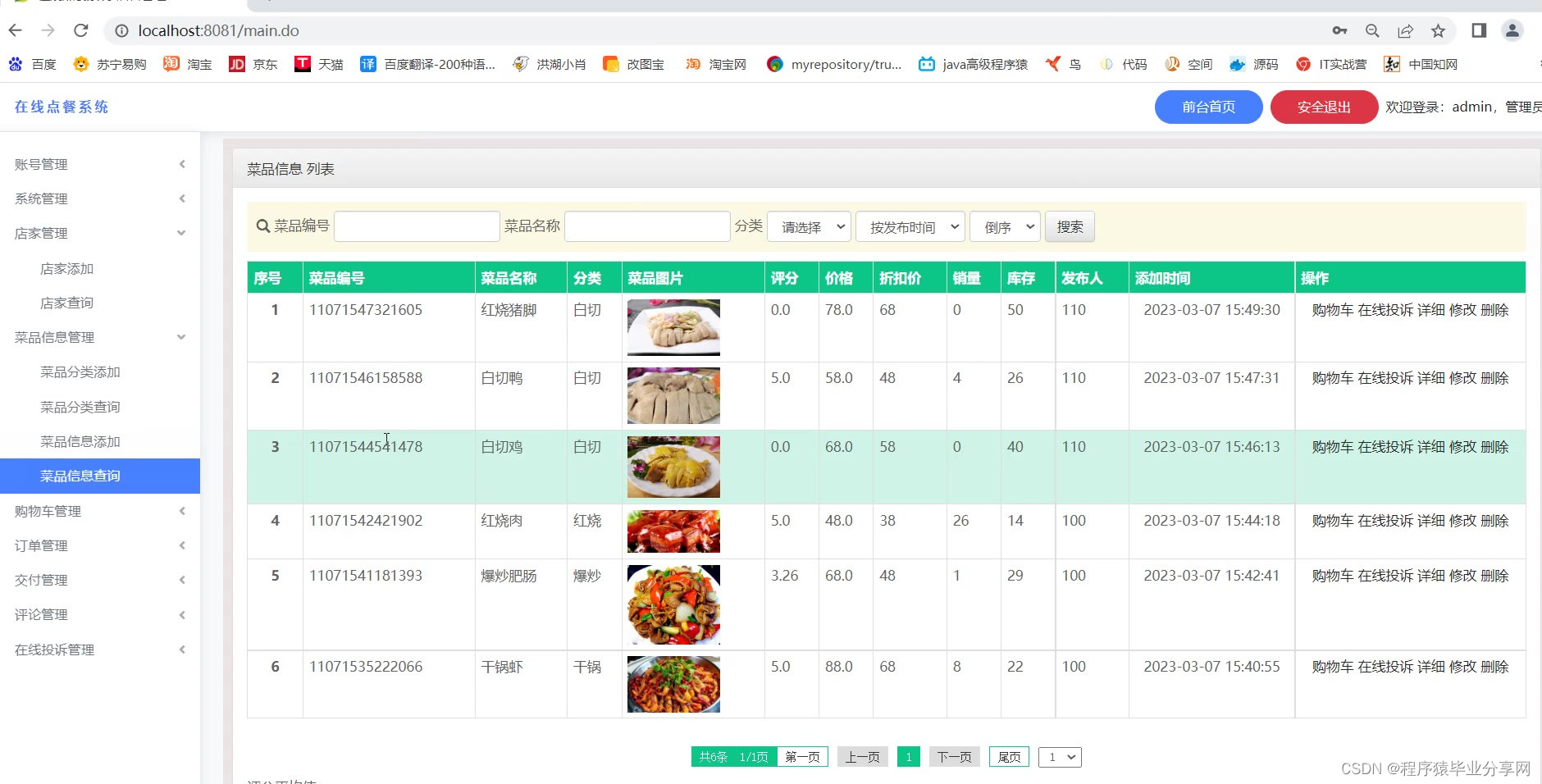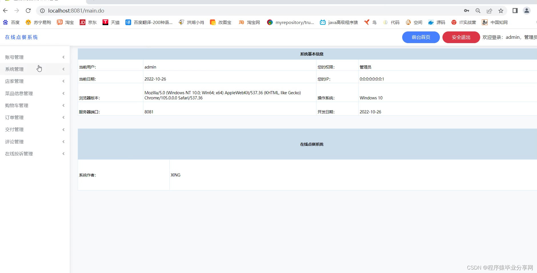 本点餐系统开发根据实际的市场需求调查,以人们具体订餐需要使用点餐服务进行作为开发系统出发点,从系统的需求分析到最终功能规划,从框架的搭建到各个模块功能的实现,本文基于springboot mybatis框架完整的实现了一个在线点餐系统,可以为消费者提供购买菜品、下单等多个功能。从测试结果来看,系统完整实现了所需功能,而且具有一定的 稳定性和可靠性,并能够为消费者提供良好的消费者体验。总之,本系统界面简洁、易操作、功能较多、安全性高、实用性强,是一个具有良好功能扩展性以及简单维护性的信息管理系统。该系统功能齐全,界面布局比较吸引人,功能比较全,操作简单,符合当今社会的发展趋势。