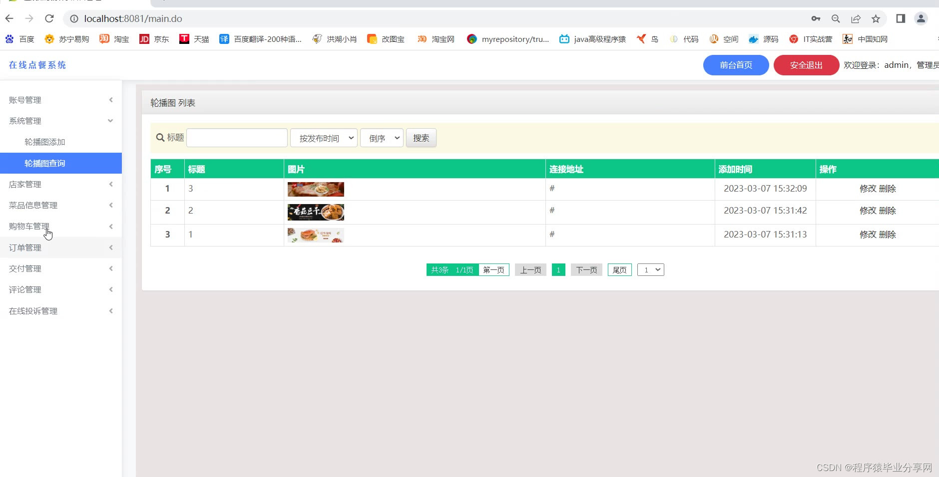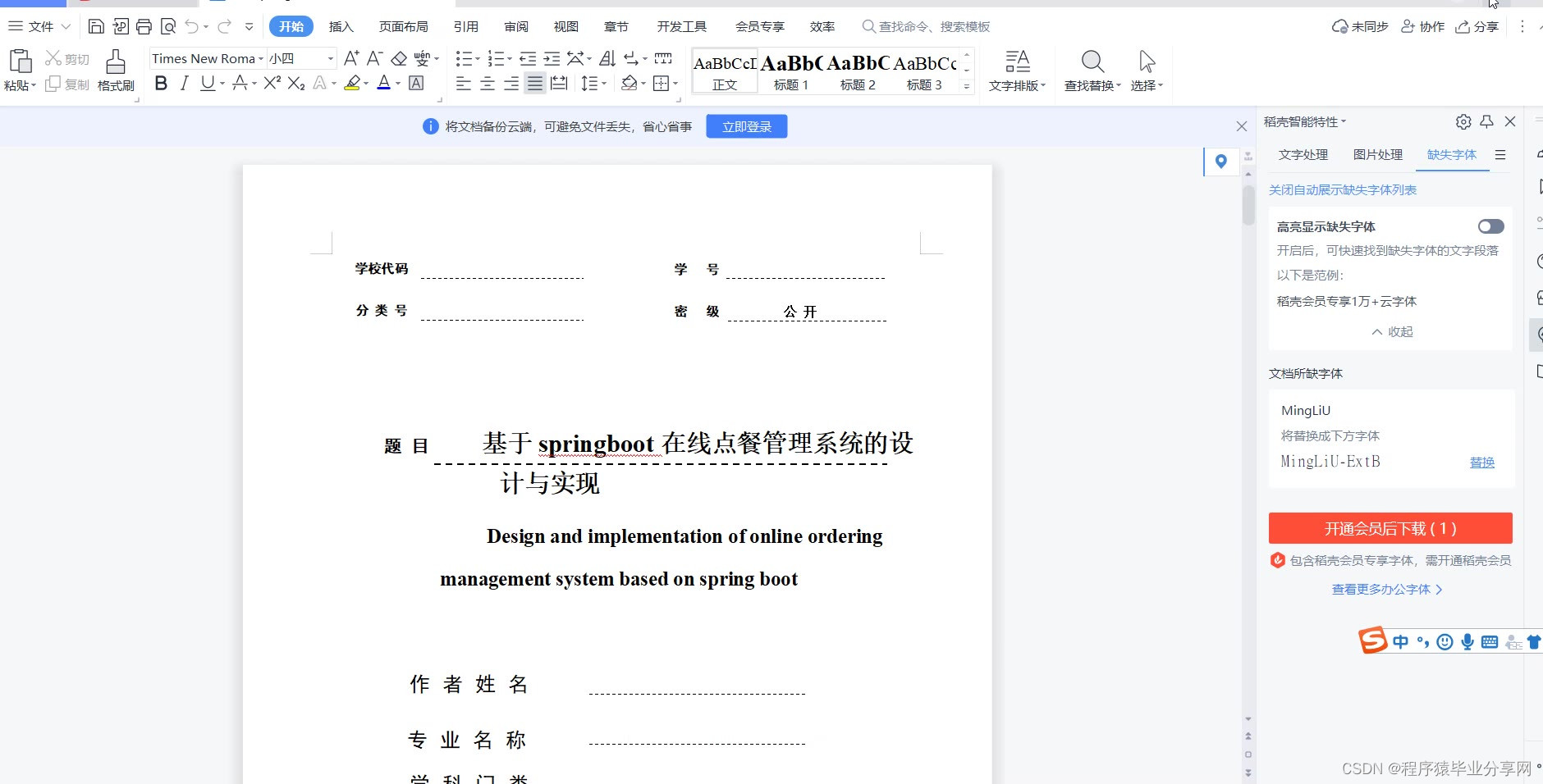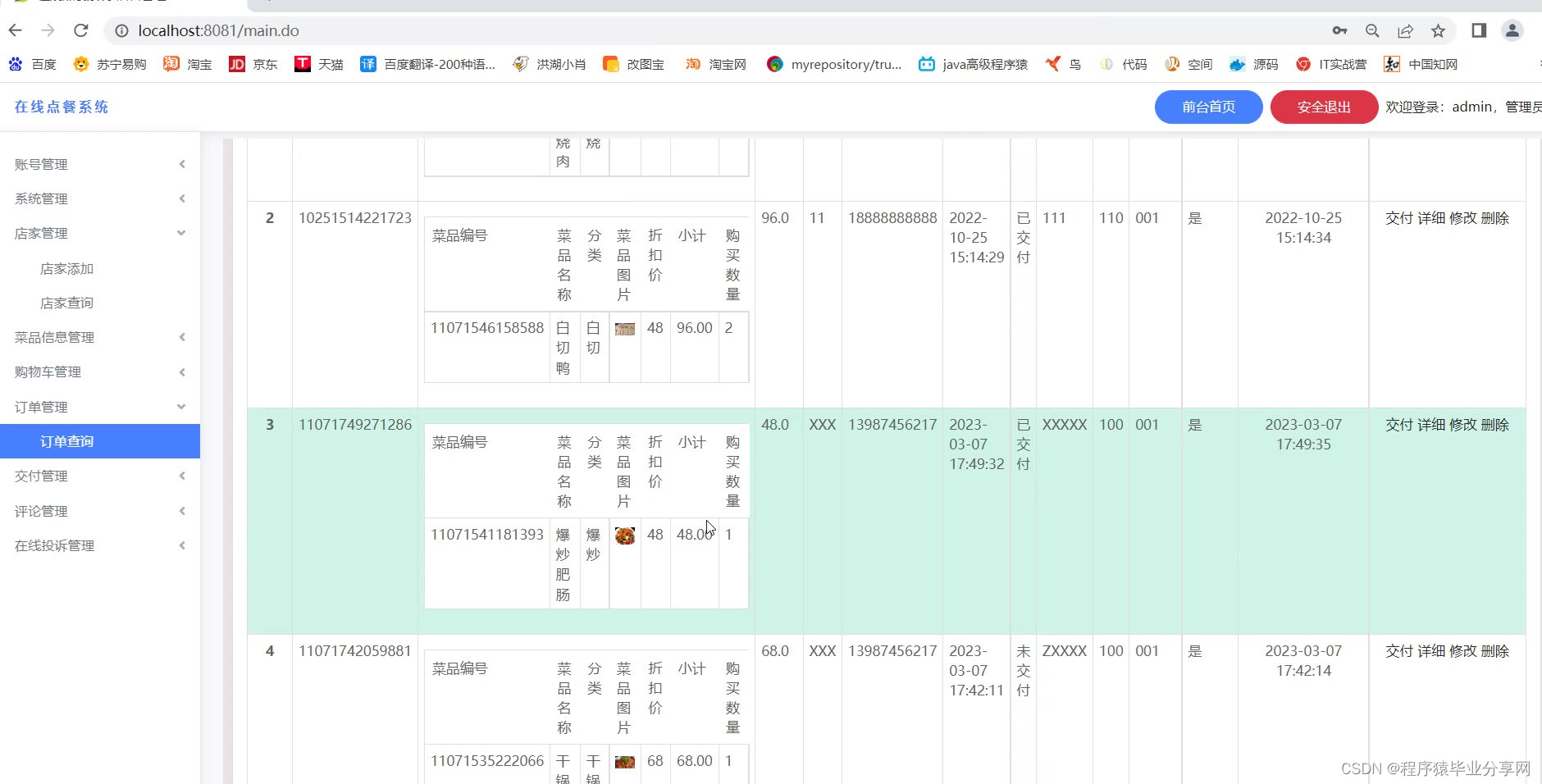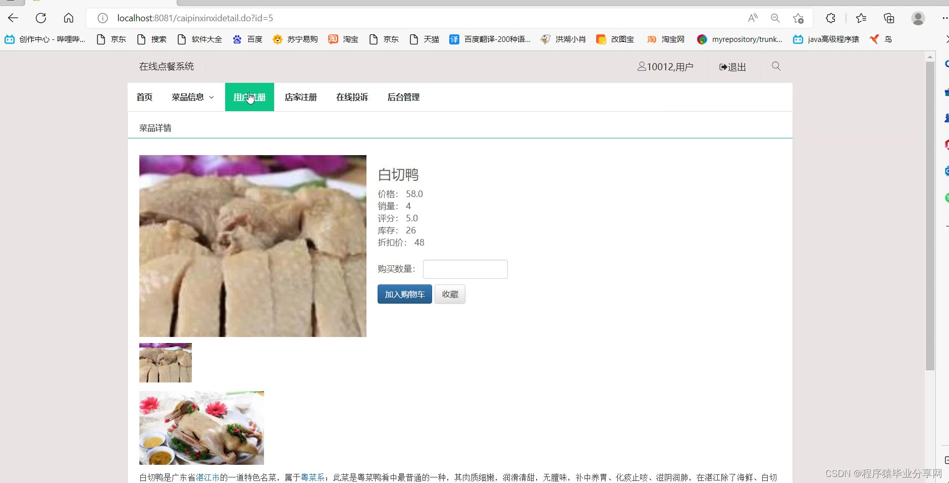 本点餐系统开发根据实际的市场需求调查,以人们具体订餐需要使用点餐服务进行作为开发系统出发点,从系统的需求分析到最终功能规划,从框架的搭建到各个模块功能的实现,本文基于springboot mybatis框架完整的实现了一个在线点餐系统,可以为消费者提供购买菜品、下单等多个功能。从测试结果来看,系统完整实现了所需功能,而且具有一定的 稳定性和可靠性,并能够为消费者提供良好的消费者体验。总之,本系统界面简洁、易操作、功能较多、安全性高、实用性强,是一个具有良好功能扩展性以及简单维护性的信息管理系统。该系统功能齐全,界面布局比较吸引人,功能比较全,操作简单,符合当今社会的发展趋势。