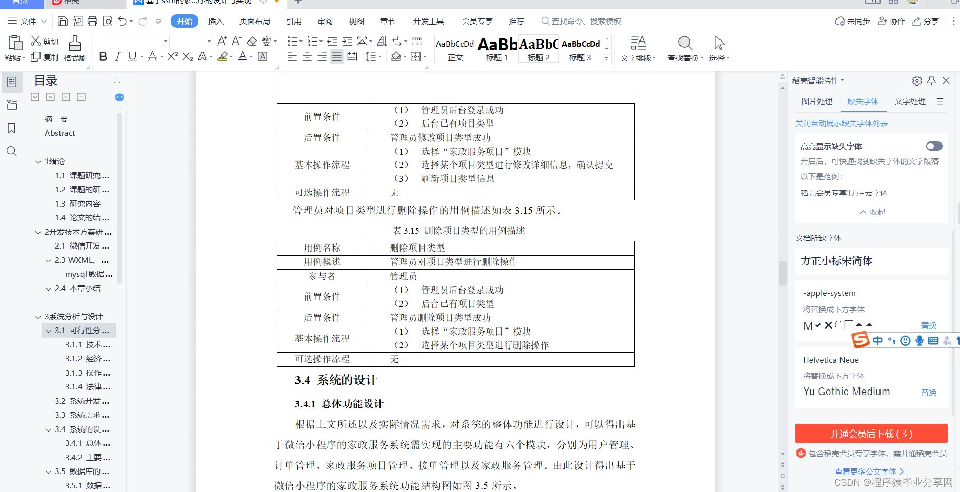 论文(设计)的主要任务与具体要求(有实验环节的要提出主要技术指标要求) 系统设计实现的功能: 认证管理:用户和家政服务工需要在小程序里认证自己的个人信息 用户管理:用户和家政服务工可以在小程序查看自己认证的信息,后端可以对用户和家政服务工的信息进行增删改查 家政服务管理:用户在用户端发布家政服务订单,然后家政服务工在家政服务工端接单,家政服务成功后家政服务工报价让用户支付,最后家政服务工填写家政服务具体情况。 订单管理:用户和家政服务工可以在小程序查看自己的订单进度,后端可以查看所有家政服务订单情况 预约管理:用户发布家政服务订单时需要预约时间 系统报价:系统跟据家政服务的种类来自动报价,最后家政服务完成后由家政服务工填写实际价格,用户在用户端支付 售后服务:如果又出现相同损坏情况,用户可以提交返工申请,写明情况或附上图片。然后家政服务工端订单状态从家政服务完成变为返工中,等家政服务工返工完成确认后再变为家政服务完成 | ||||||||||||||||||||||||||