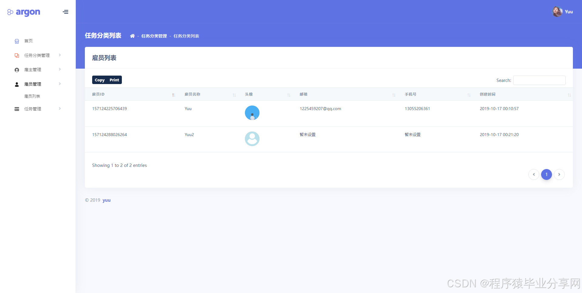 * 雇员控制器