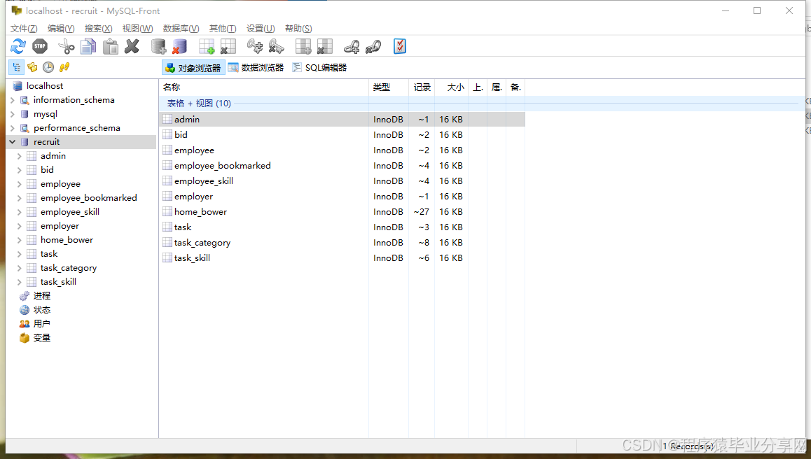 Keyword: task recruitment; B/S mode; springboot; mysql