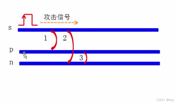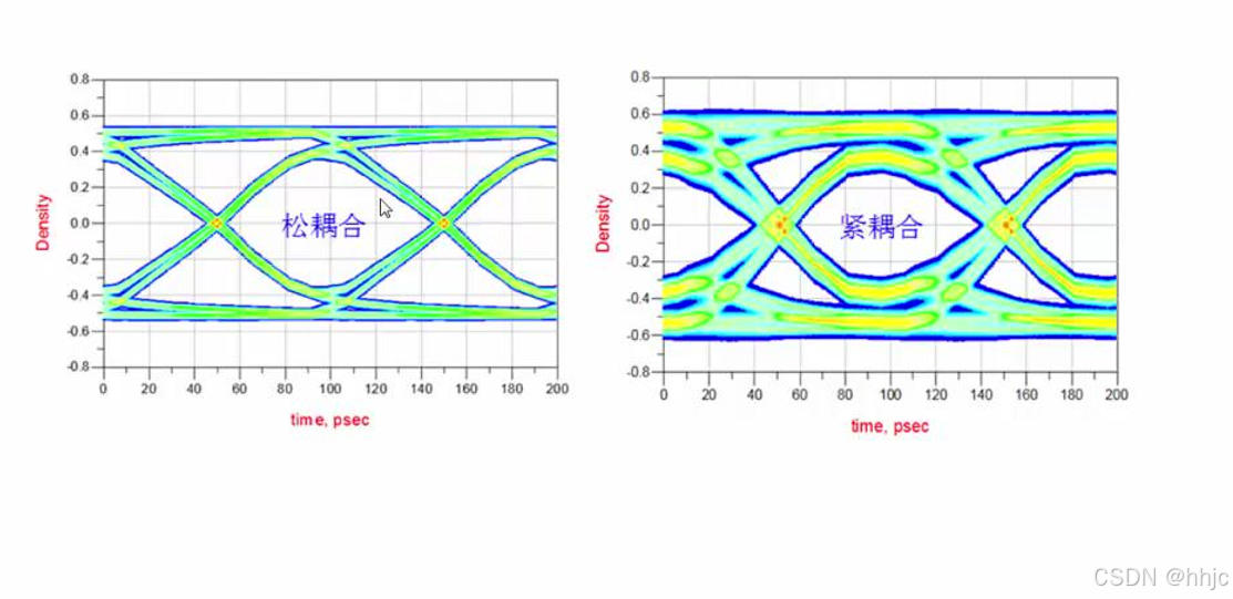 当差分对附近有共计信号时候就会产生以下三条线之间相互串扰,使差分对抗干扰能力降低,因此,需要拉开差分对和攻击信号线间距